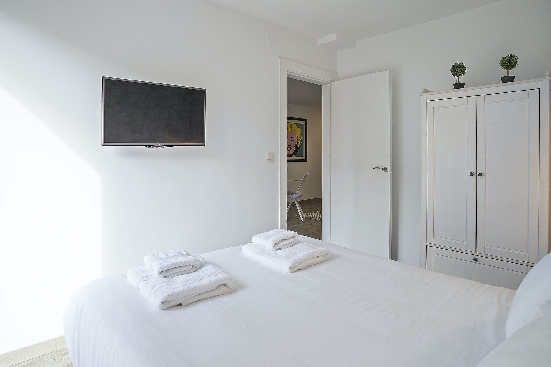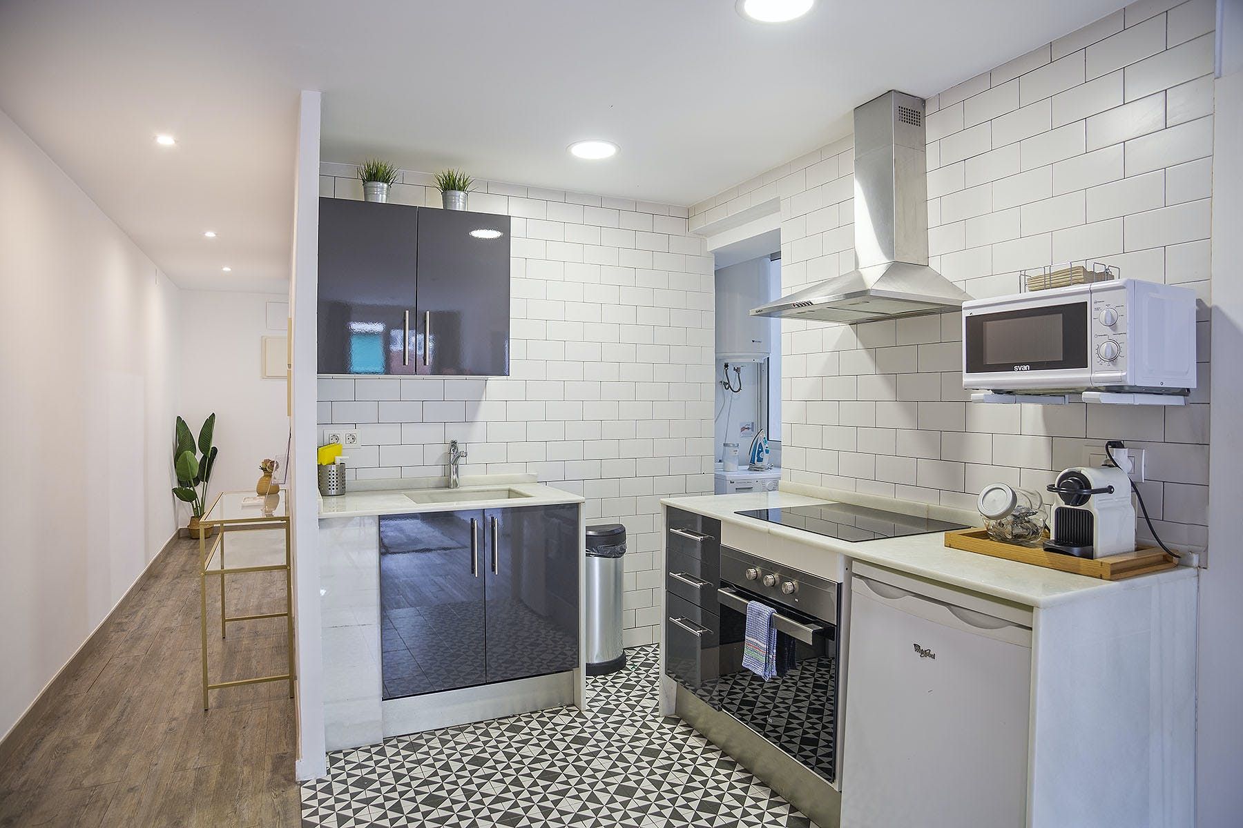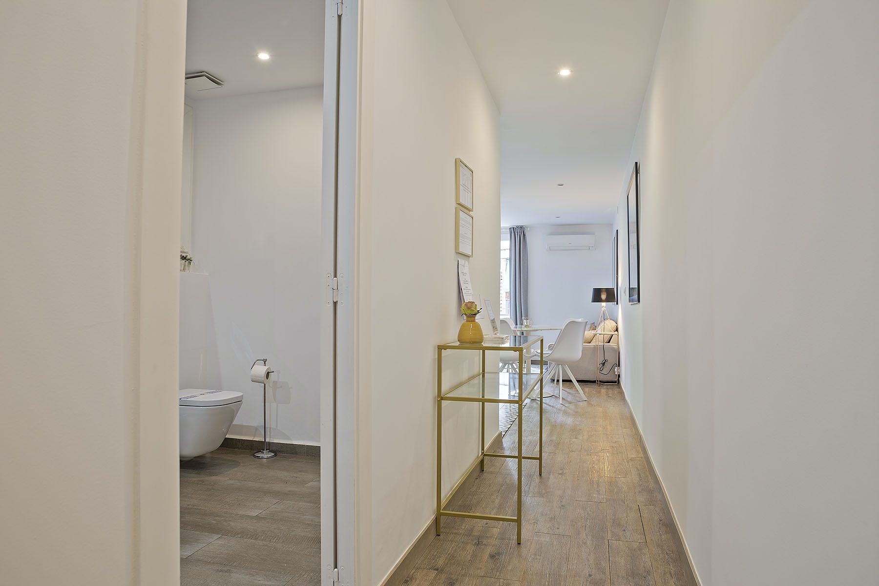 Tucked away in quiet Les Corts, this pristine apartment is just what the doctor ordered. You won’t find any showstopping amenities here, but this is more than just a neat base for exploring the city. With a crisp, open-plan living area and a private balcony overlooking the street, this is the perfect setting for a spot of relaxation, boasting everything you need for a romantic couple’s retreat or unforgettable solo city break. Whip up a home-cooked tapas feast in the kitchen, savour a glass of Rioja in the fresh air, or sit back and relax with a takeaway pizza from a nifty spot down the road. Whatever you need to unwind, this home has got you covered.