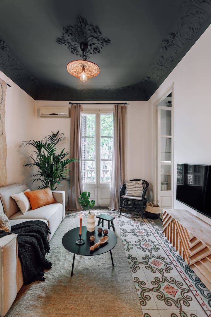 We love the gorgeous tones of green, the tall decorative ceilings, and the unique wooden furnishings, all working together to create a truly welcoming ambience. You’ll be able to enjoy cosy evenings in the beautifully decorated living area, where a sofa invites you to settle in for a night of movies and Spanish wine. There’s also a dining table for savouring those delicious suppers you’ll be able to put together with ease in the well-equipped kitchen.