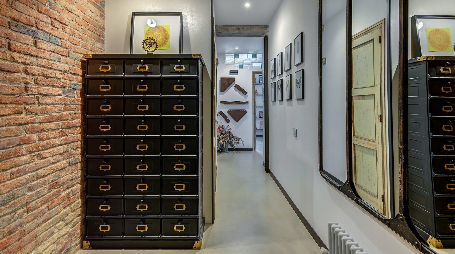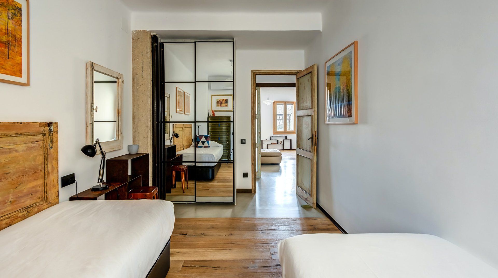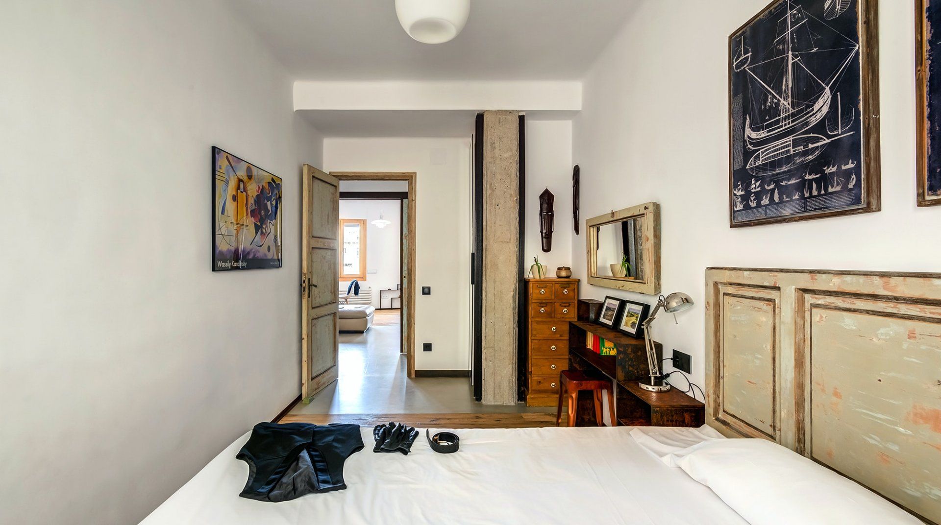 Even if we didn't know this home's location, we'd be inclined to say that 'it's so El Born'. Unique art and furniture capture the neighbourhood's character, so you won't notice much difference between the chic interior and the many trendy tapas bars dotted around the nearby streets. La Baule Gallery has some lovely design assets, such as the exposed brick walls, stone columns enhanced with iron beams, and other industrial details that highlight the high-quality furnishings. There aren't many entertainment options – but in this neighbourhood, you won't be bored.
