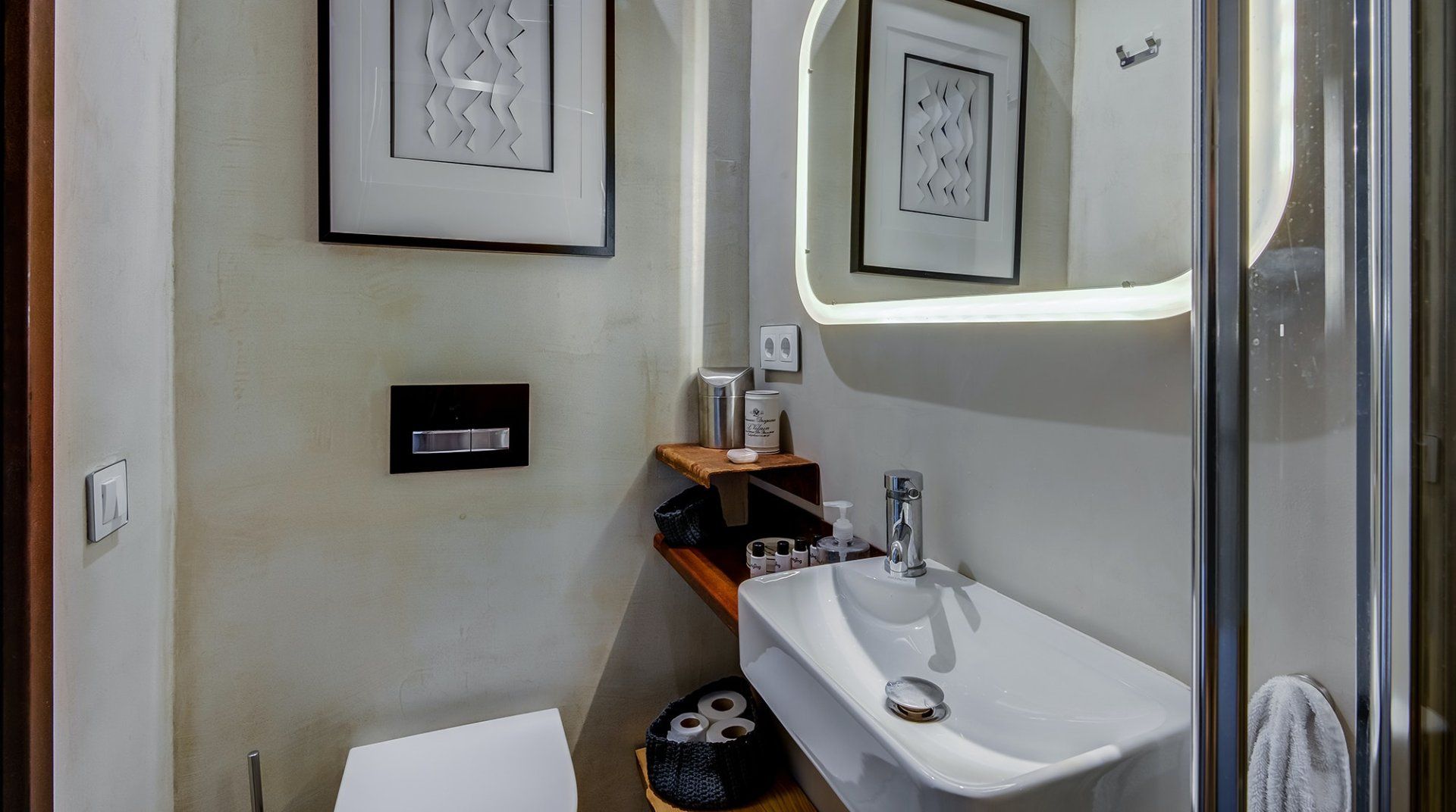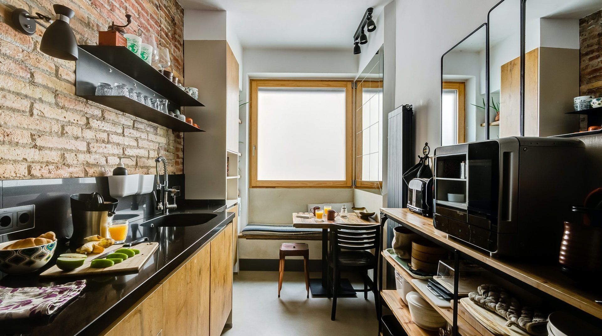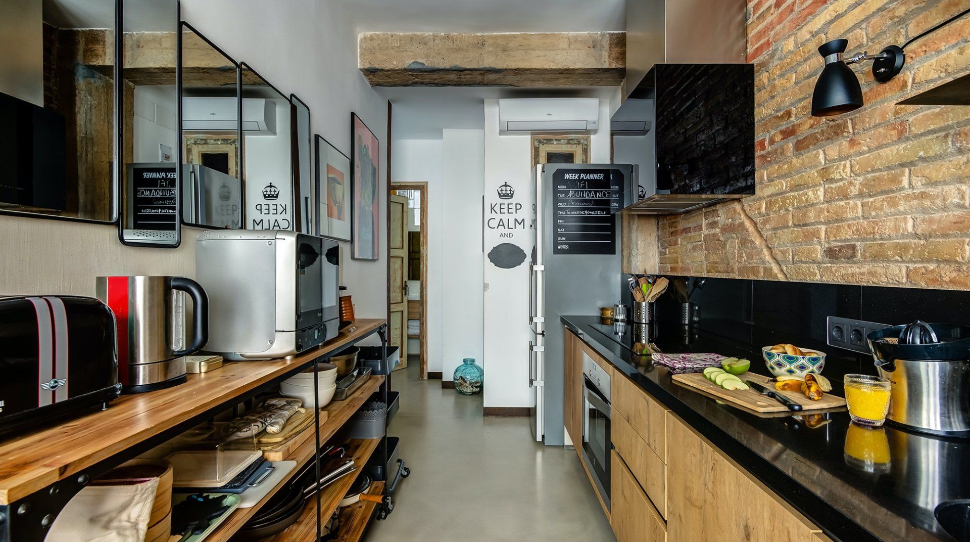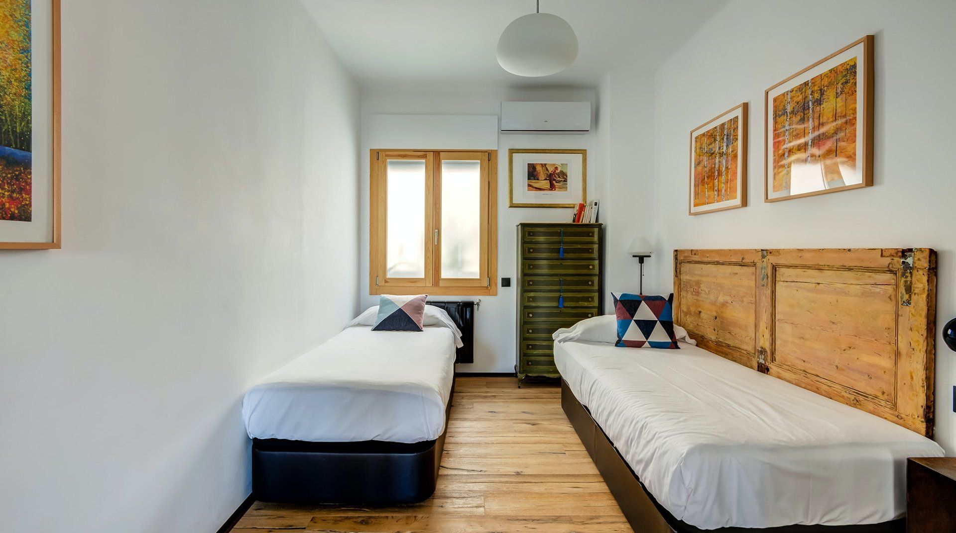 Even if we didn't know this home's location, we'd be inclined to say that 'it's so El Born'. Unique art and furniture capture the neighbourhood's character, so you won't notice much difference between the chic interior and the many trendy tapas bars dotted around the nearby streets. La Baule Gallery has some lovely design assets, such as the exposed brick walls, stone columns enhanced with iron beams, and other industrial details that highlight the high-quality furnishings. There aren't many entertainment options – but in this neighbourhood, you won't be bored.
