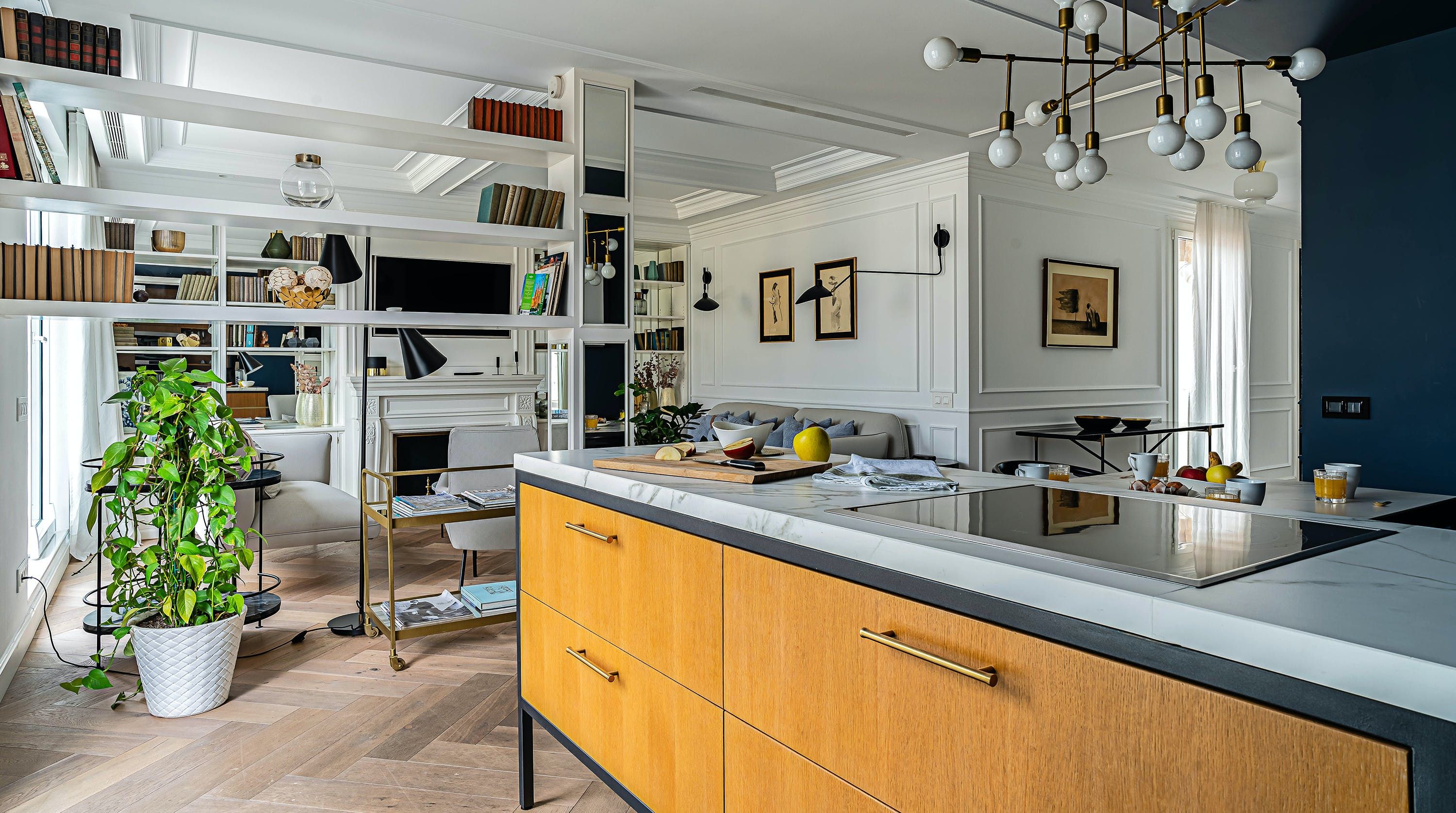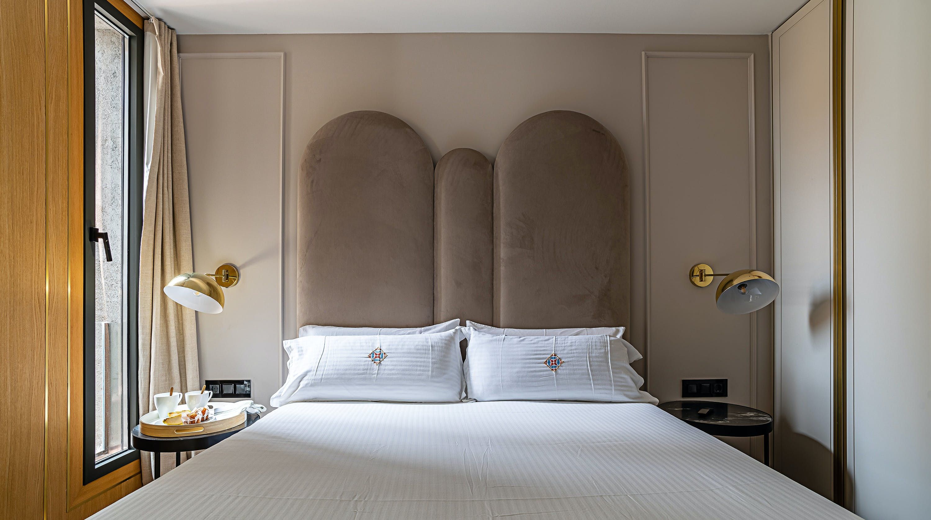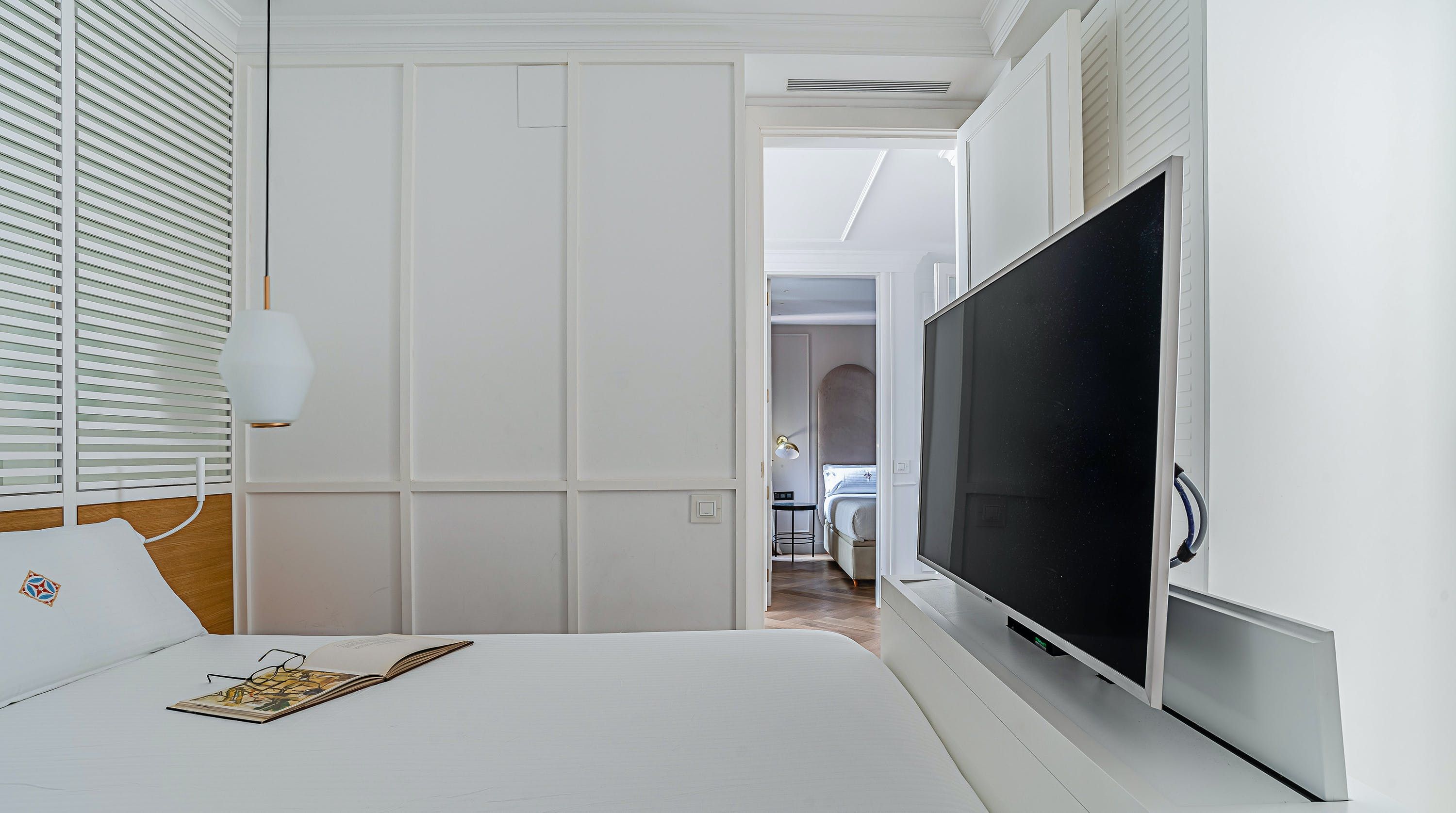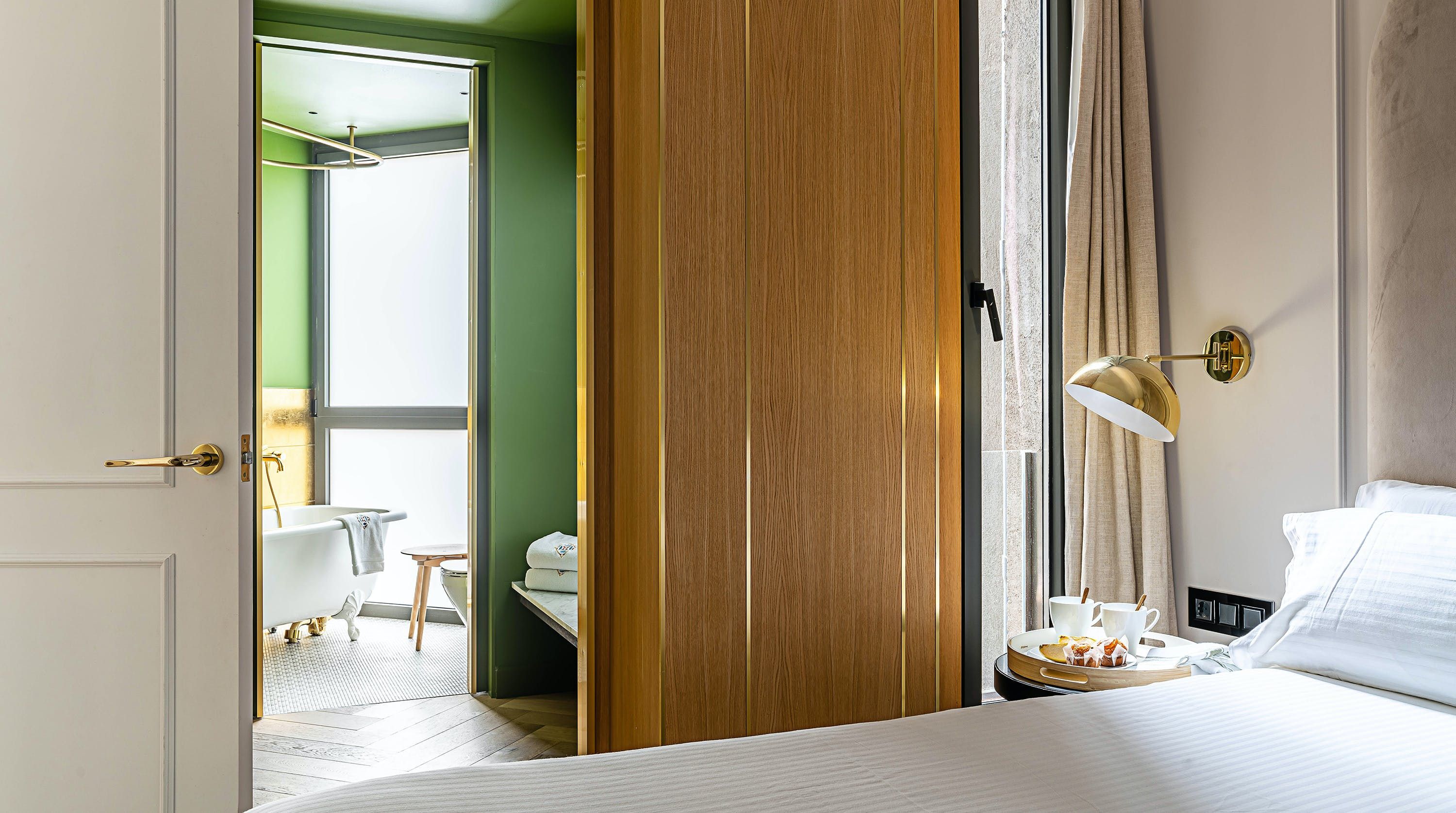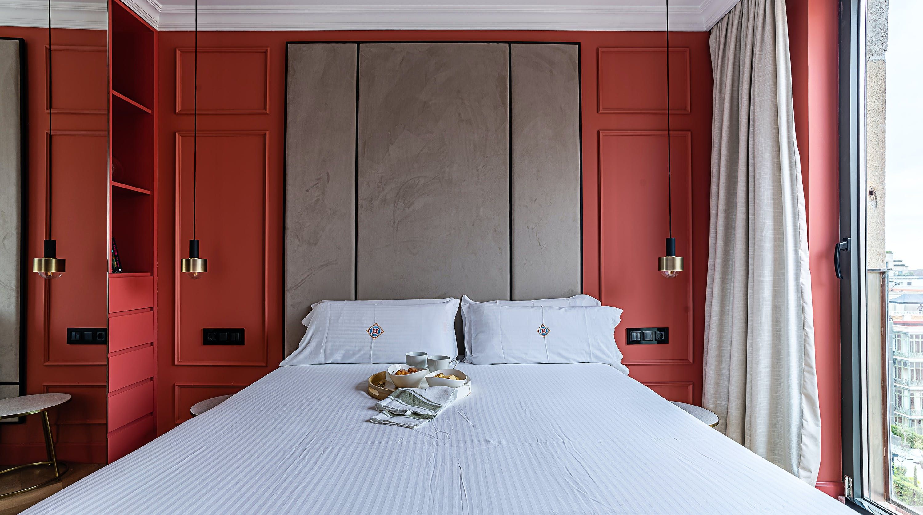 With its trendy colour palette and sleek modern design, this Eixample apartment offers first-class urban living. The marine blue accent wall makes the open-plan living space feel connected and cosy, while boiserie and marble-effect details add a touch of elegance. You’ll begin your mornings at the dining table with a traditional Catalan breakfast before nipping onto the balcony to bask in the glorious sunshine.