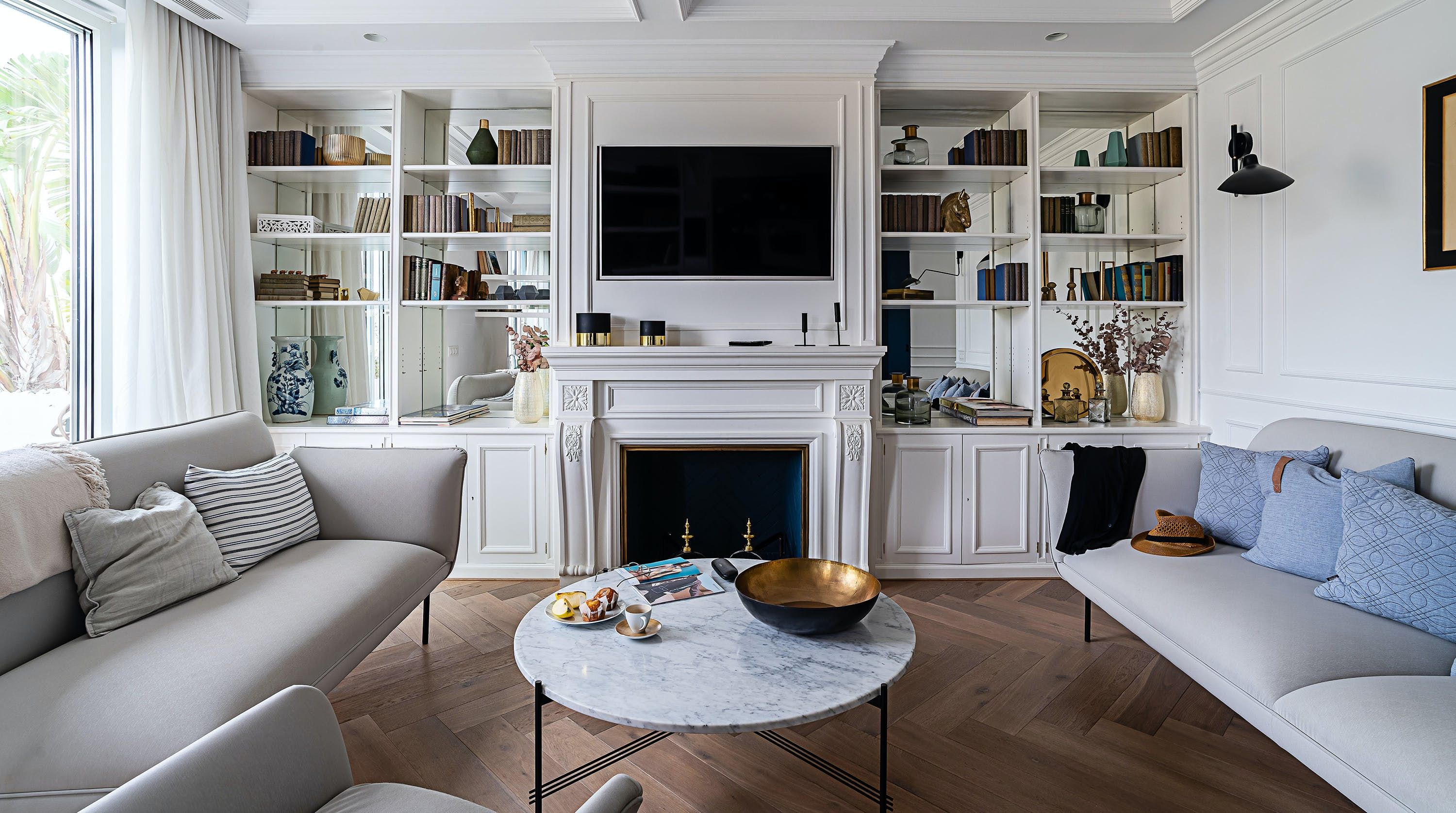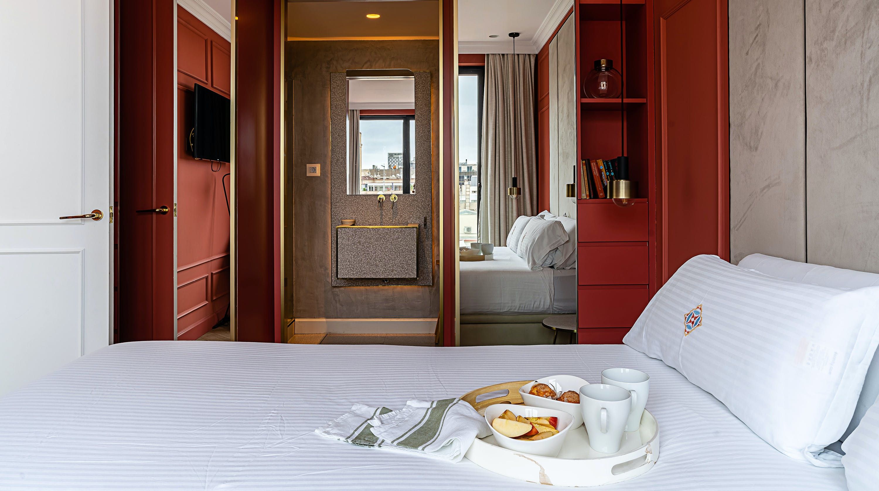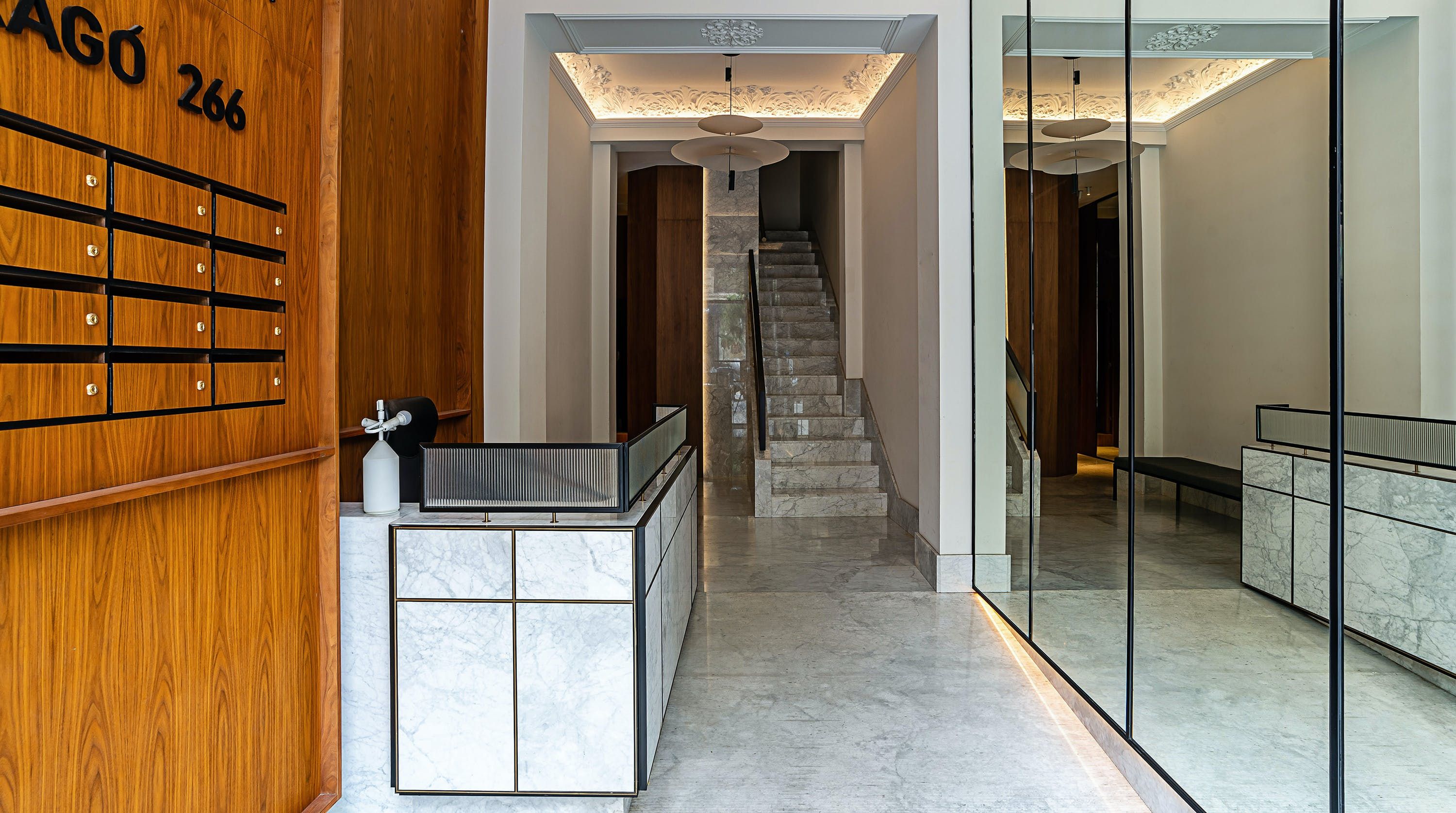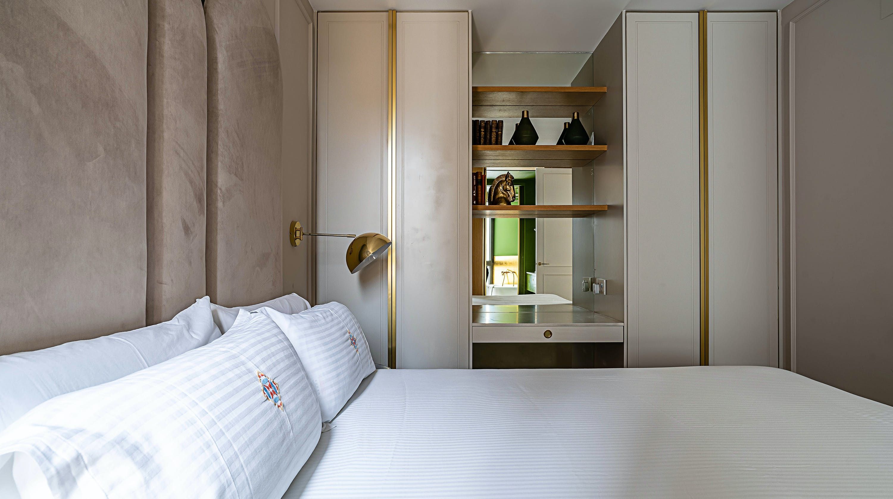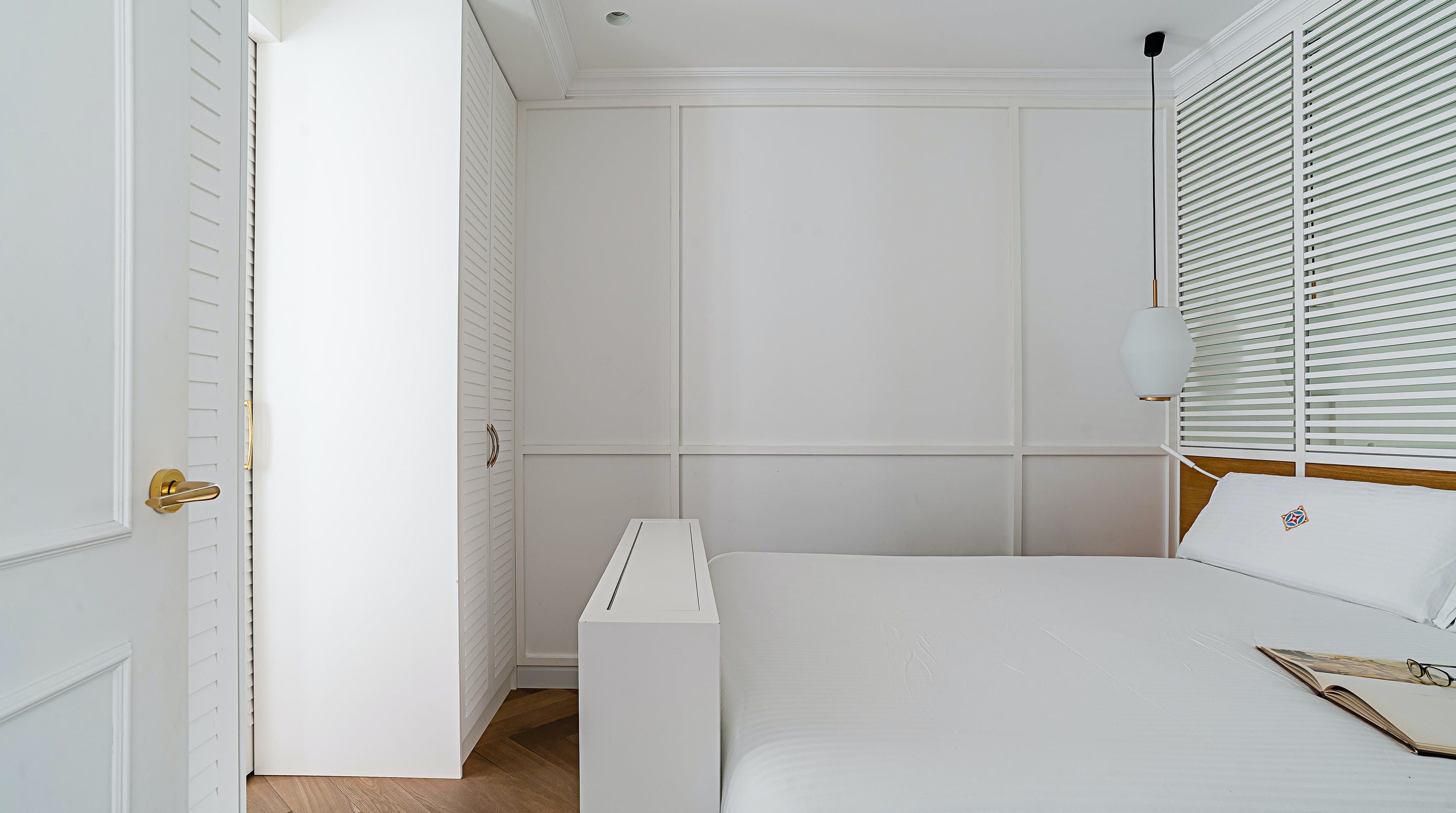 With its trendy colour palette and sleek modern design, this Eixample apartment offers first-class urban living. The marine blue accent wall makes the open-plan living space feel connected and cosy, while boiserie and marble-effect details add a touch of elegance. You’ll begin your mornings at the dining table with a traditional Catalan breakfast before nipping onto the balcony to bask in the glorious sunshine.