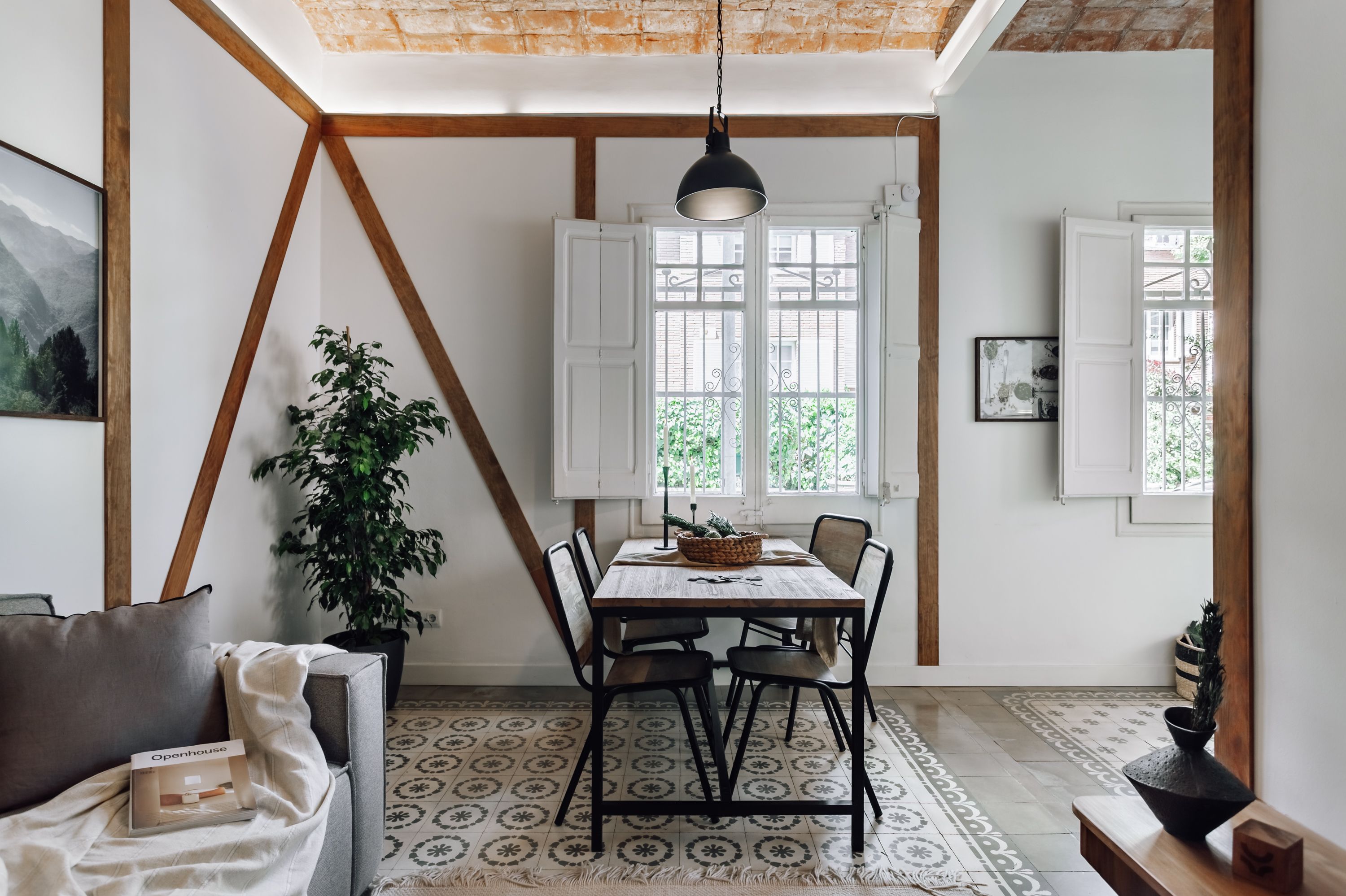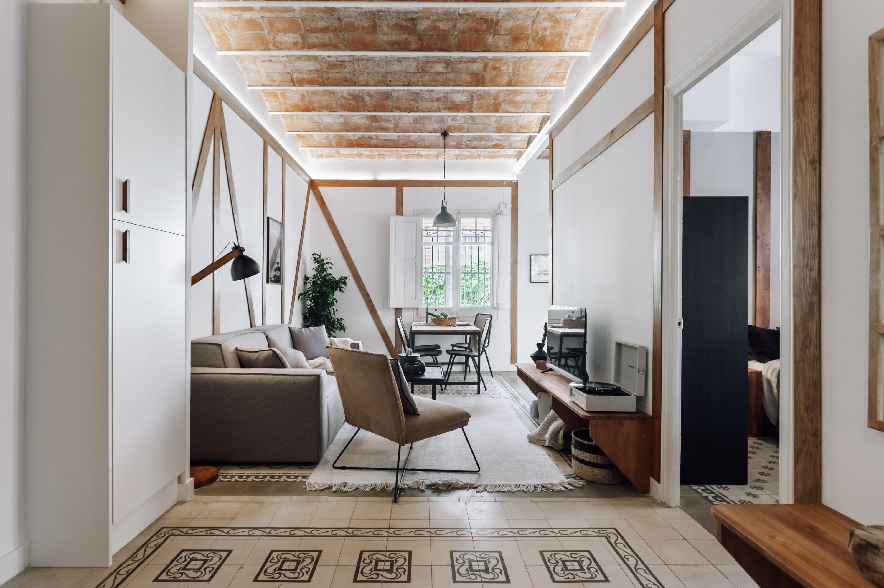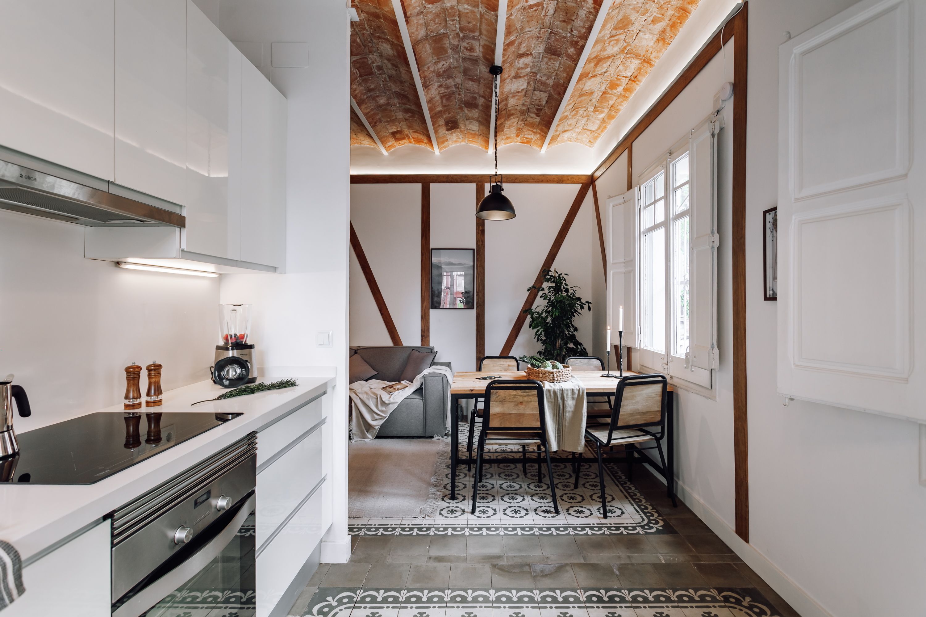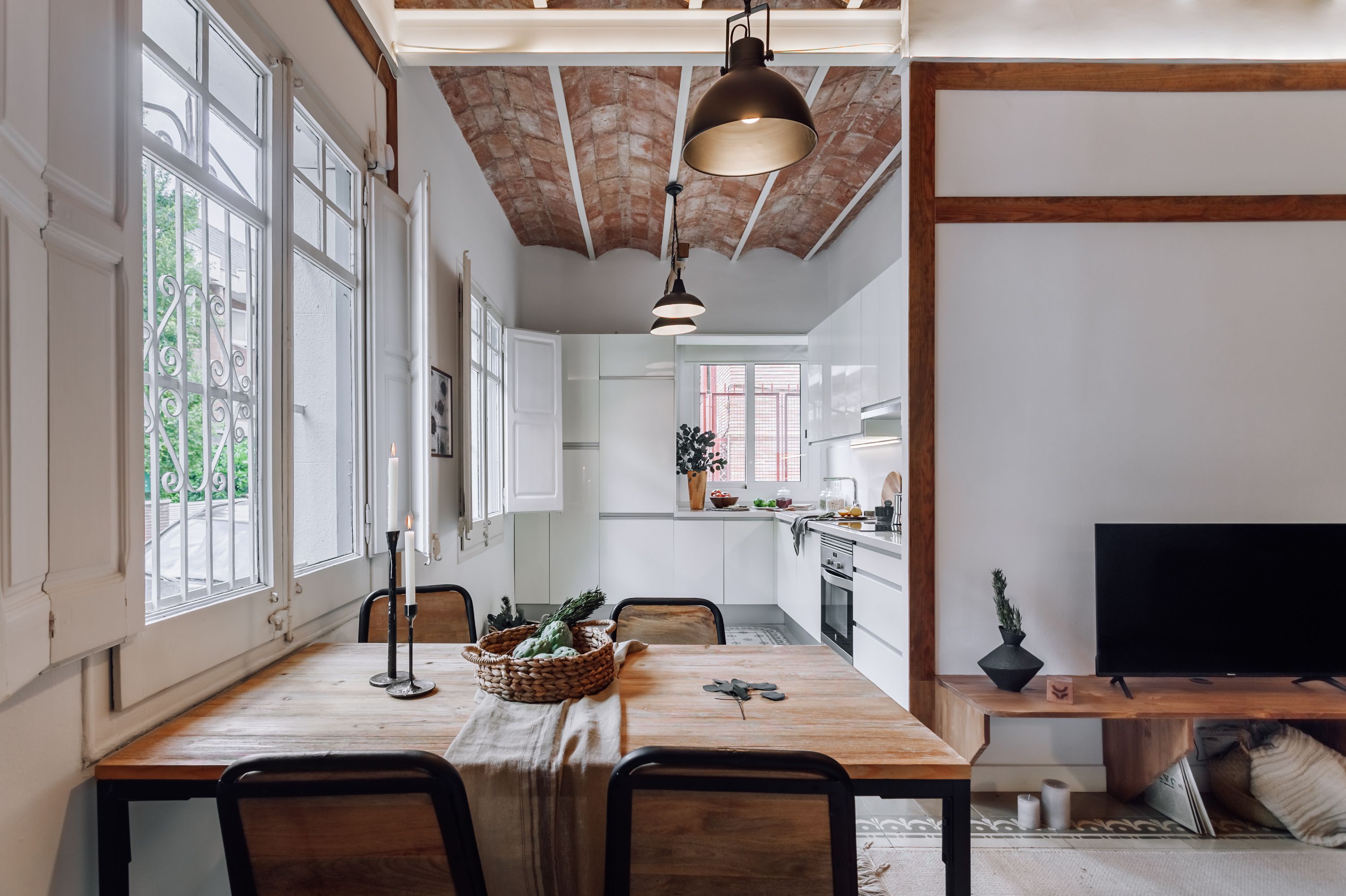 This home in Sant Gervasi is a design lovers' haven, with stylish furniture and traditional features. The open-plan living room is just the spot to unwind with a glass of sangria, while the kitchen is all set up for cooking feasts at home. There’s a desk in the third bedroom if work is on the cards, though we hope you’ll make some time for sightseeing, too. Location-wise, this neighbourhood is a little more residential, with both mountain nature walks and cultural landmarks within easy reach. There are tapas bars on your doorstep, though if you feel like jetting to the inner city, Les Tres Torres station is a few steps away.