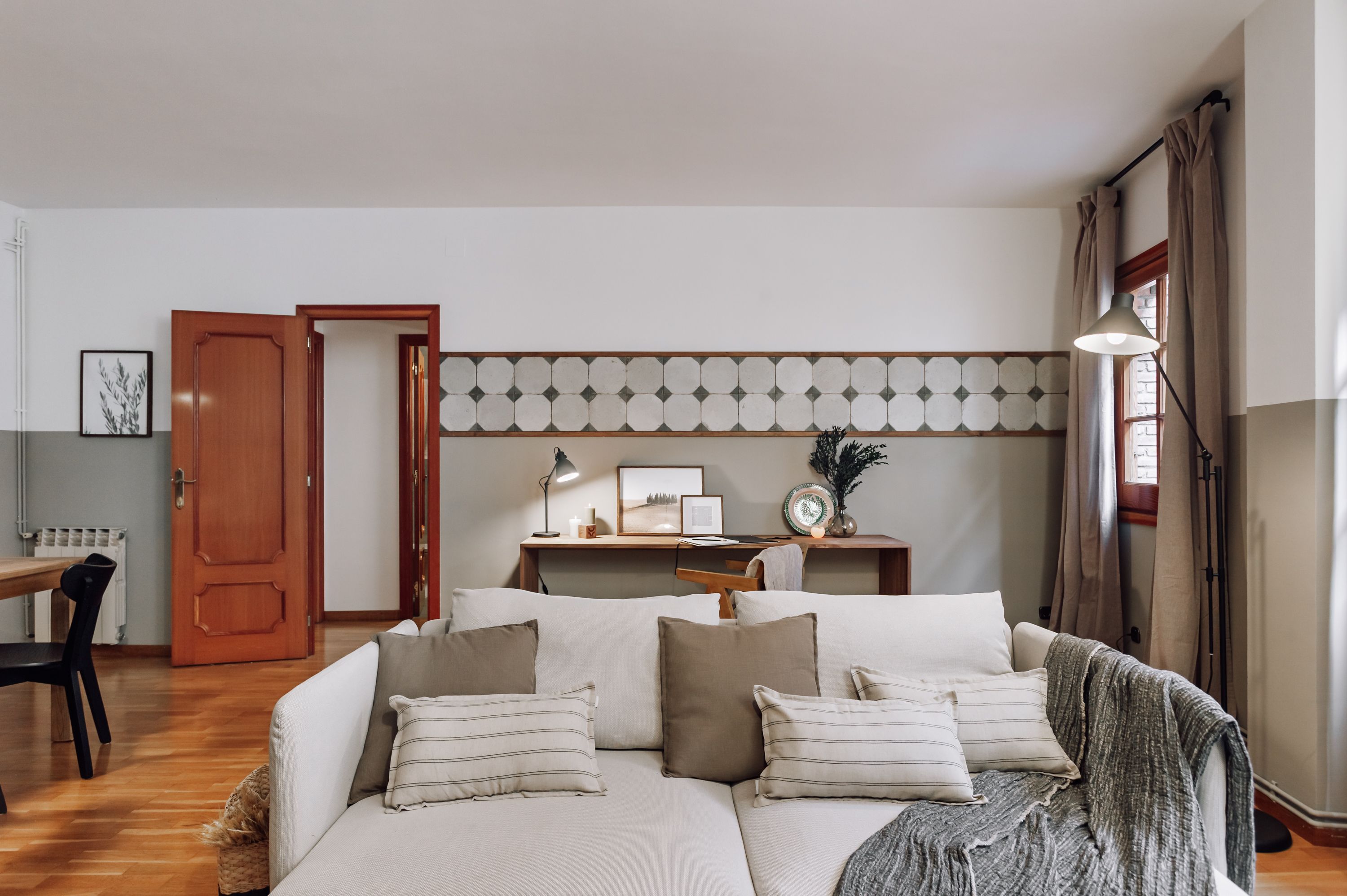 Found in the heart of Gràcia, this apartment allows guests to really immerse themselves in Spanish culture. Find Catalan cafes and tapas bars in close proximity. There's also iconic landmarks like the architectural wonder of La Pedrera not to far away. The open living and dining space is cosy, with the addition of a small laptop-friendly workspace for those catching up on an email or two. The kitchen, though a bit more of a squeeze, is well-equipped, and we like the addition of the breakfast bar for midnight snacking.