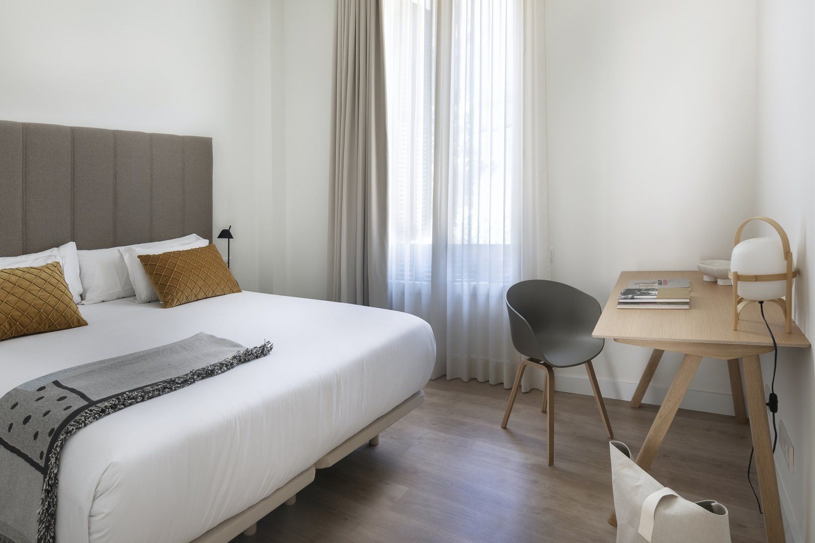 In a region that’s as colourful, exciting, and vibrant as Eixmaple, you might be looking for a place to stay that offers something a little more zen. Just an eight-minute stroll from the scaly facade of Gaudí’s Casa Batlló, the front of this apartment building is a soothing pale yellow. And while the architecture is quite traditional, the interiors are quite the opposite.