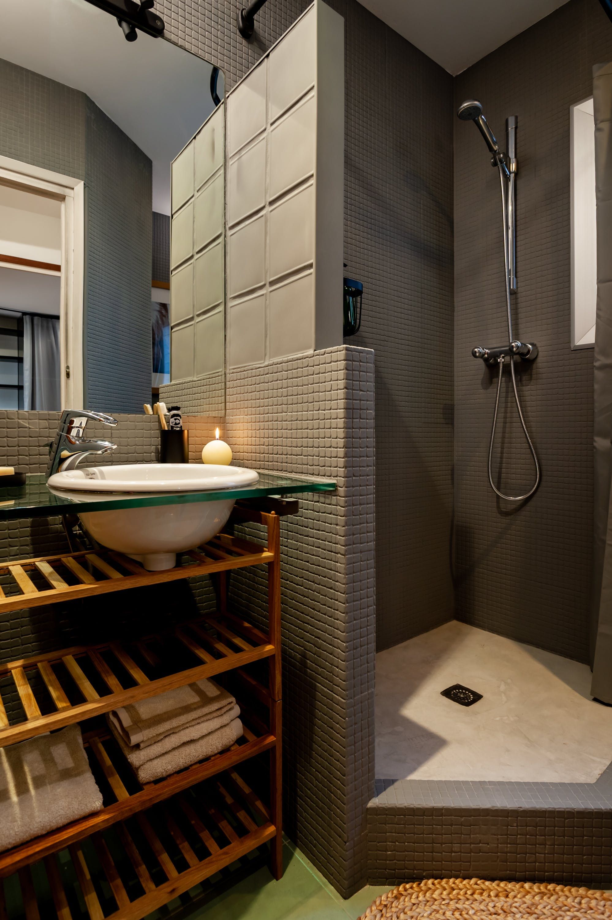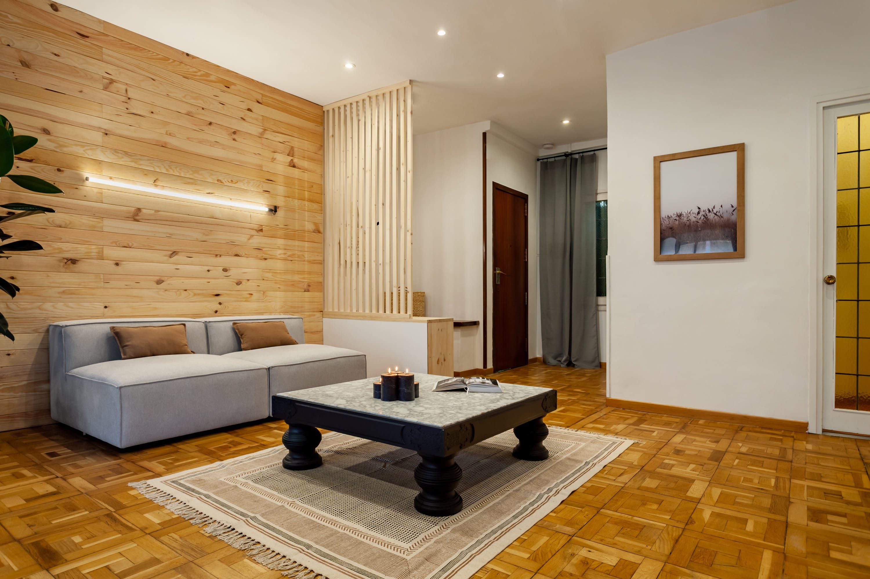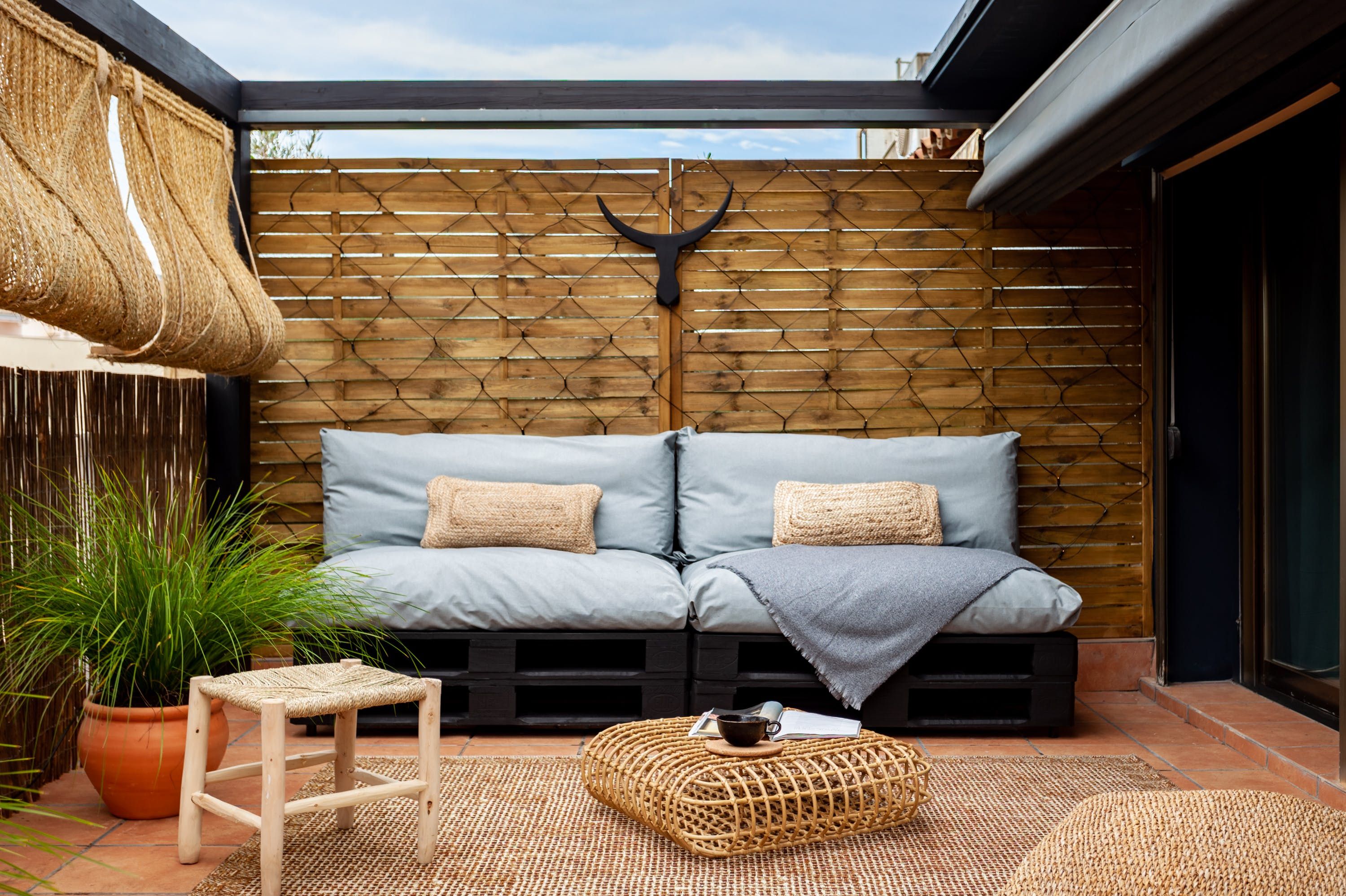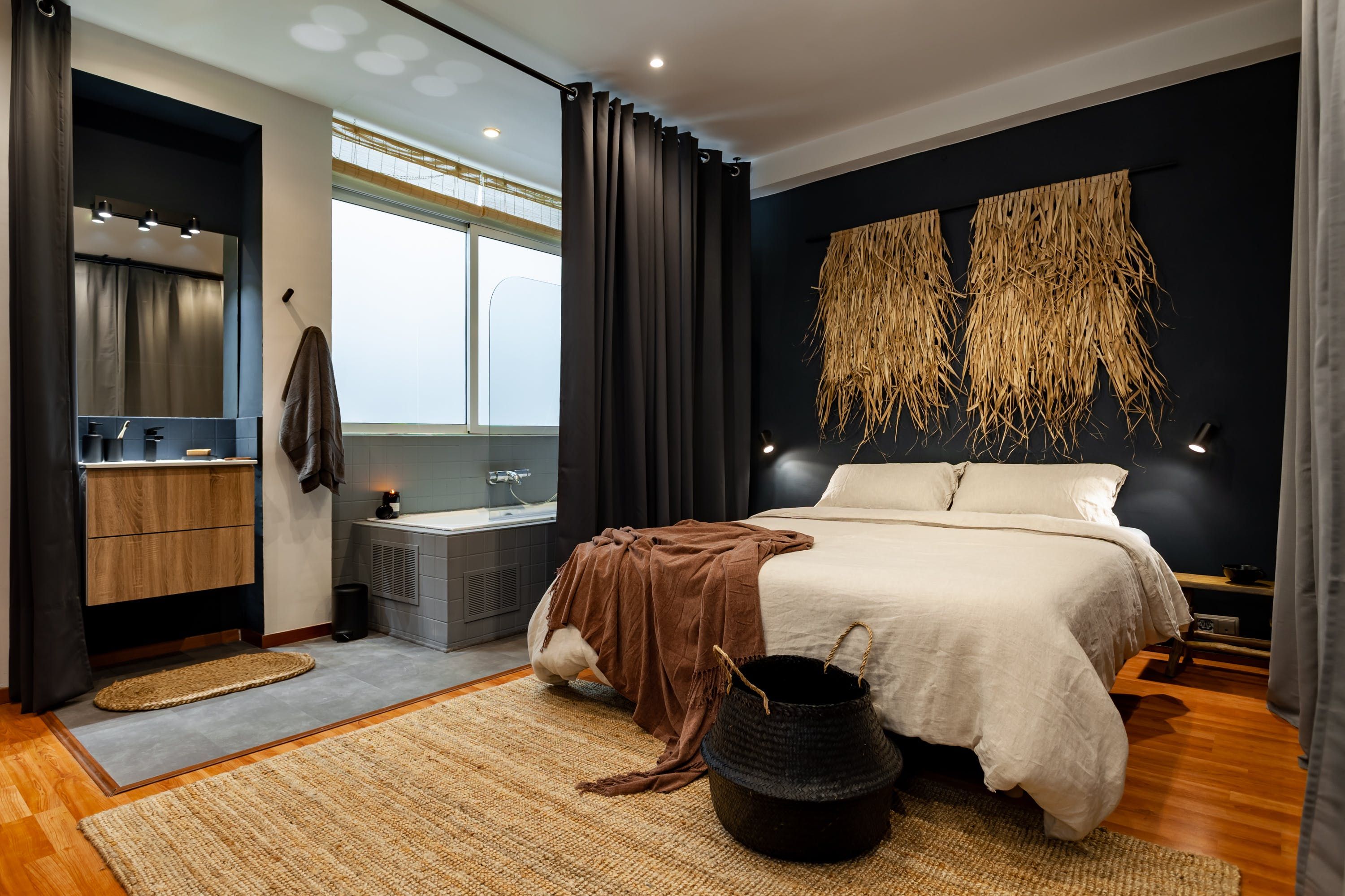 Grand, beautiful and stylishly bohemian, this apartment in Barcelona’s Eixample Esquerra neighbourhood provides a luxuriously relaxing stay within easy reach of the city’s most iconic sights. Inside, the decor has been playfully curated to juxtapose light and dark, with pale wood accents contrasting against deep-hued feature walls to create an intimate space that instantly feels soothing. We love the eclectic furnishings – from the low-slung sofa with its statement neon light to the mixture of chairs around the large dining table – and the original ornamental fireplace that adds a touch of grandeur to the laid-back, bohemian furnishings. The kitchen is any home cook’s dream with its neutral cabinetry, compact island and floor-to-ceiling blackboard, while the two bedrooms provide the perfect canvas for a dreamy night’s sleep with their earth-toned palettes and grasslands-inspired ornaments. Our favourite feature of the home, however, is the large private terrace equipped with a sofa, a table and chairs. Whether you’re kicking back with your morning coffee, gathering here over a jug of sangria or sitting down to a meal beneath the glow of the fairy lights, you’ll love having this outdoor space to catch some Spanish rays and indulge in the balmy air. Outside of your home, you’re a twenty-minute walk from Casa Milà, a thirty-five-minute stroll from La Sagrada Família, while all around you, Eixample Esquerra's art galleries, swish cafes, and luxury boutiques wait to be explored.