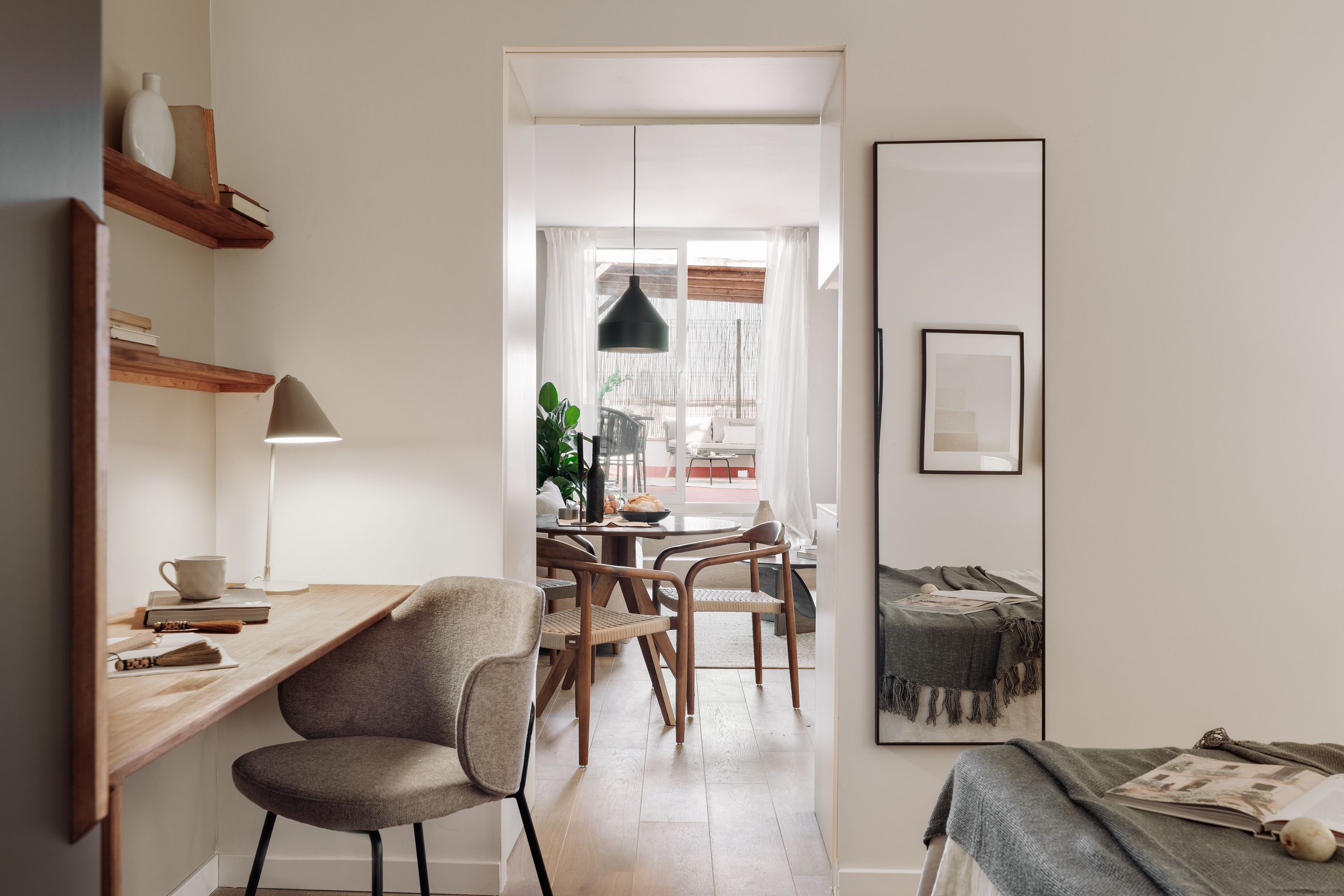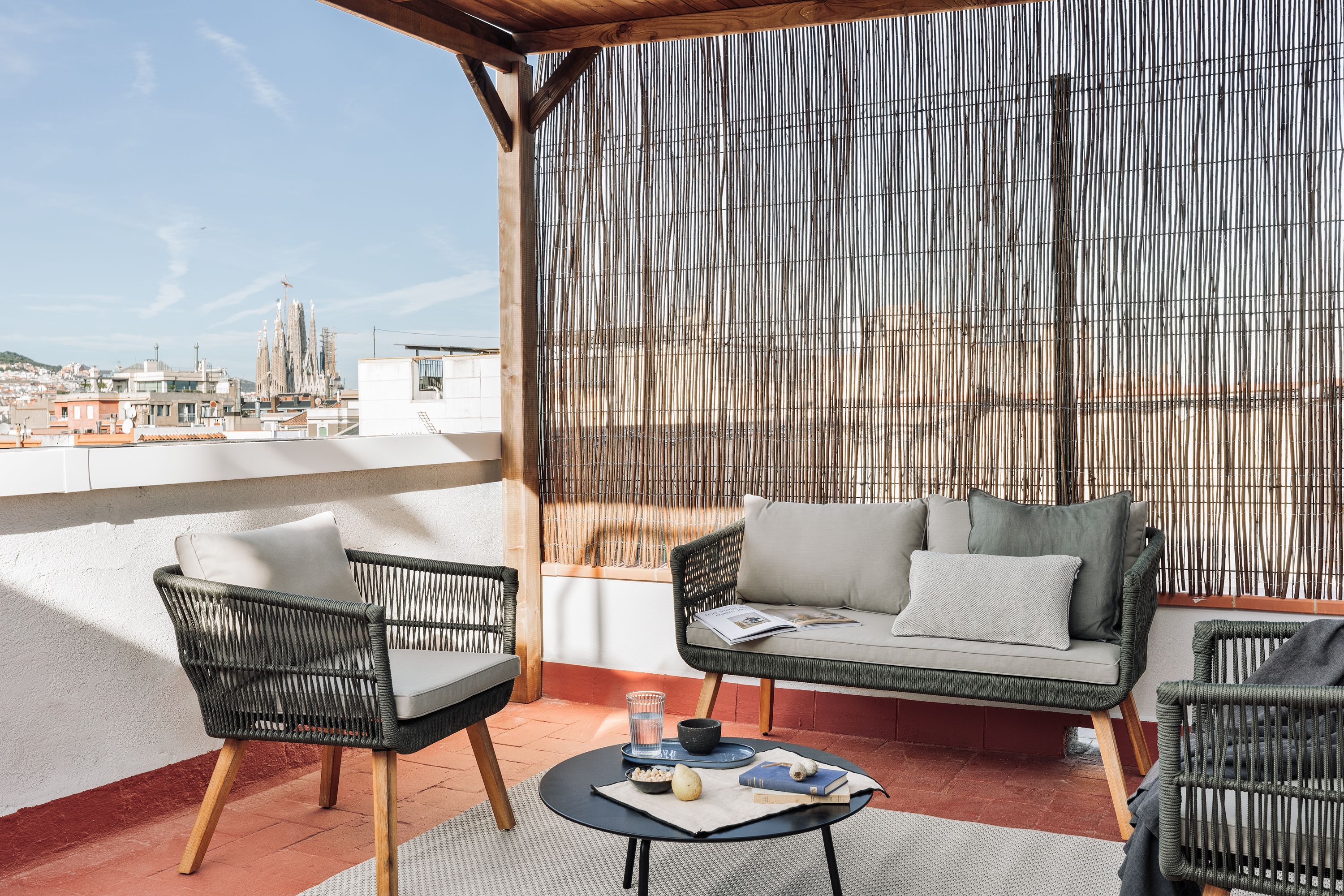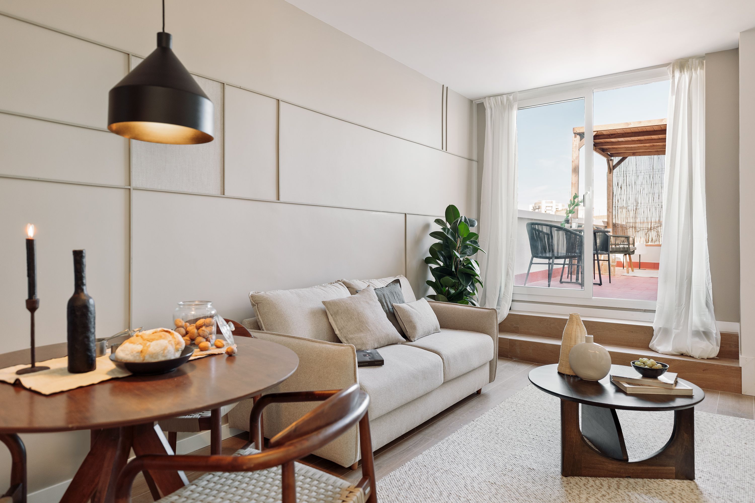 This apartment's sun-kissed terrace is just the thing if you're looking for a slice of outdoor space in Barcelona. A sweet spot to enjoy alfresco coffee and cocktails, it's made even better by a glimpse of Sagrada Família. Indoors, there's a cosy living area with a sofa bed, a comfortable bedroom, and a small but well-appointed kitchen. If working is on the agenda, you'll find a desk in the bedroom. Or, if you're in town for a bit of fun, there's plenty to see and do nearby – from visiting Ciutadella Park and Casa Batlló to trying the array of eateries in this lively neighbourhood.