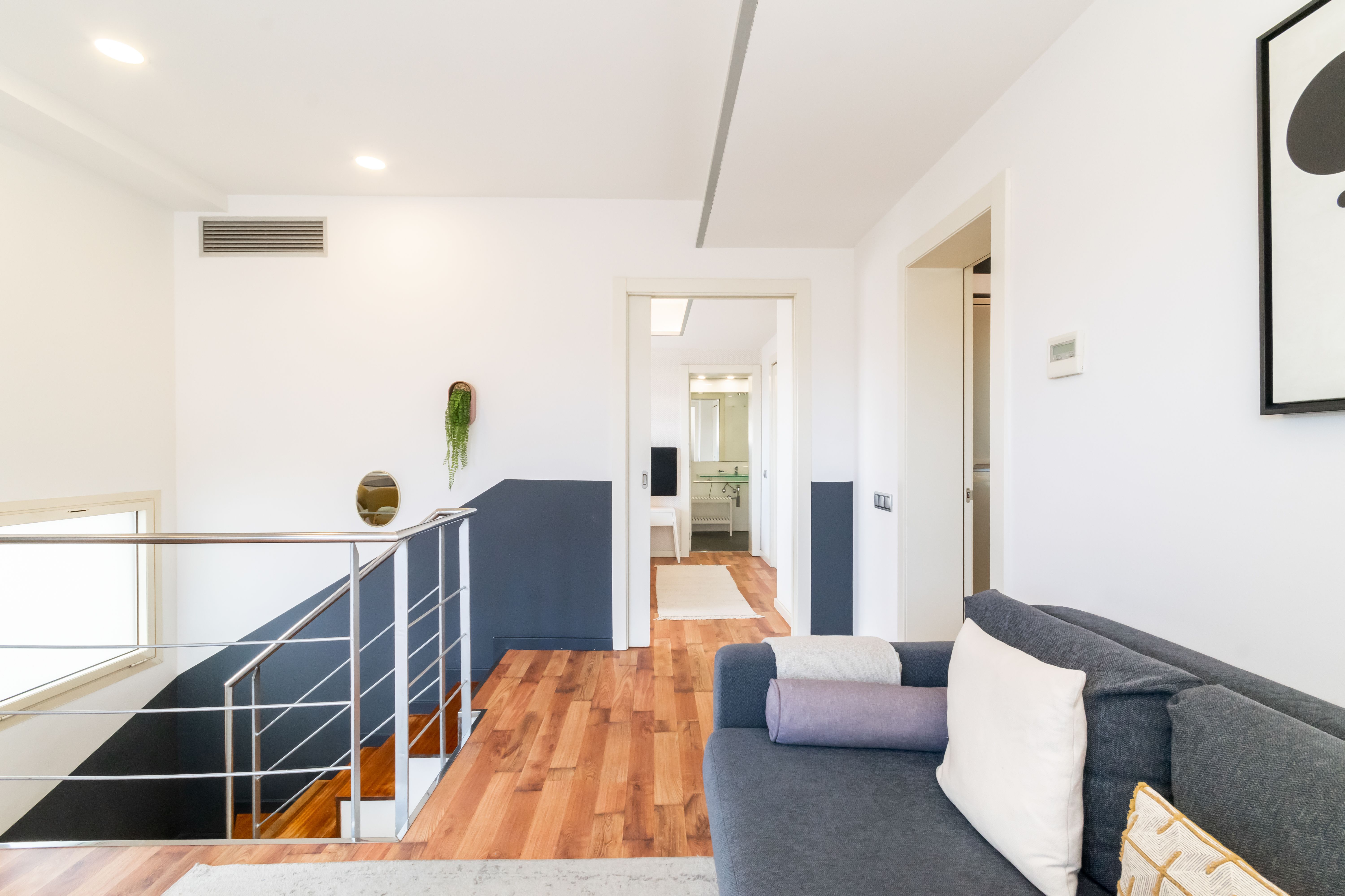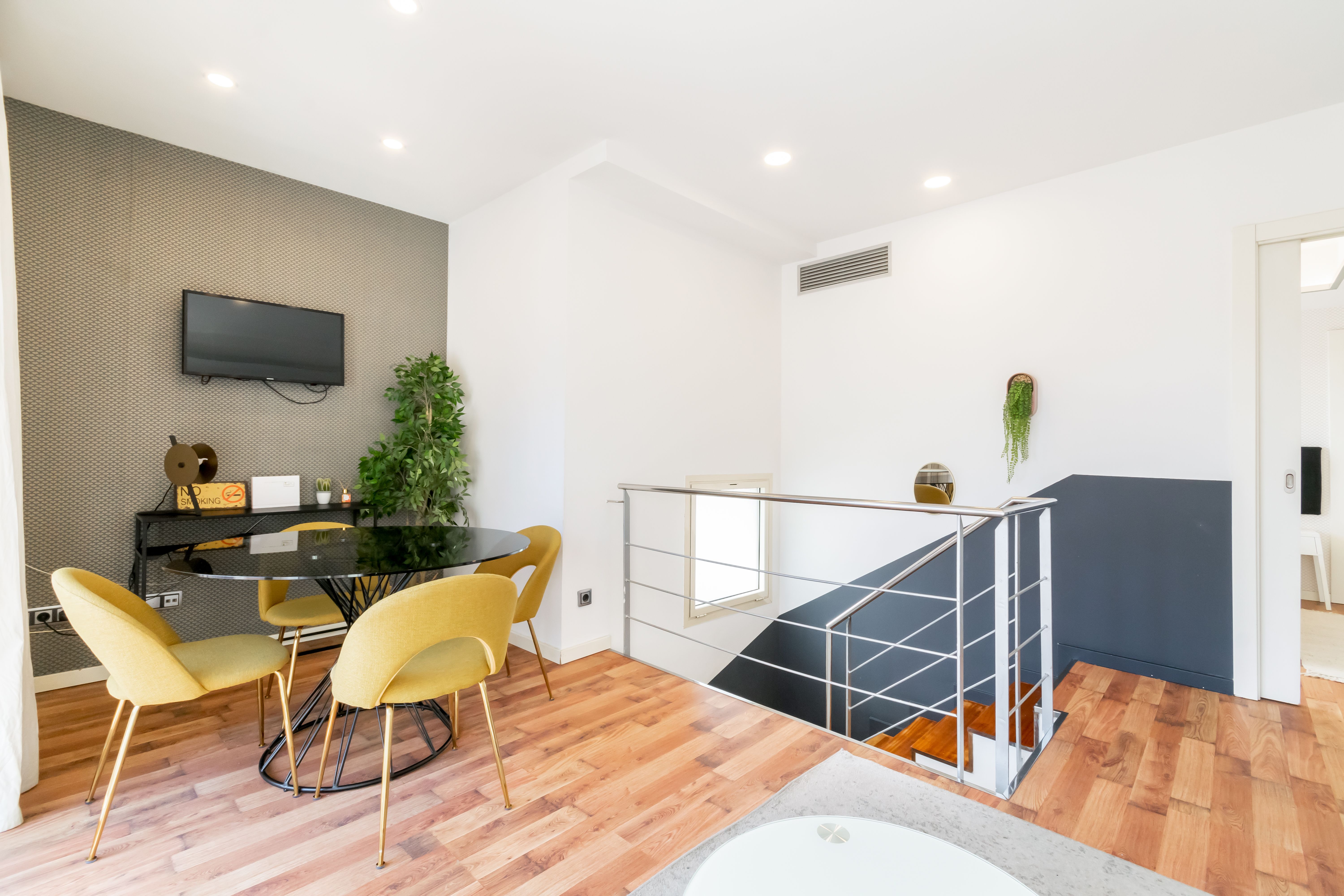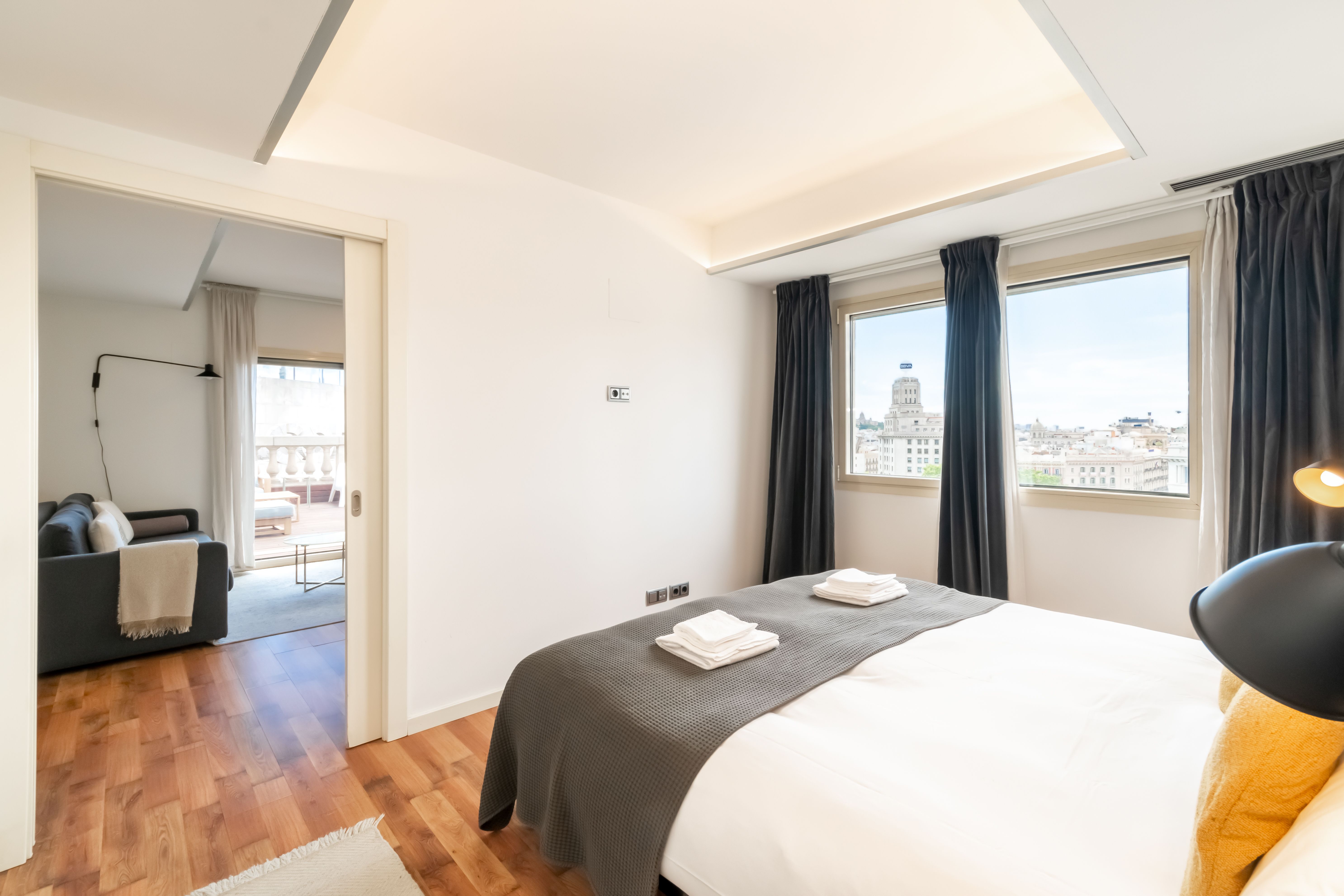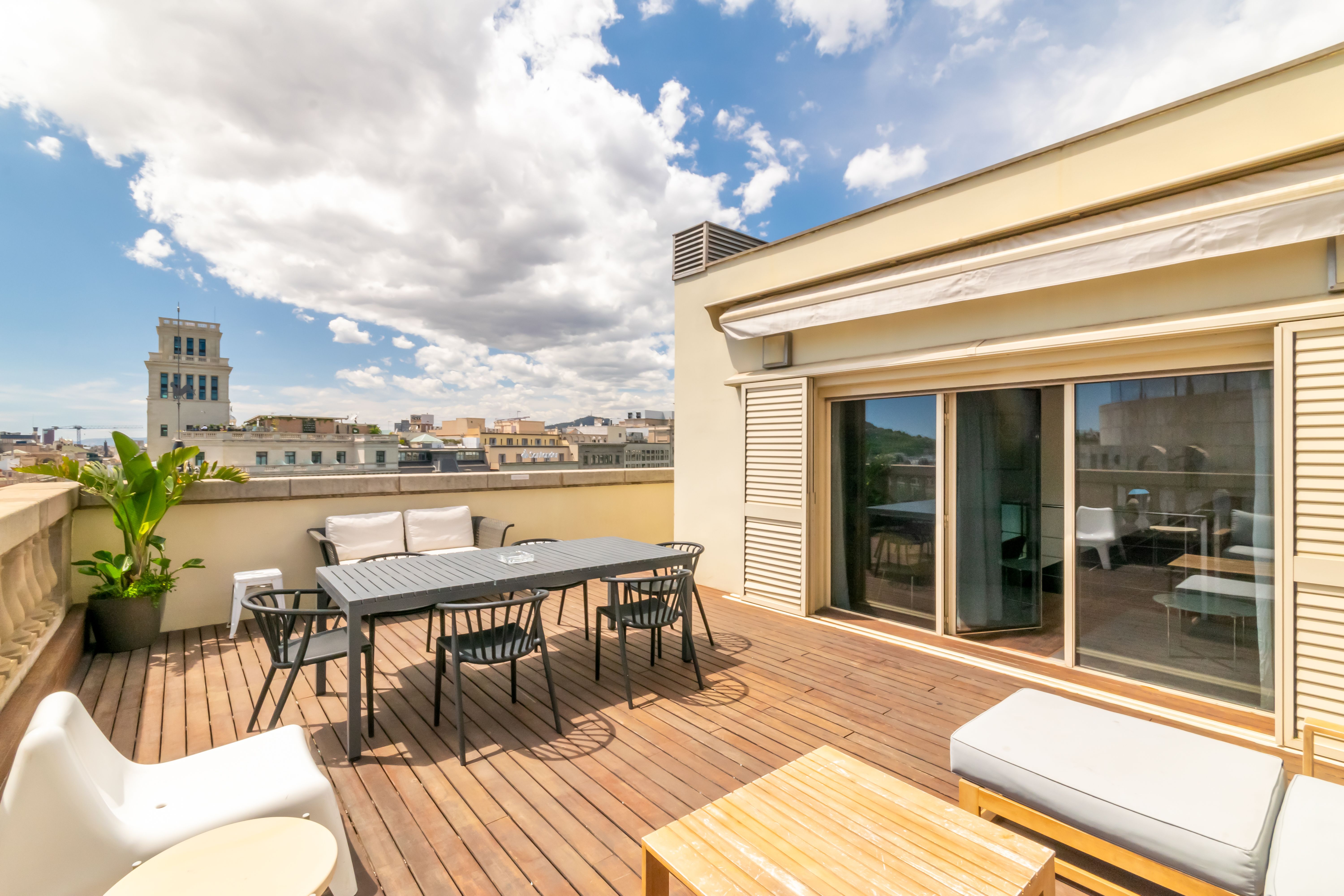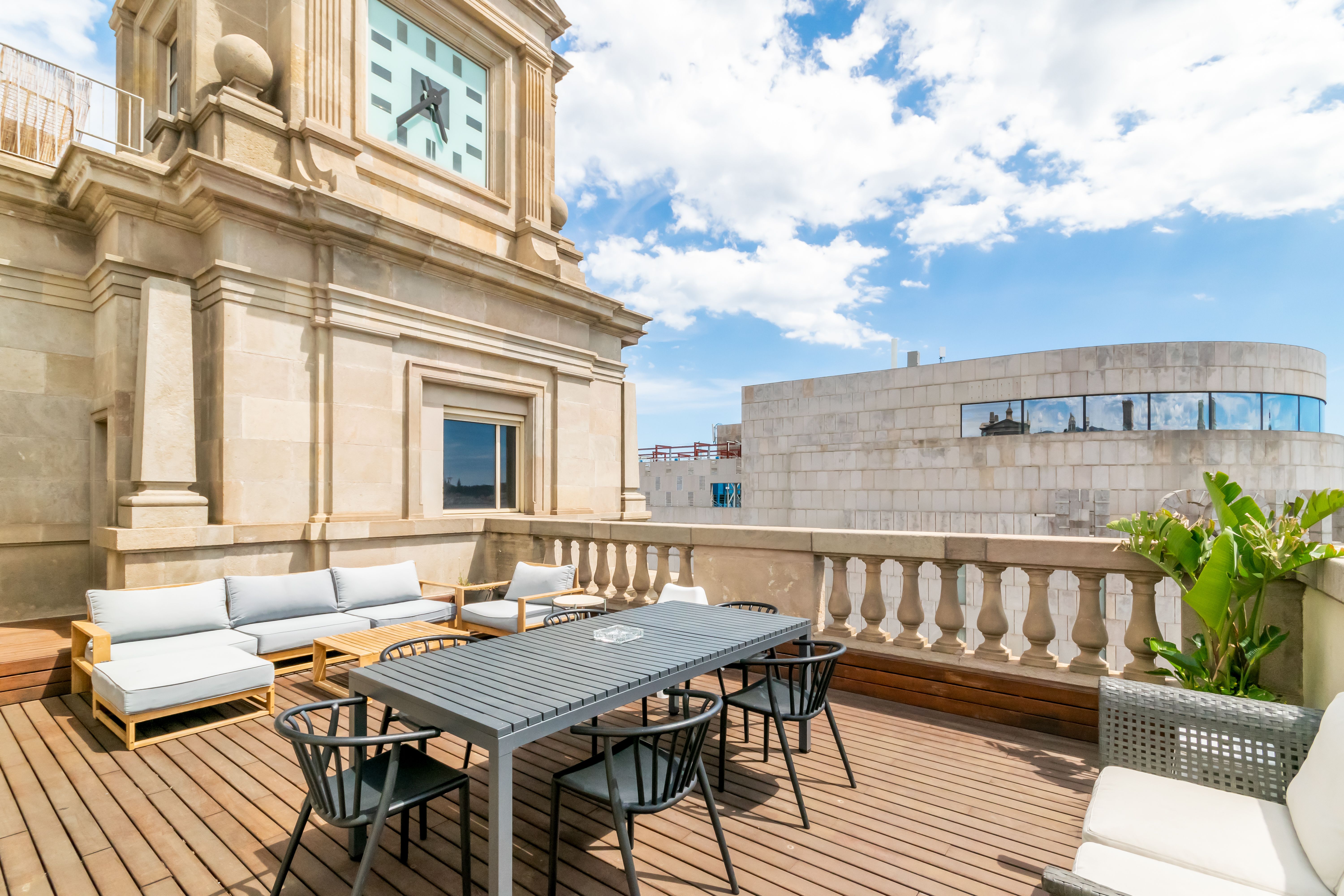 If you’re looking for an unforgettable stay in the heart of Barcelona, this dreamy penthouse apartment is just the ticket. Located a two-minute walk from Plaça Catalunya and boasting wide-sweeping views of it from its huge private terrace, this home is the very definition of the high life. Laid out over two floors (with one bedroom on the lower floor) you’ll enjoy plenty of privacy here when needed, as well as ample space for socialising. Of course, the terrace is the main place to be for gatherings over alfresco breakfasts and sunset drinks paired with homemade tapas. But the living room – with its large glass doors and sunny dining spot – is just as enviable when it comes to lounging and spending time together. While it’s hard to resist this home’s views, we guarantee that exploring your Eixample neighbourhood is just as fun as watching the hustle and bustle of Plaça Catalunya from above. Shop along Passeig de Gràcia (a one-minute walk), admire Gaudí’s Casa Batlló (an eight-minute walk) and take an afternoon stroll through Ciutadella Park (fifteen minutes away on foot). With La Sagrada Familia a thirty-minute walk away too and countless bars, shops and restaurants on your front step, you’ve got everything you need for a perfect city stay.