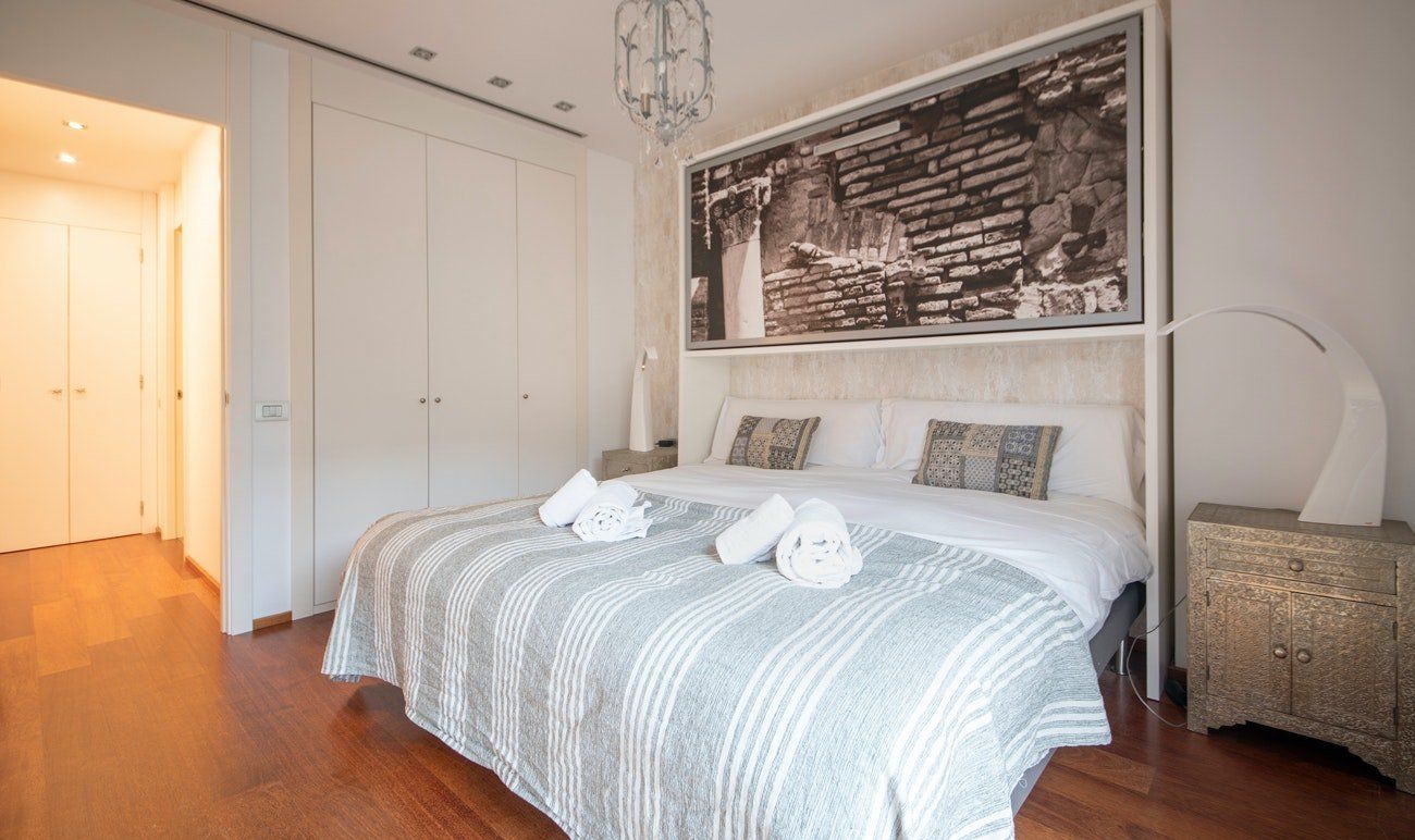 We love this home's open-plan design aesthetic. Inside, it's a timeless canvas of white walls and wooden floors, adorned with stylish decor. Large windows offer pretty views of the street while ushering sunlight to flood the space. After a restful slumber in the lavish bedrooms, spend mornings roosted at the dining table for coffee and breakfast. The fully-equipped kitchen has everything you could need to prepare a home-cooked feast, though if you'd prefer to try the local cuisine, you're in an ideal spot to do so. Eixample is brimming with cafes and eateries, not to mention swish bars for those sunset cocktails.