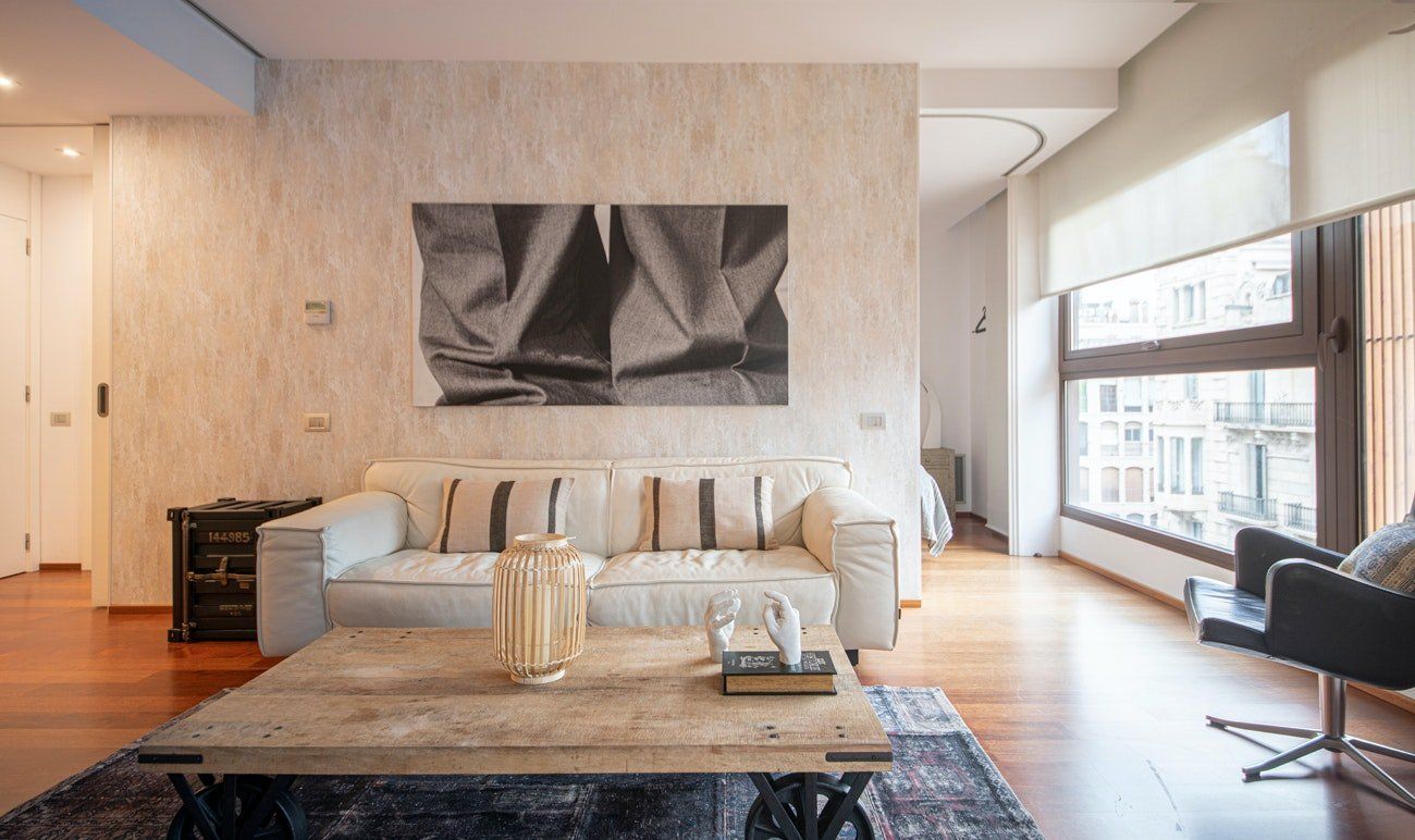 Situated in the affluent neighbourhood of Dreta de l'Eixample, this home offers a stylish base at the heart of the action. You'll find it nestled in a contemporary building on the top floor, providing a tranquil base amidst the hustle and bustle of the city. Here, you're surrounded by metro links and a short walk from the famous Plaza Catalunya and Las Ramblas. The Passeig de Gràcia, with its delightful cluster of upmarket boutiques and Gaudi masterpieces, is also just a four-minute stroll from your doorstep.