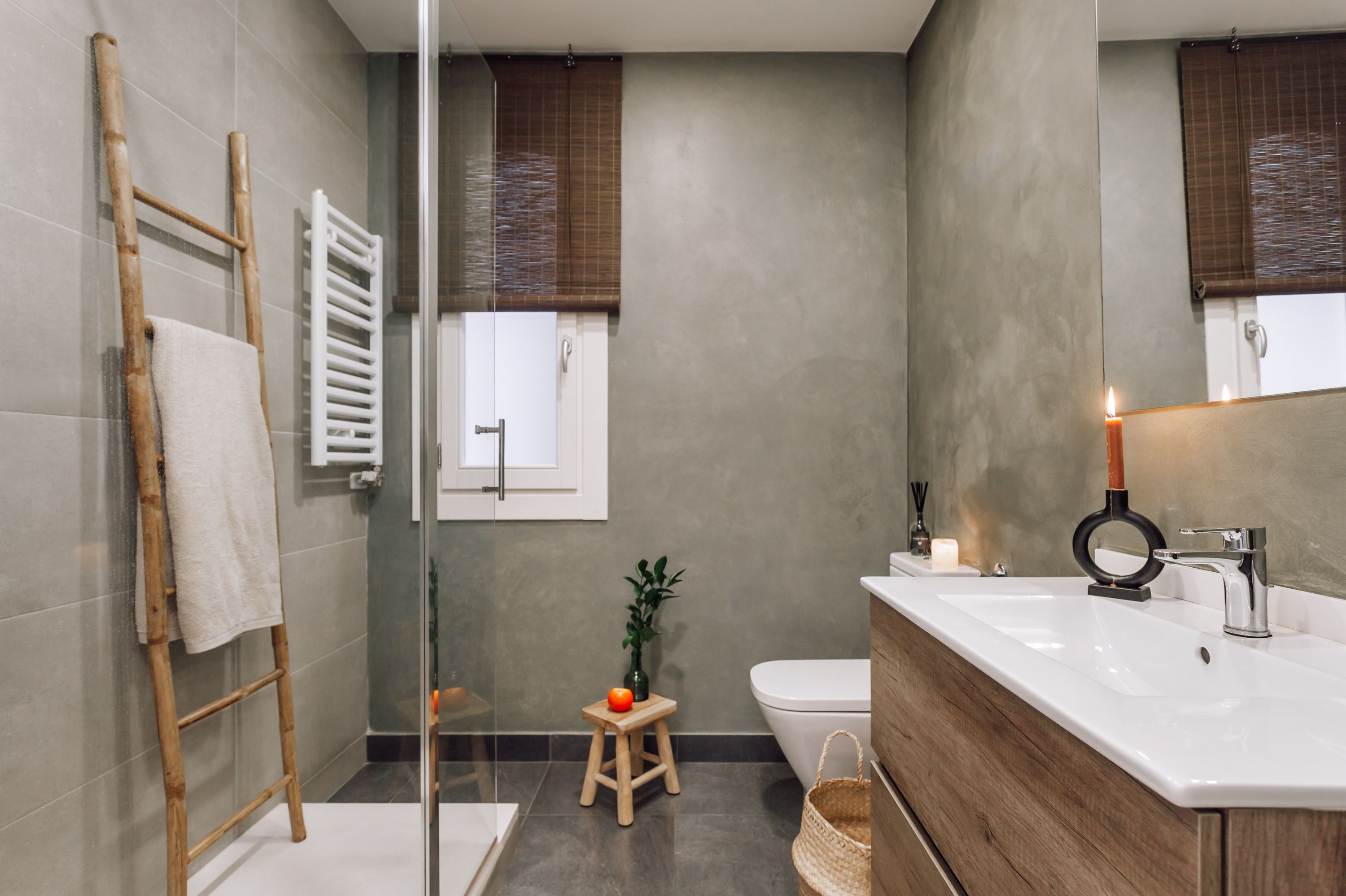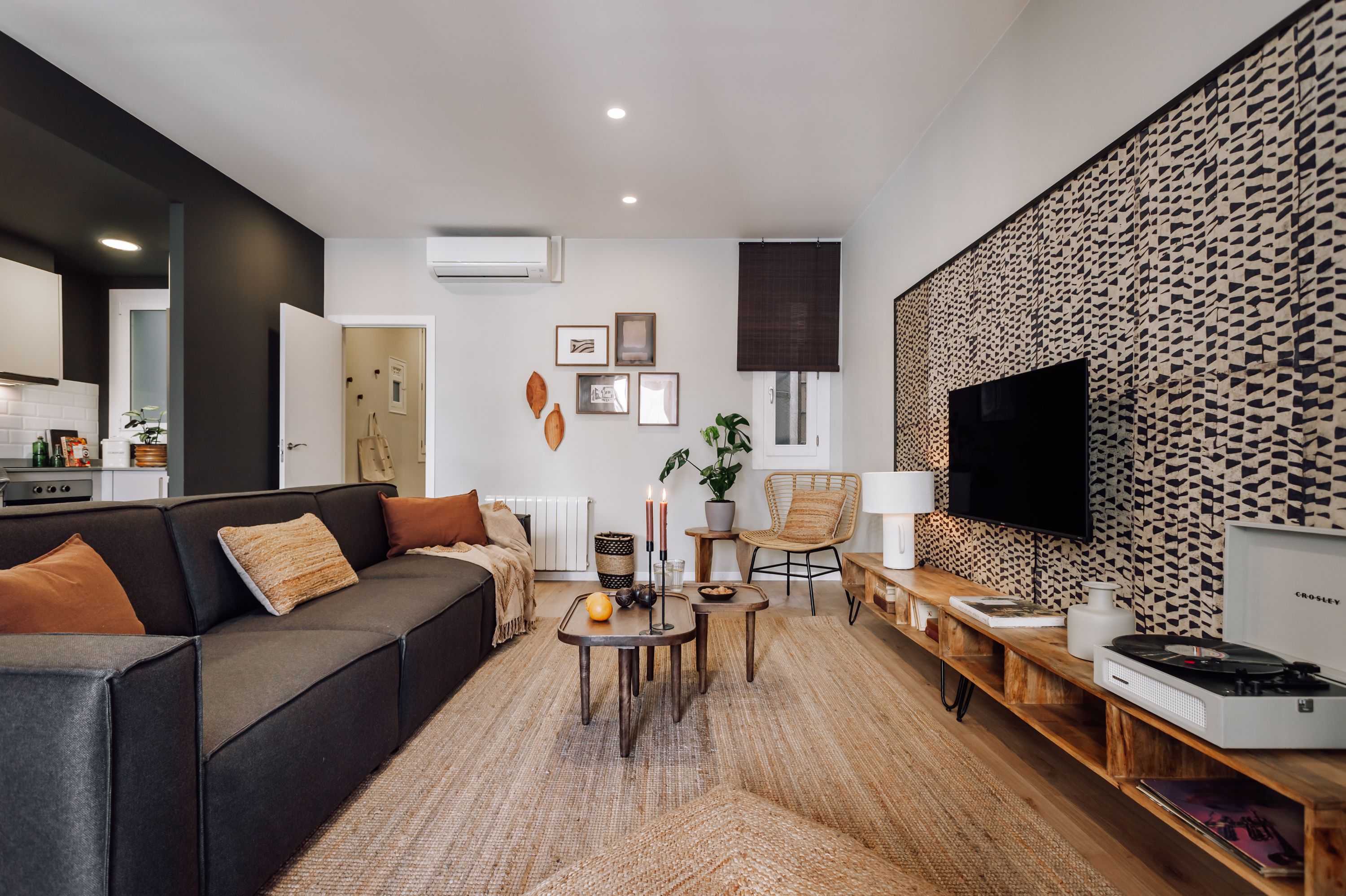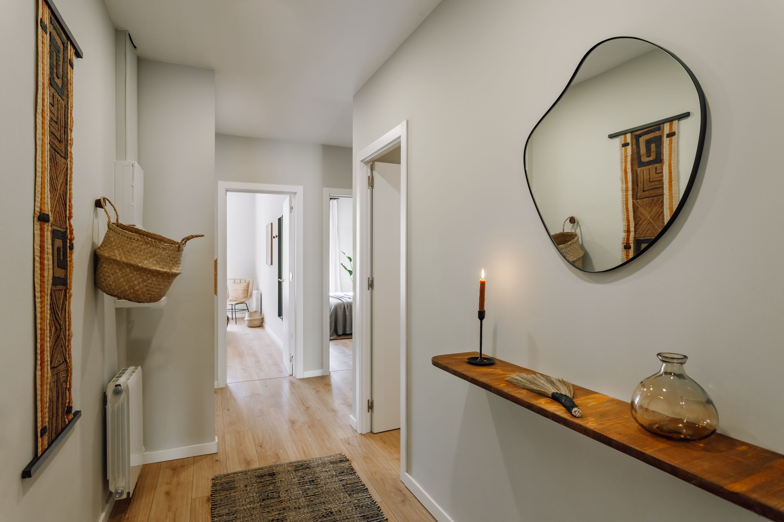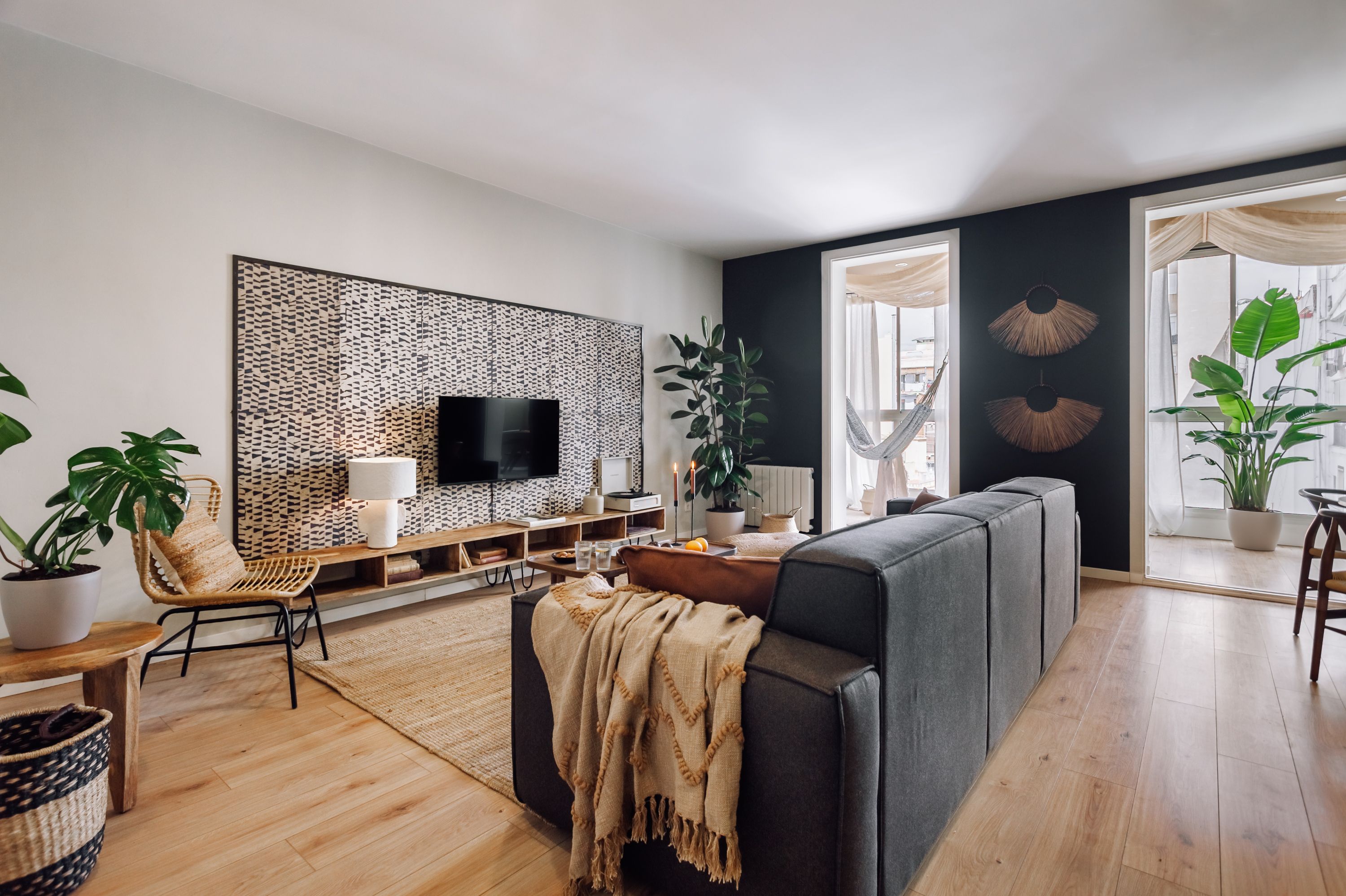 Perfectly placed, this stylish apartment has Barcelona’s best bits within easy reach. The Casa Milà and Sagrada Familia are within a twenty-minute walk of the building, and Somorrostro Beach is easily reached by metro. Those visiting on business will be pleased to know there’s a desk here for remote working, while those here for pleasure should make a beeline for the hammock. The home benefits from a balcony, but space is limited, so you won’t find anywhere to sit.