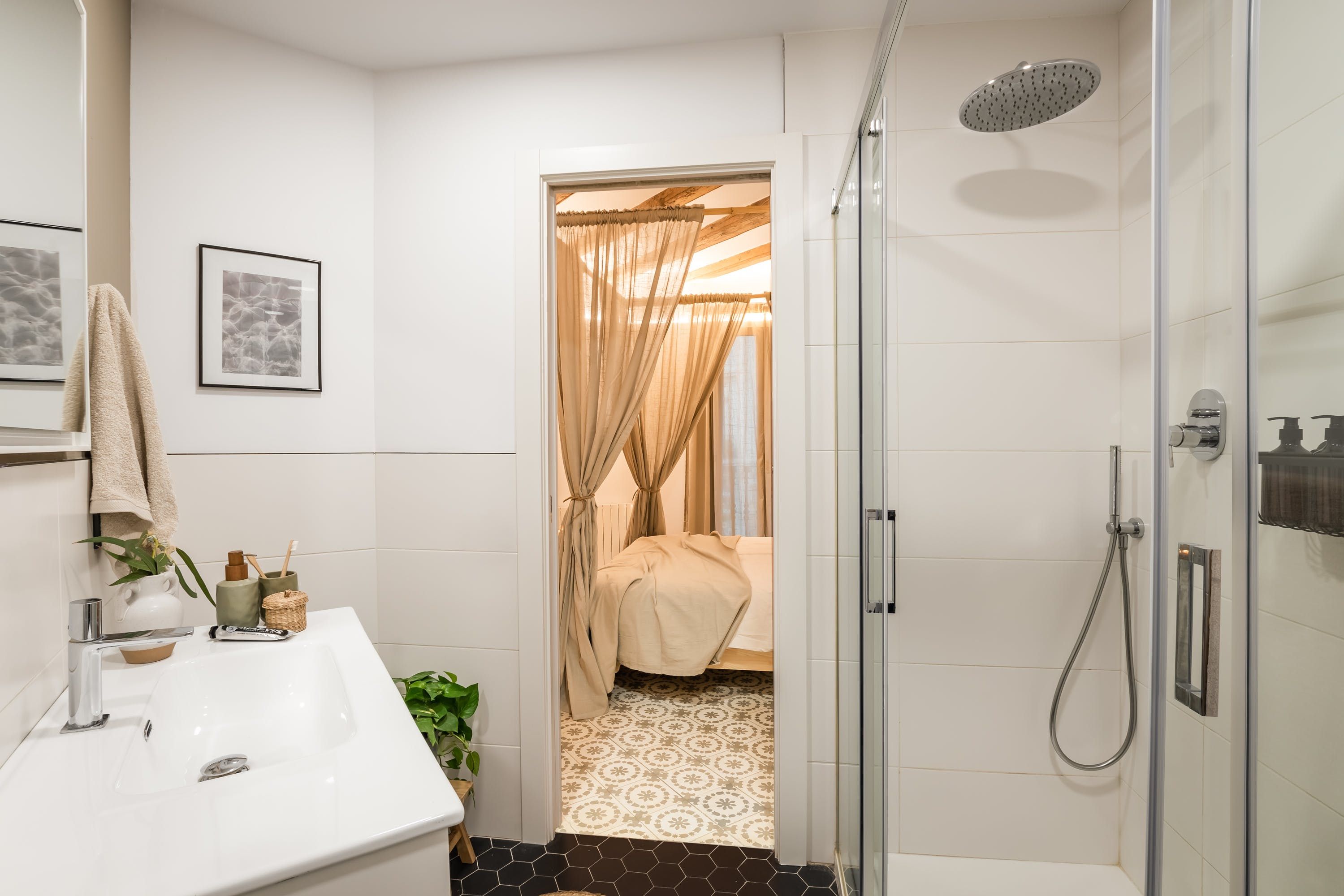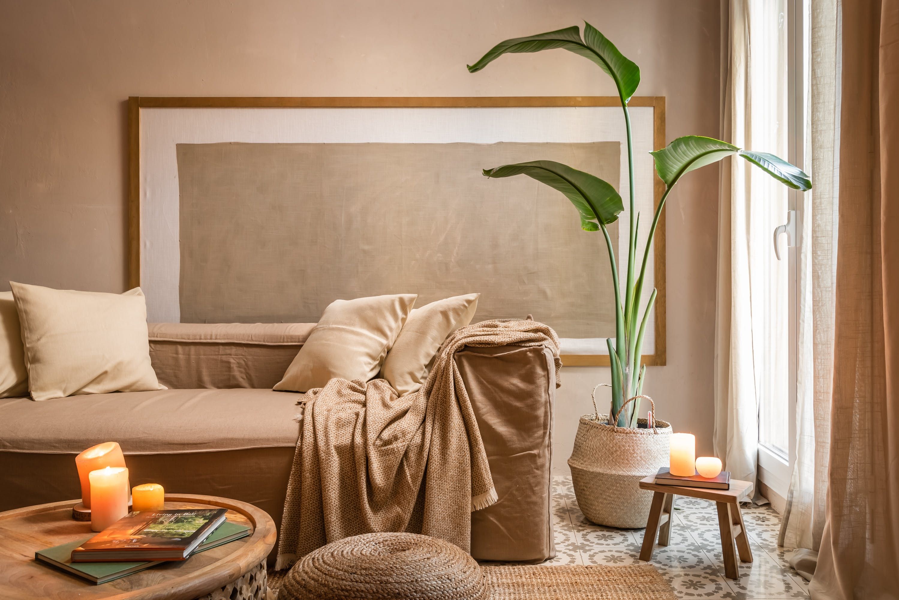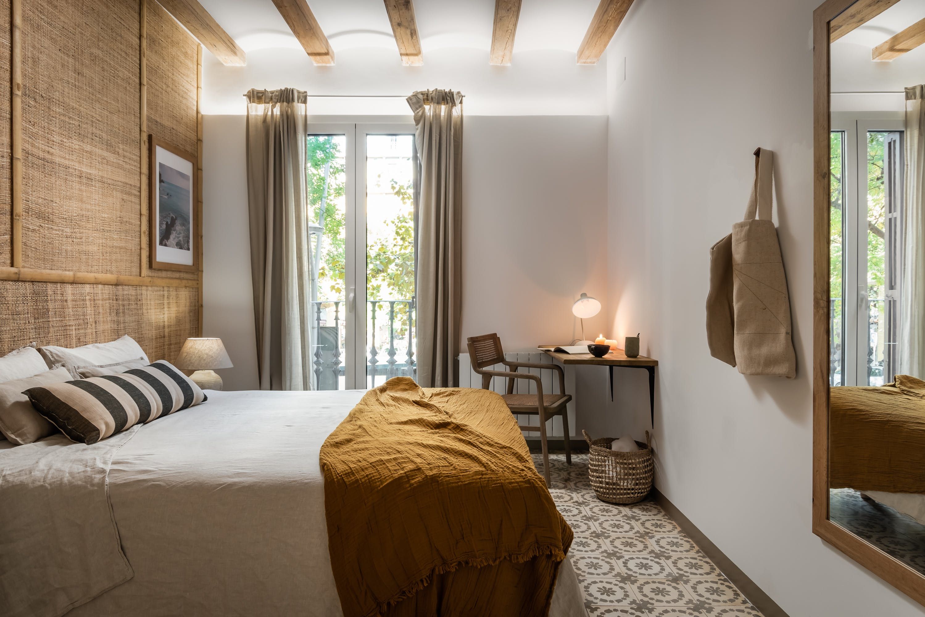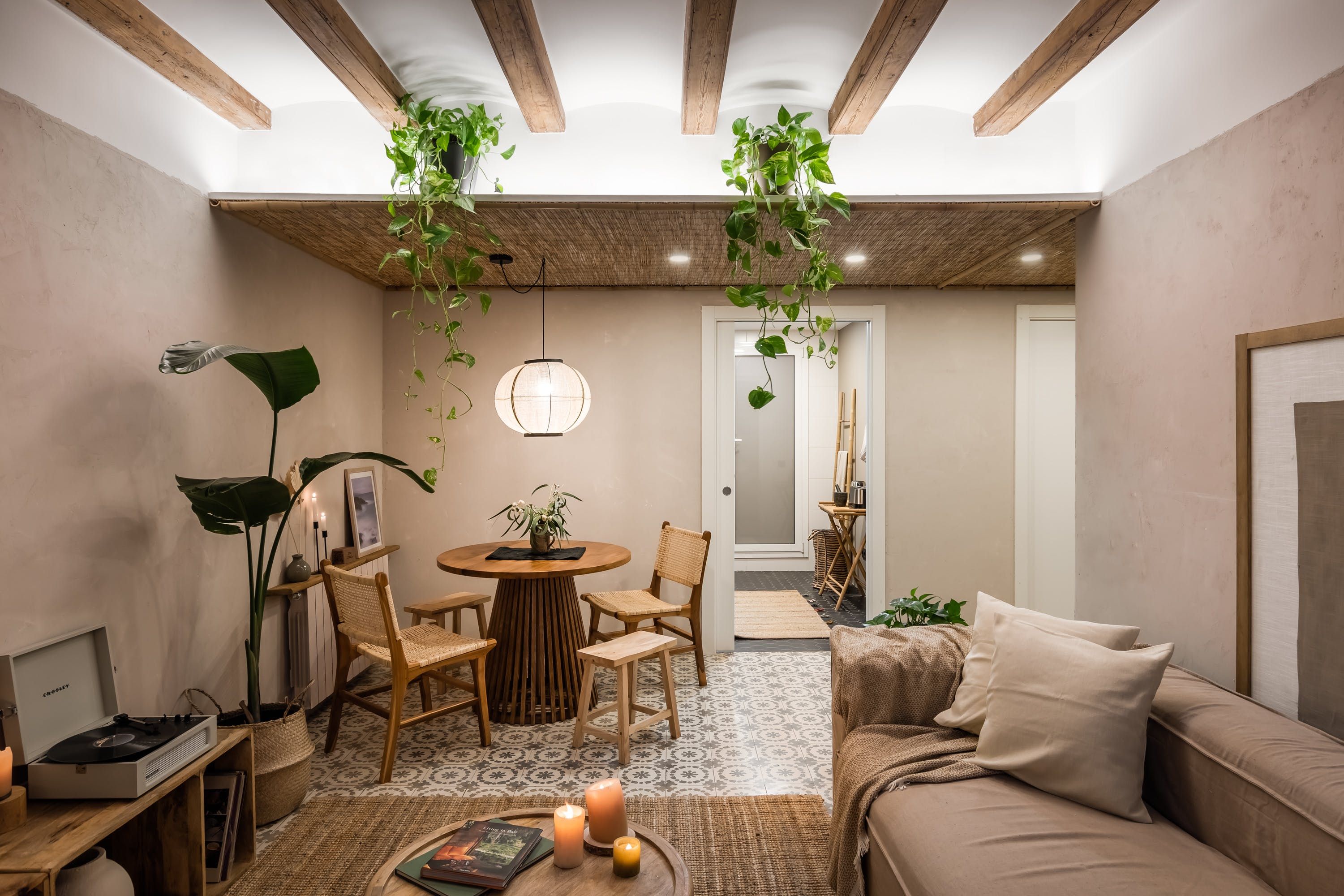 This gorgeous apartment is a true sanctuary in the heart of buzzing Barcelona. Step inside, and you'll find a peaceful space that will make you feel at home in no time at all. There's a truly tranquil vibe here, thanks to the warm colour scheme, natural textures and living plants that provide a splash of greenery. Cook up your favourite dishes in the sleek kitchen before gathering around the dining table with your guests – and don't forget to soundtrack your meal by playing an album on the record player. Afterwards, you might like to head outside to the terrace, a sublime spot where you can kick back and relax in the fresh air. You're in the perfect location to enjoy all Barcelona has to offer, no matter what your interests are. Parc de Joan Miró is just a fifteen-minute walk from your front door, while the iconic La Rambla is the same distance away in the opposite direction. If you fancy dipping your toes in the sea or stretching out on the sand, then you can arrive at the beach in just twenty minutes via public transport. And, at the end of a day exploring the city, you can sink into one of the beautiful beds for a fabulous night's sleep – sweet dreams.