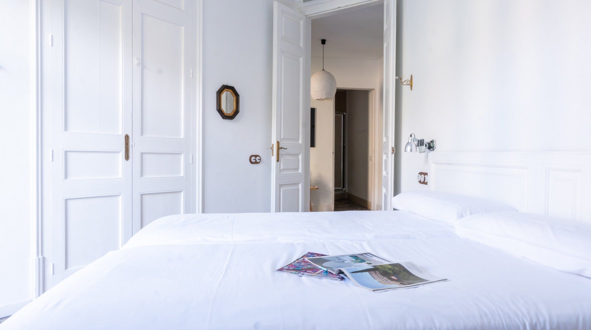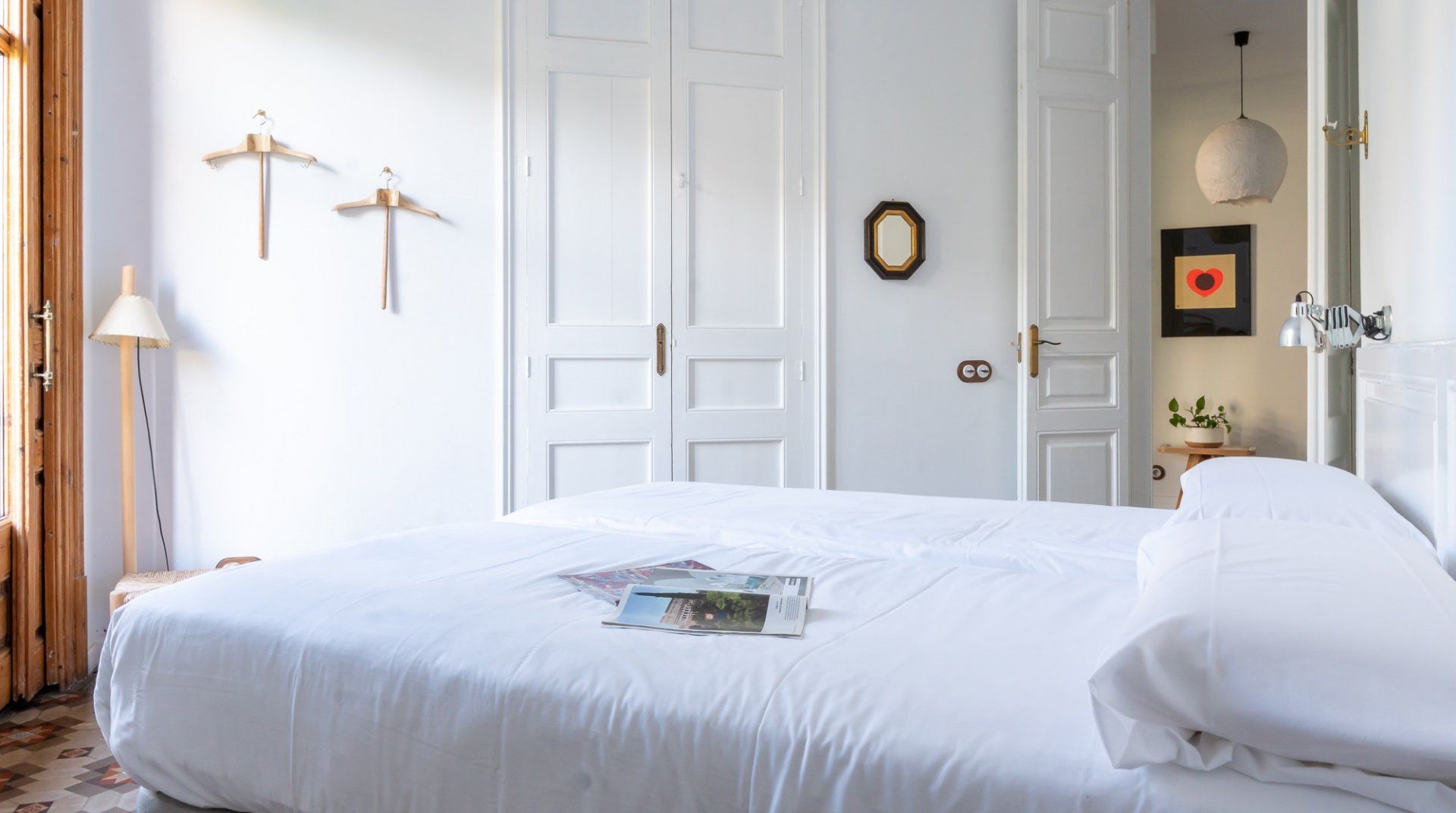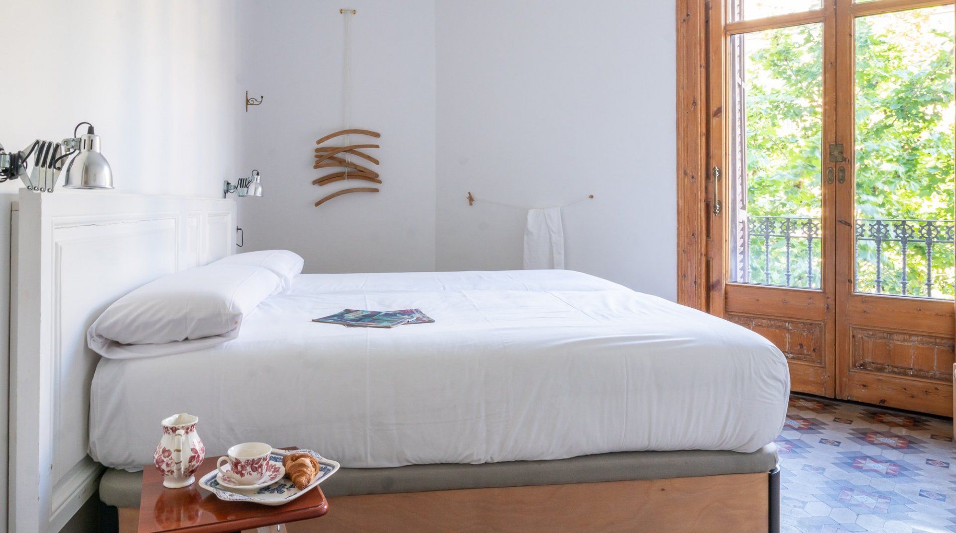 In a traditional building, recently modernised with eco-conscious touches, this character apartment is set between the El Born and Eixample neighbourhoods. With sustainability in mind, the hosts have hand-picked recycled wood for the quirky kitchen cabinets, along with things like vintage glasses and upcycled armchairs. The mini-bar with local eco soaps, toothbrushes, beers, wine and juices is a nice touch and there's nothing like stepping out onto your little balcony, glass in hand, and taking in the sights and sounds of this vibrant area. Bedrooms are calm and quiet, and all the more beautiful thanks to their Catalan tiled floors, high ceilings and tall windows. But our favourite thing about this charming place is the hosts, who live in an apartment on the top floor and are welcoming and knowledgeable. They'll look after your bags before or after checkout, welcome you with a local breakfast and even allow you to use their beautiful roof terrace from time to time – where you can see across the city to the sea.