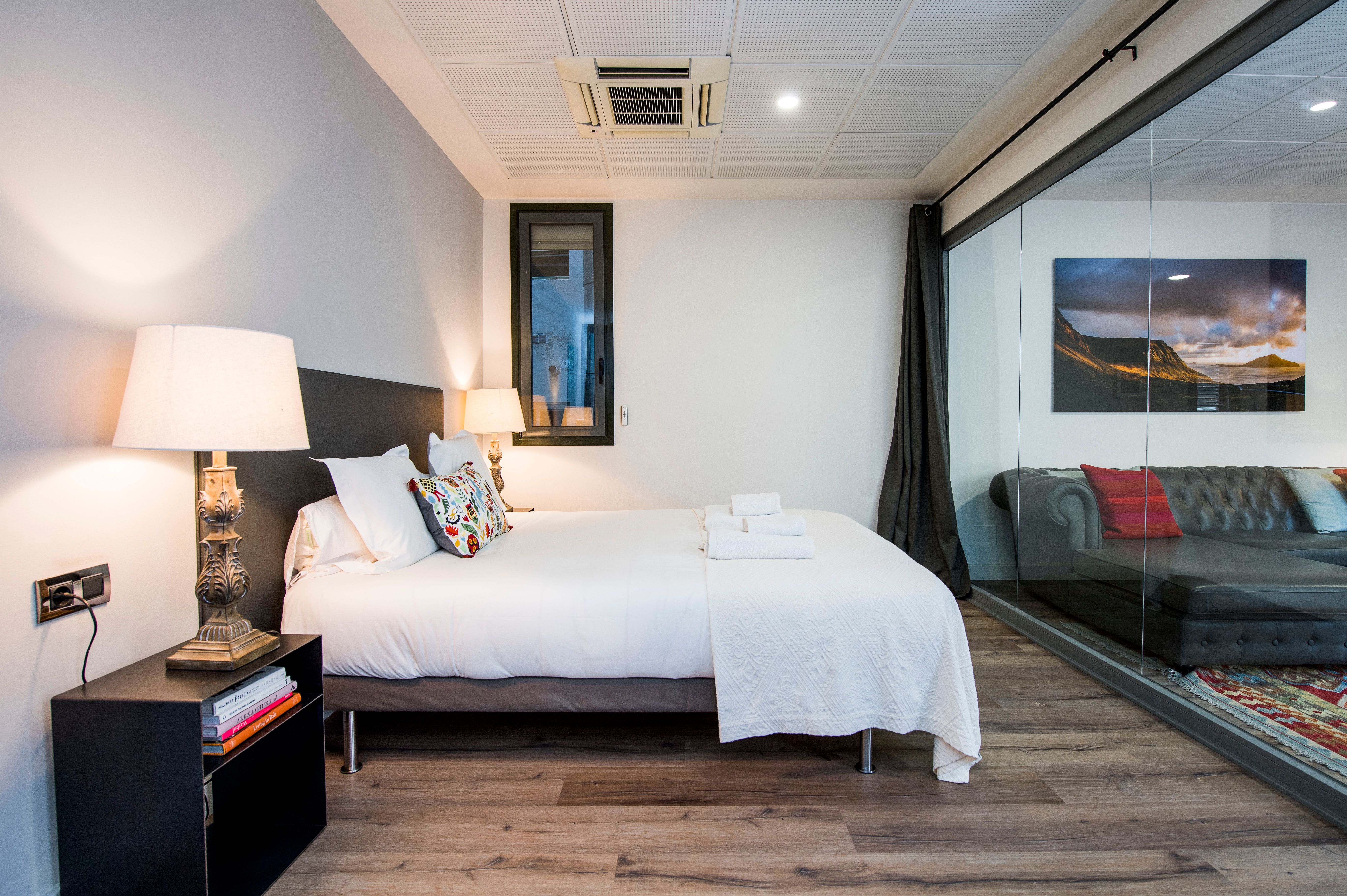 Inside, floor-to-ceiling windows bathe the open-plan living area in light. Kick back on the sofa with a glass of Spanish wine while taking in the view or sit down to a meal at the window-side table, cooked up in the sleek kitchen.