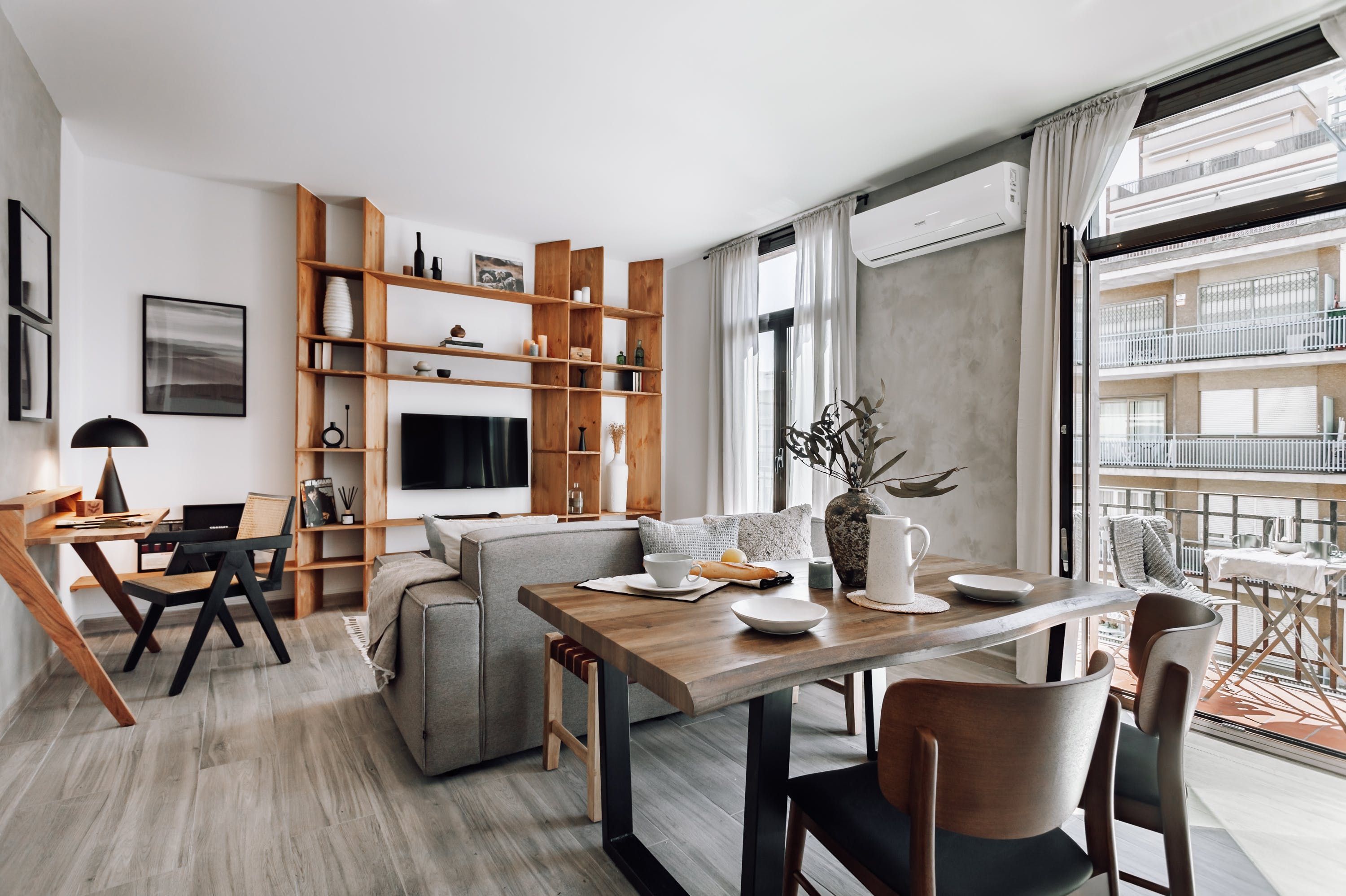 Home truths: *The entrance to this home is shared with the building's other residents. *You'll only find air conditioning in the living room here. *This home is in a central spot, so noise is to be expected. *There's a desk here if you need to catch up on some work during your stay. *Parking in Barcelona can be tricky, so we recommend sticking to the easily accessible public transport where possible – though we think the best way to explore the city is on foot.*This host requires your check-in to be within 3-5 days from when the last booking ends. If you are unsure if your dates will work or for help finding alternatives, please contact our Matchmaking Team. *Please note that the building amenities such as the pool and gym may have specific hours of operation and might not be available year-round.