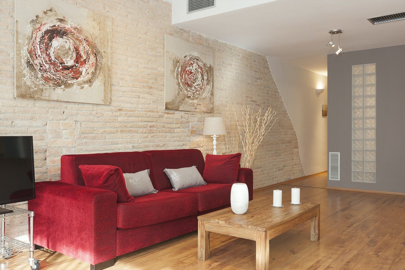The soft-toned exposed brickwork inside gives the feeling of a soothing yet industrial space. Modern artworks adorn the walls and royal red velvet furniture pops against the otherwise neutral palette. The kitchen has plenty of space for family meals, a delight at the solid wood dining table. Plot the day’s activities with the curated selection of guidebooks over your morning coffee.