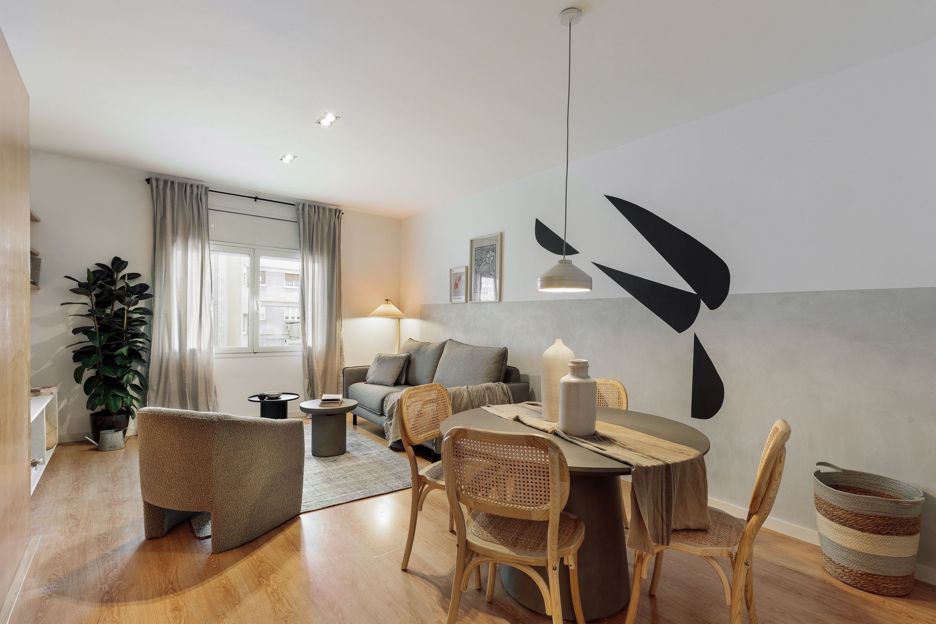 Modern, convenient, and practical, this apartment is a perfect base for four in Barcelona. It’s located in the tranquil, family-friendly neighbourhood of Sant Gervasi-Galvany, where you can unwind in Turo Park and shop in the luxury boutiques of Avenida Diagonal. Maria Cristina metro station is nearby, so you can easily visit the rest of Barcelona. The apartment is attractive and is well equipped, with a kitchen and a work area. The sheets are soft, and the decor muted and calm – you’ll be able to relax here.