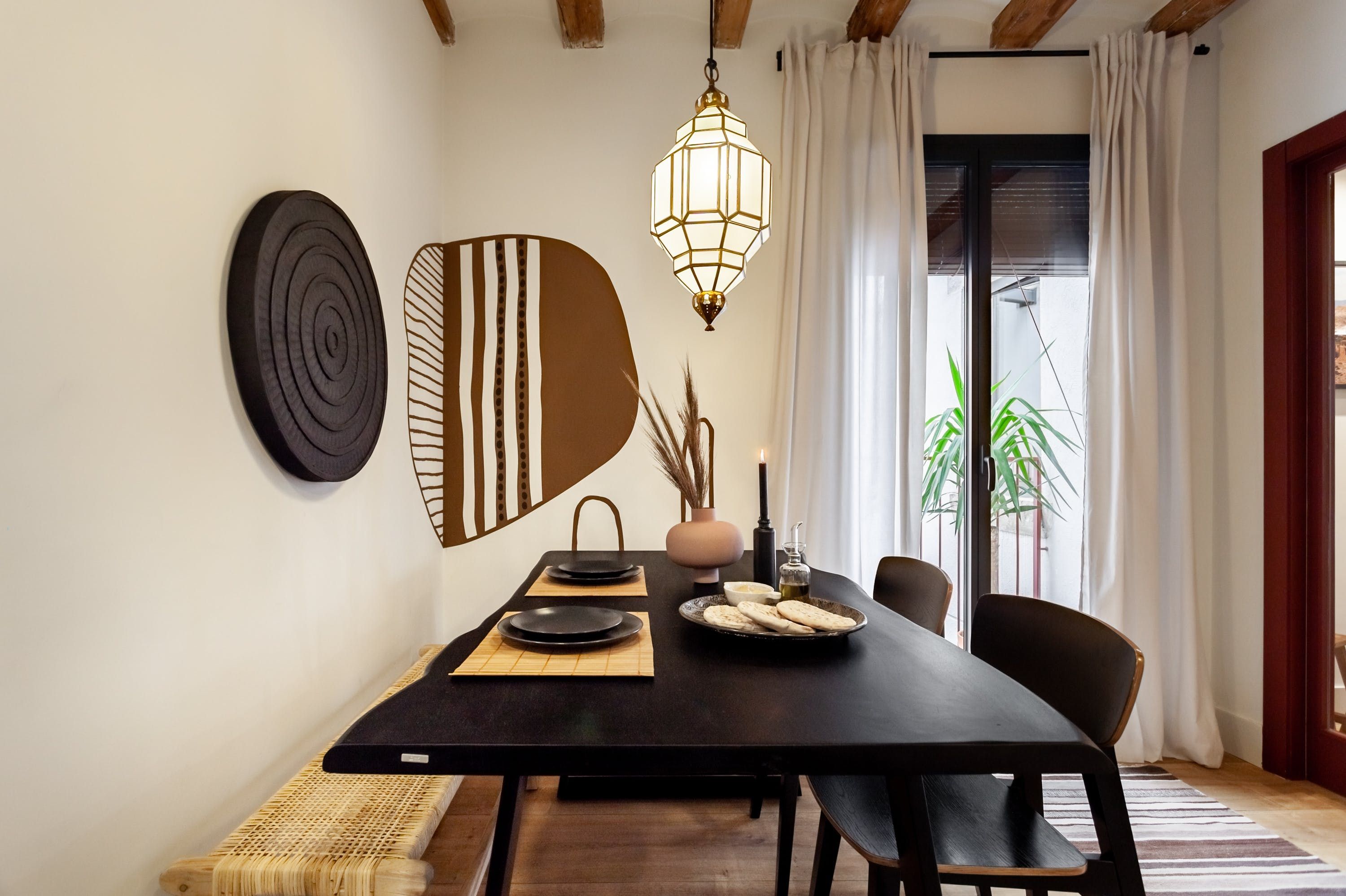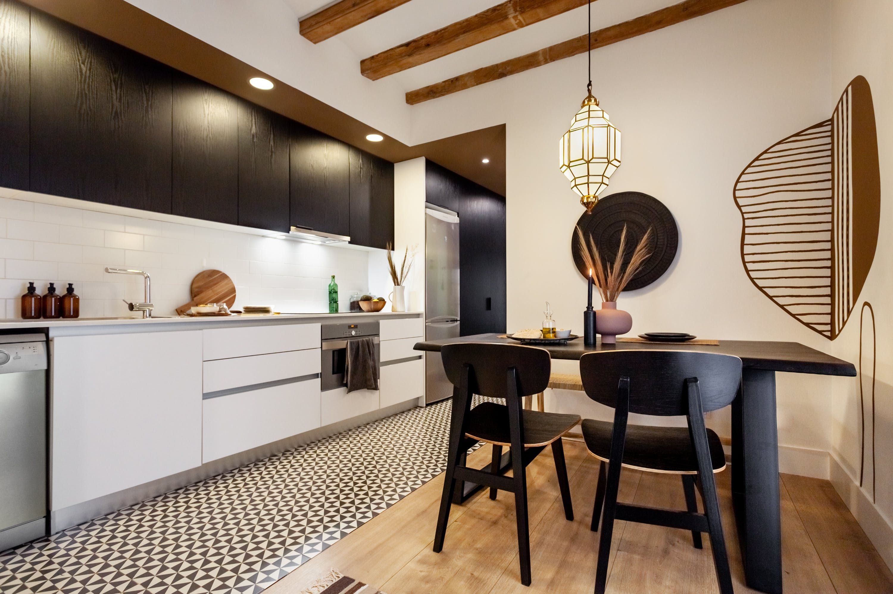 Surrounded by Sant Pere’s ancient streets now packed with indie fashion shops, craft coffee spots, gourmet tapas bars and museums, this wonderfully stylish home may be in the heart of one of Barcelona’s oldest districts, but its decor is nothing short of modern boho elegance.