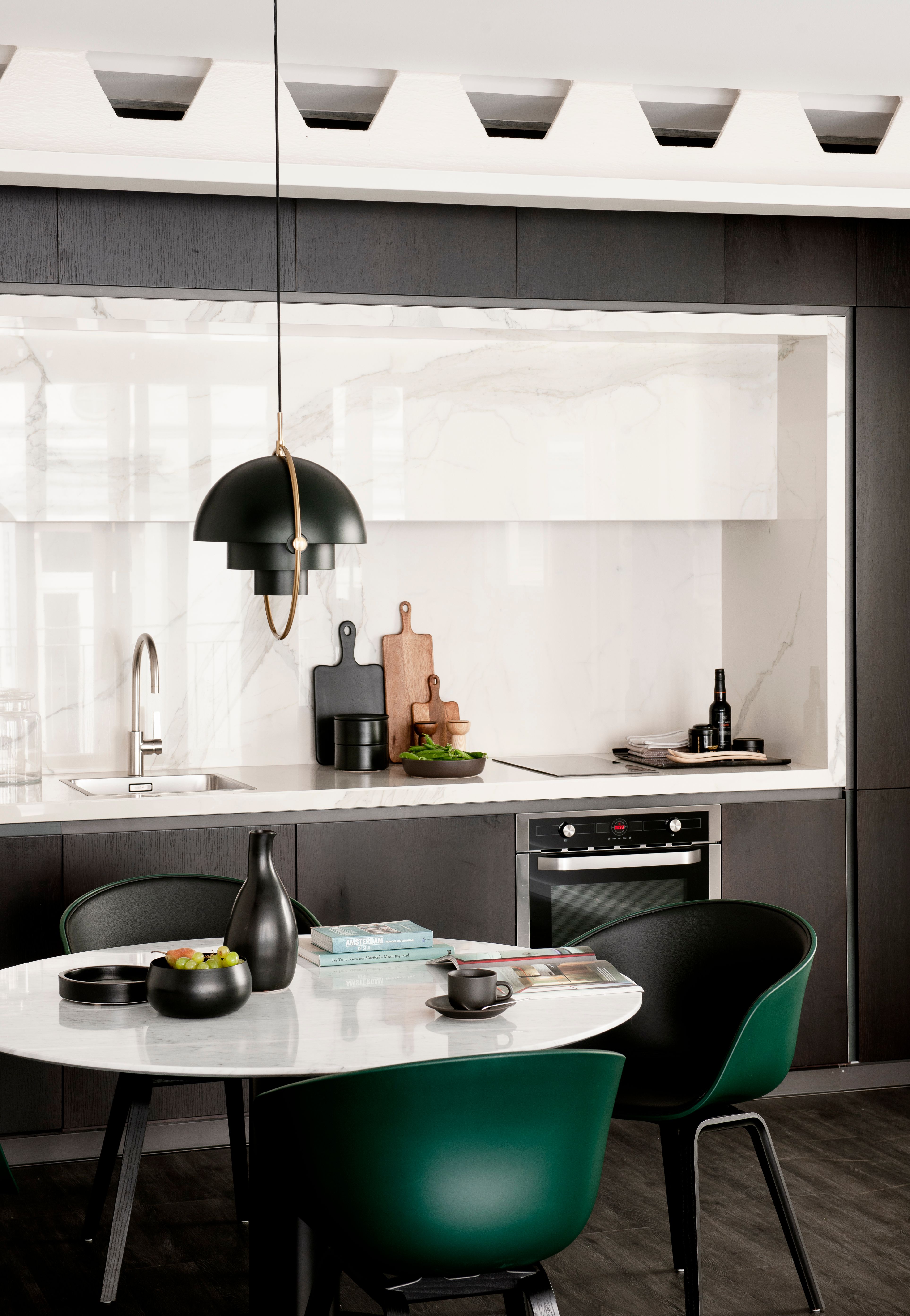 Push open the front door, and you'll find monochrome furnishings with the occasional pop of blue – this contemporary space is perfect for relaxing between your adventures. The open-plan set-up means you can chat with your fellow guests while cooking or preparing drinks, and there's space for the whole group to gather around the table for some quality time together.