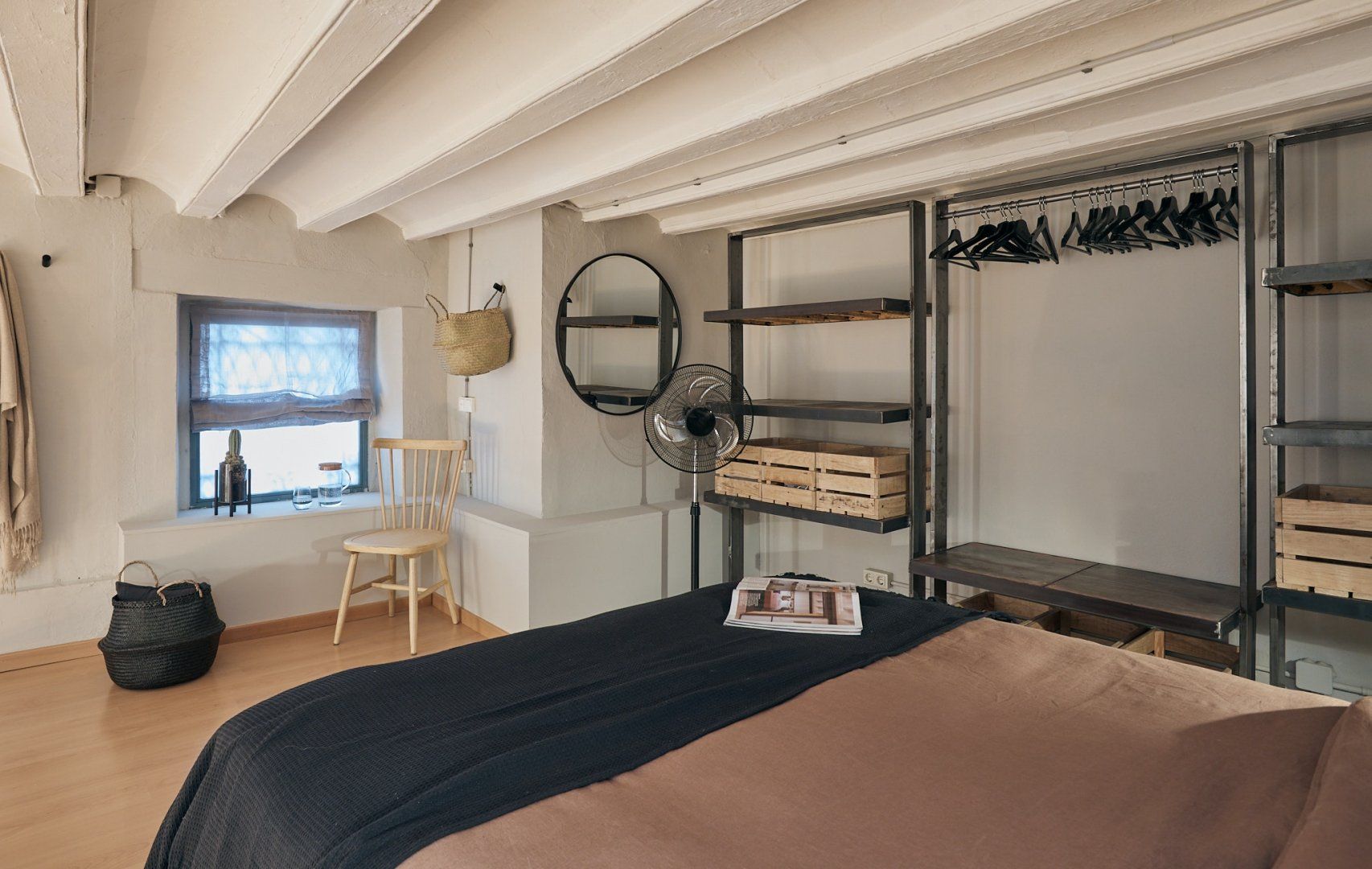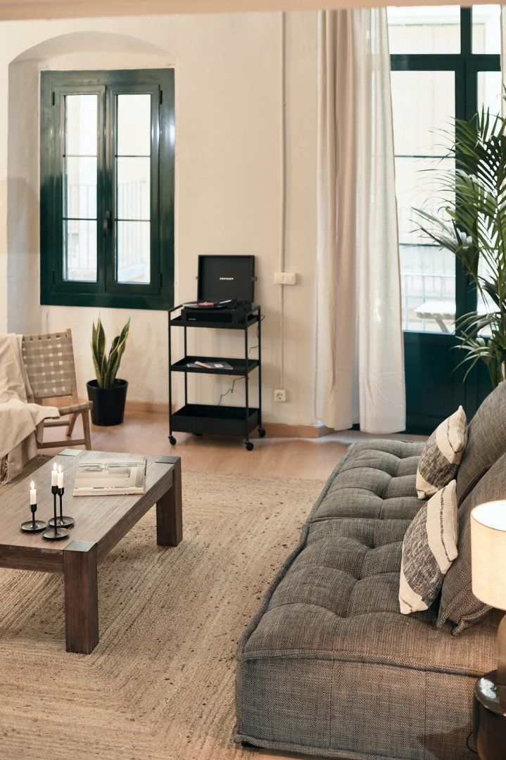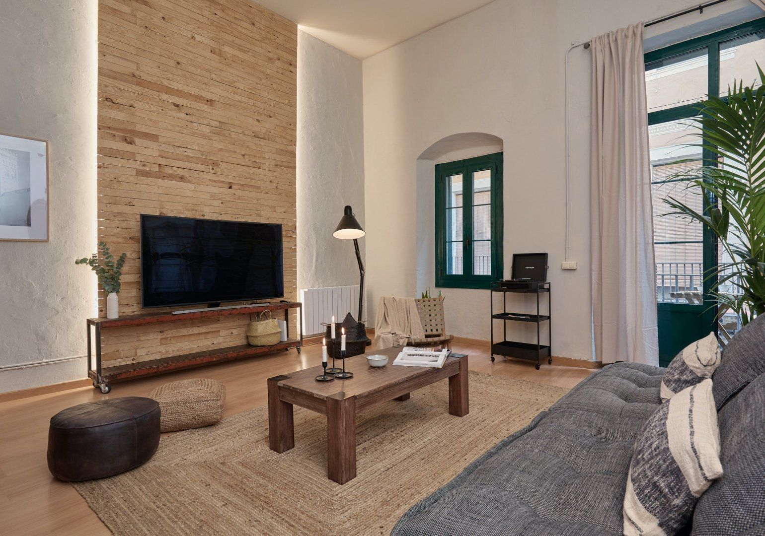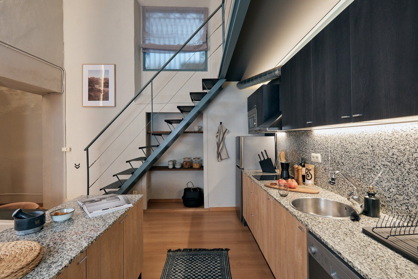 This apartment is a cosy and serene refugee from the city. High ceilings add drama to the warm, modern vibe of the raw-wood furniture and touches. The open-plan kitchen and dining area, coupled with the balcony, makes it a great social space, with plenty of room to unwind and chat over a glass of wine. Throw a record on the turntable as you settle in for a relaxing evening. Located in the bohemian heart of the old town, surrounded by charming narrow streets. El Born is also known for its great tapas bars and trendy restaurants, so you can eat your way through the city in style.