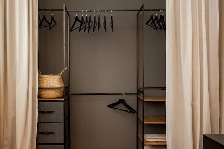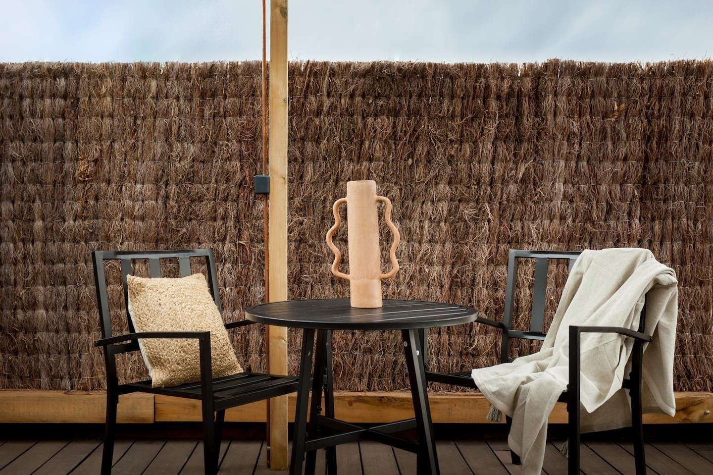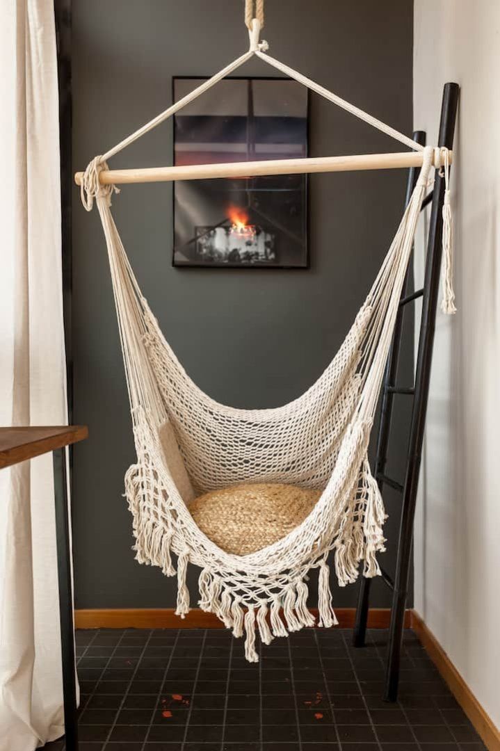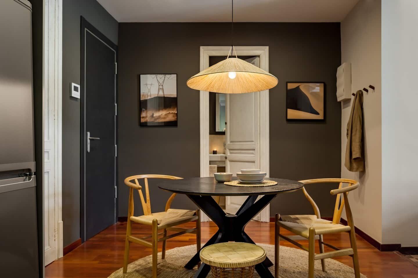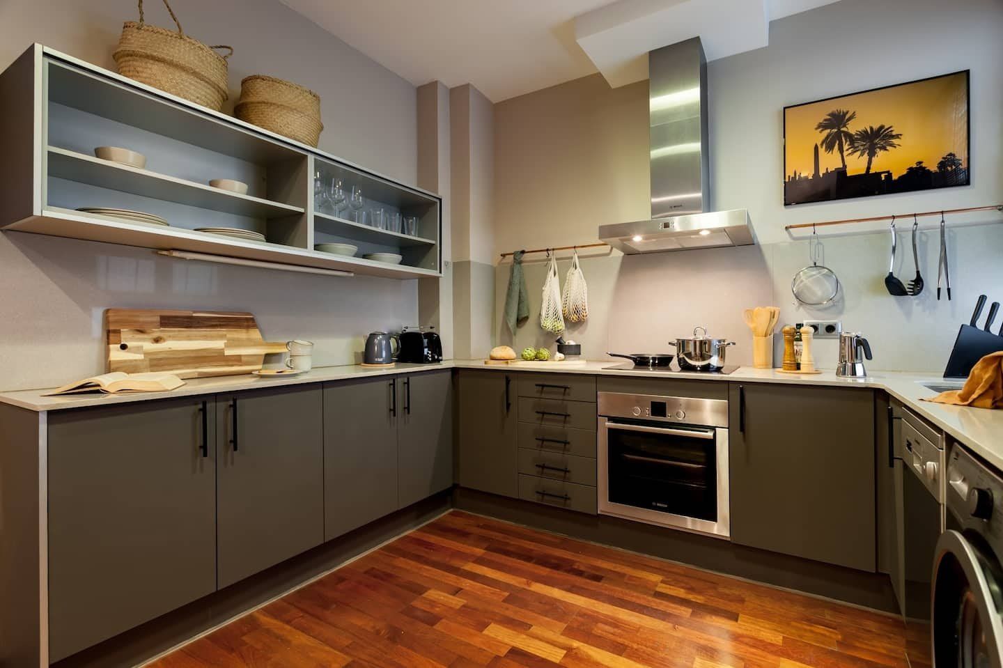 Boho chic meets sophisticated cool in this Barcelona flat in the heart of the Eixample district. The living room oozes laid-back vibes with its plump grey sofa, geometric chandelier and patterned tiles, while its charcoal statement wall perfectly offsets the vibrant green of its statement piece cactus. Make yourself a coffee in the large modern kitchen, then catch up on some work in the sunny study nook, or hang out with a book in the indoor hammock chair. With a private rooftop oasis waiting for you though, there’s no time to lose before soaking up some sun on its inviting deck. Lay back on the outdoor sofa, enjoy a cool drink in the hammock and take in the sweeping city views that surround you. When the Spanish sun gets too hot, treat yourself to an outdoor shower for a refreshing fix. At sunset, mix yourself some rooftop cocktails, then pop a record on in the living room and dance the evening away. Or, head out to explore the city’s scintillating food and bar scene, right on your front door.