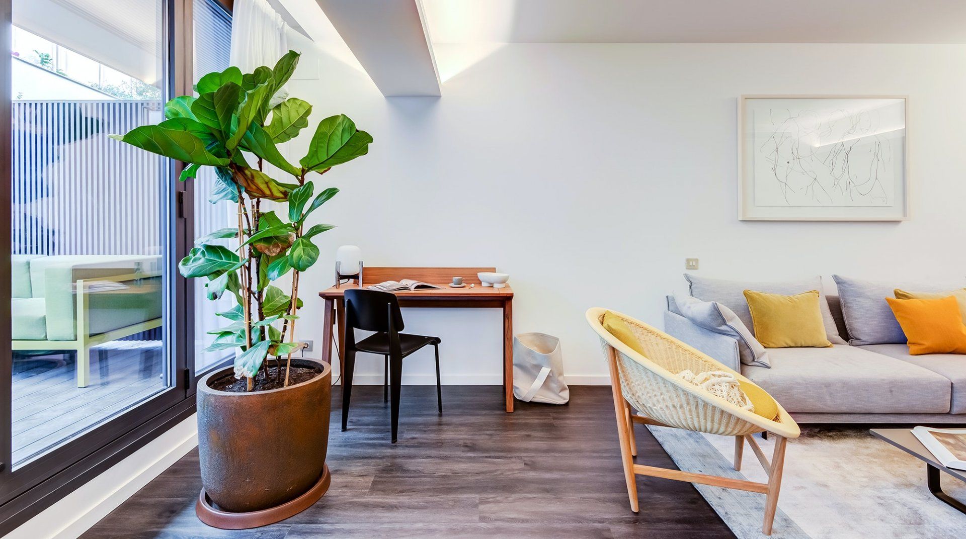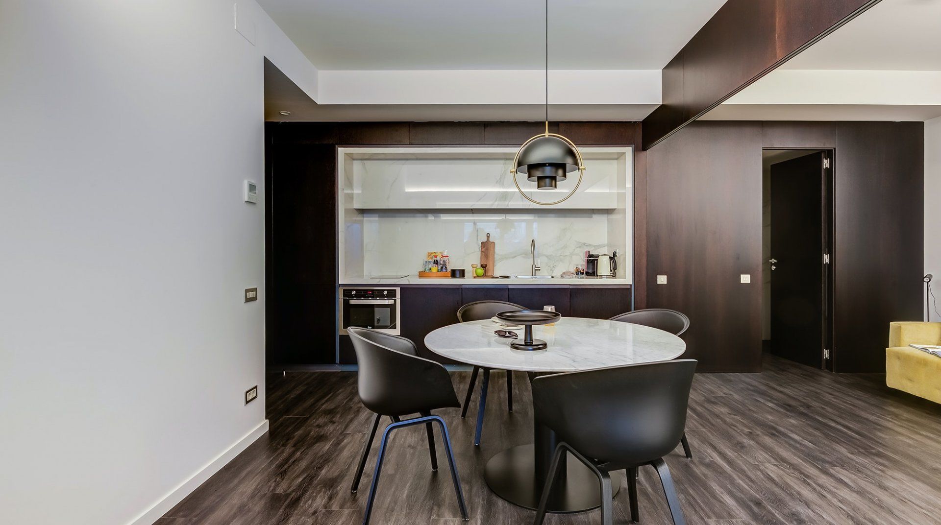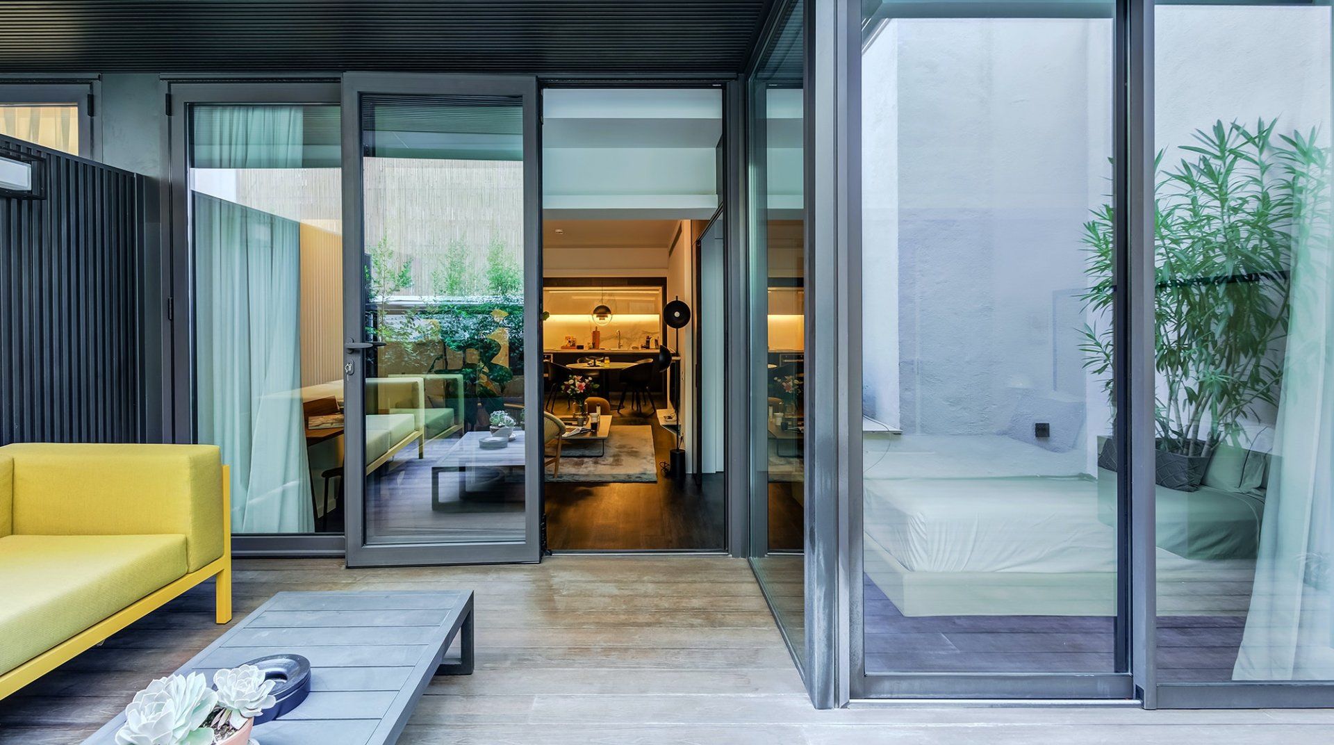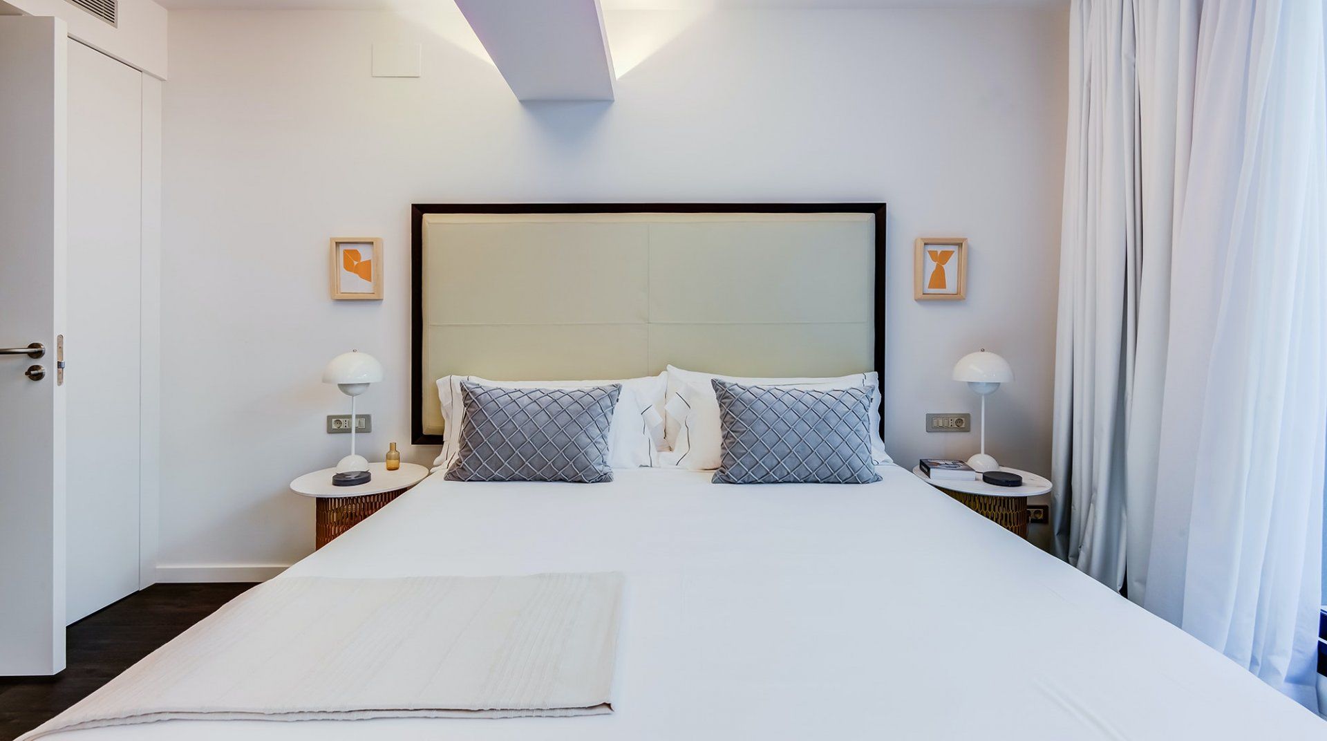 Even though Taffy Terrace has a slightly narrower living room area, it's still an elegant, comfortable home. The star of the show is definitely the terrace with a cosy sofa, which, thanks to the panoramic windows, acts as an extension of the communal areas. The master bedroom especially has spectacular natural light thanks to a whole wall being replaced by the same windows, giving it a beachside feel. You'll be staying in a near-perfect location – right in the middle of Passeig de Gràcia, but tucked away on a quiet side street.