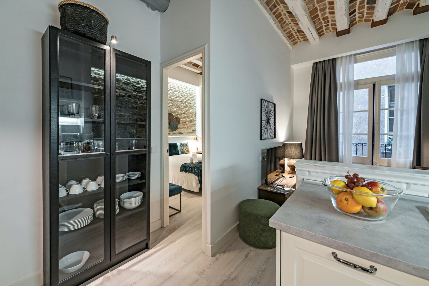 While in other cities, this excellent position might mean a trade-off with the quality of the home, that's certainly not the case here. Retaining the high wooden-beamed ceilings and sections of exposed stonework from the original building, the recently renovated interior is serenely stylish, with chic furnishings, subtle lighting and a minimalist kitchen to boot.