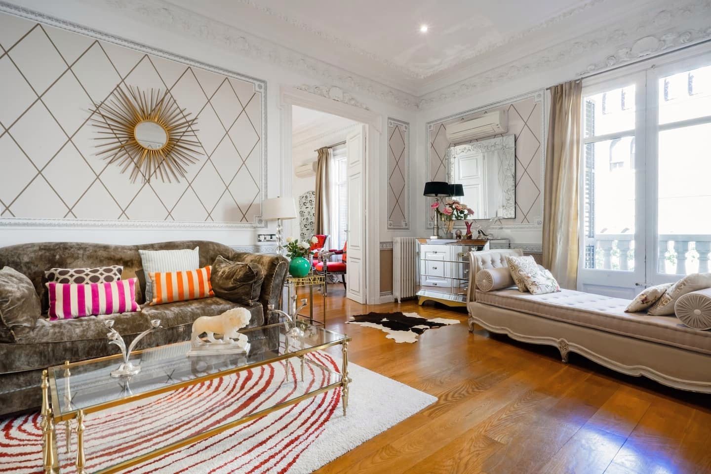 There are homes that impress us with minimalist design – and then there's the Feather Chandelier. Created by one of our favourite hosts and interior designer in Barcelona, this home goes beyond the ordinary to make a statement in each and every room. The loud and proud baroque style might not be for everyone, but we thought the silver wallpaper in the master bathroom and faux Roman sculptures were an absolute delight.