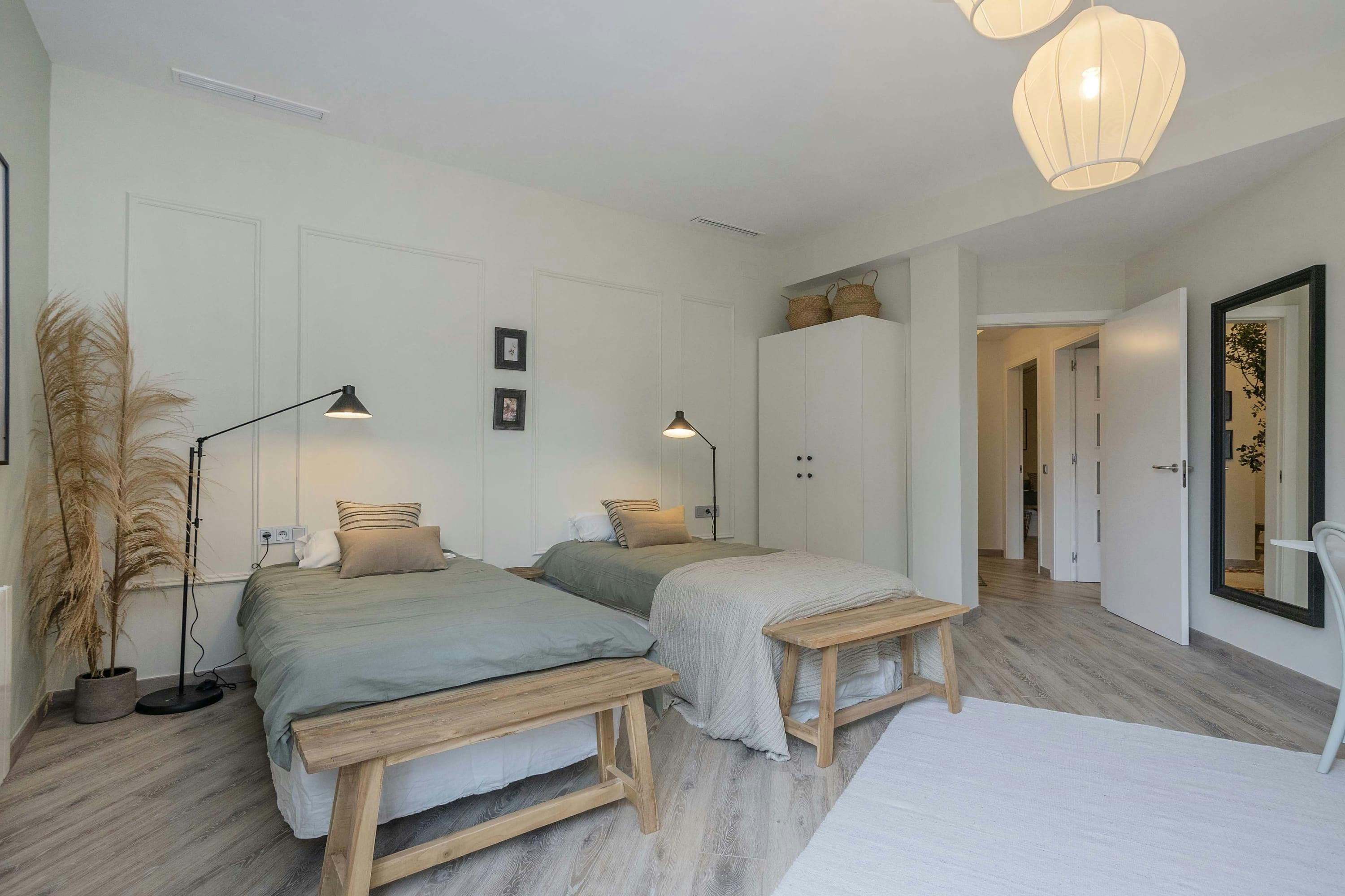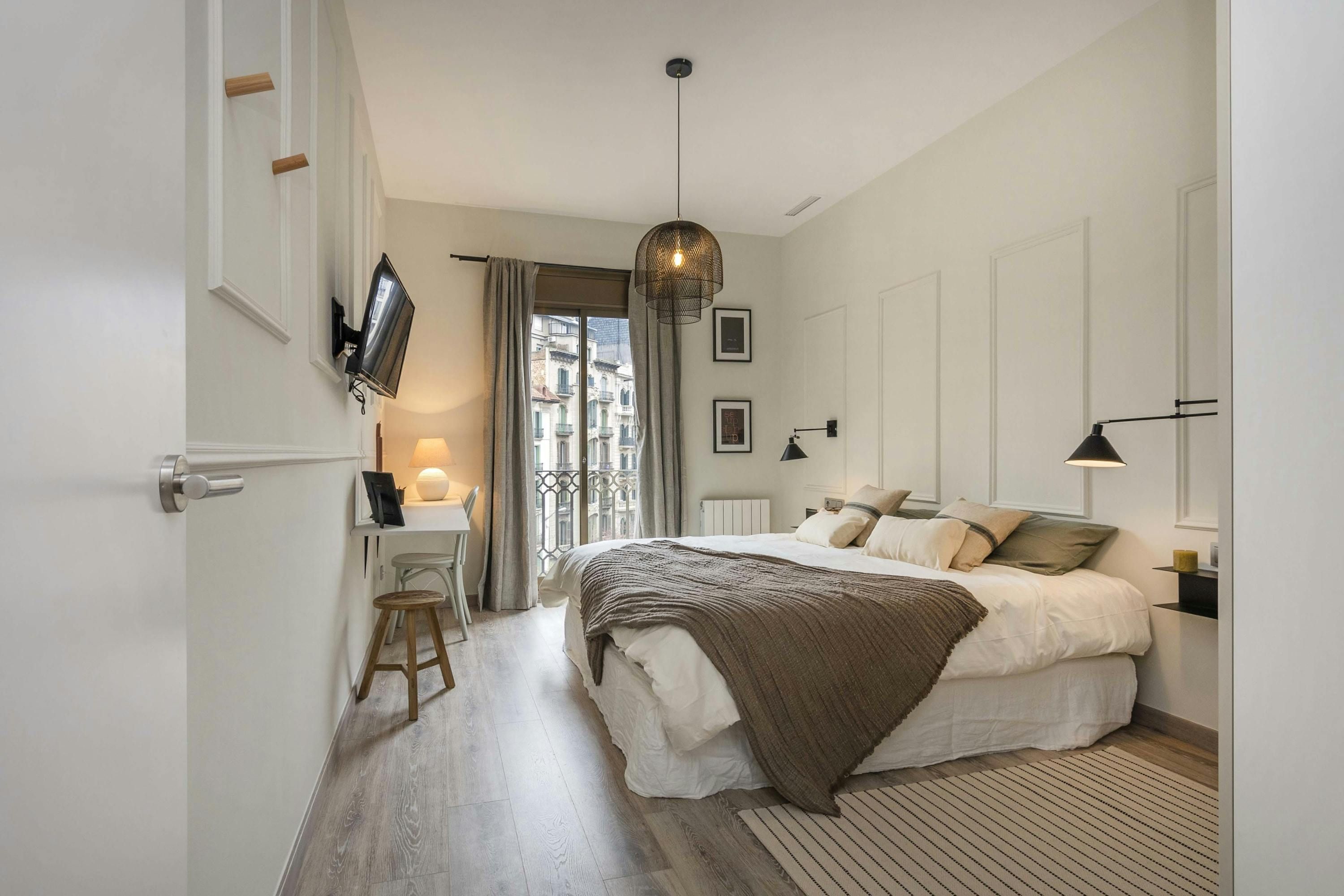 With all the city's sightseeing hotspots just an amble away, the location of this stylish Eixample apartment is bang-on. Perfect for a large group of friends or a multi-generational family stay, the bedroom proportions are impressive. If ten of you share, the living space and dining table could feel like a squeeze. But with buzzy tapas bars and restaurants just moments from your door, we doubt you'll be eating in much anyway. In town for work? The desks dotted about the home will come in handy. As will Passeig de Gràcia Metro to blaze a trail across the city for meetings – it's just three minutes from your door.