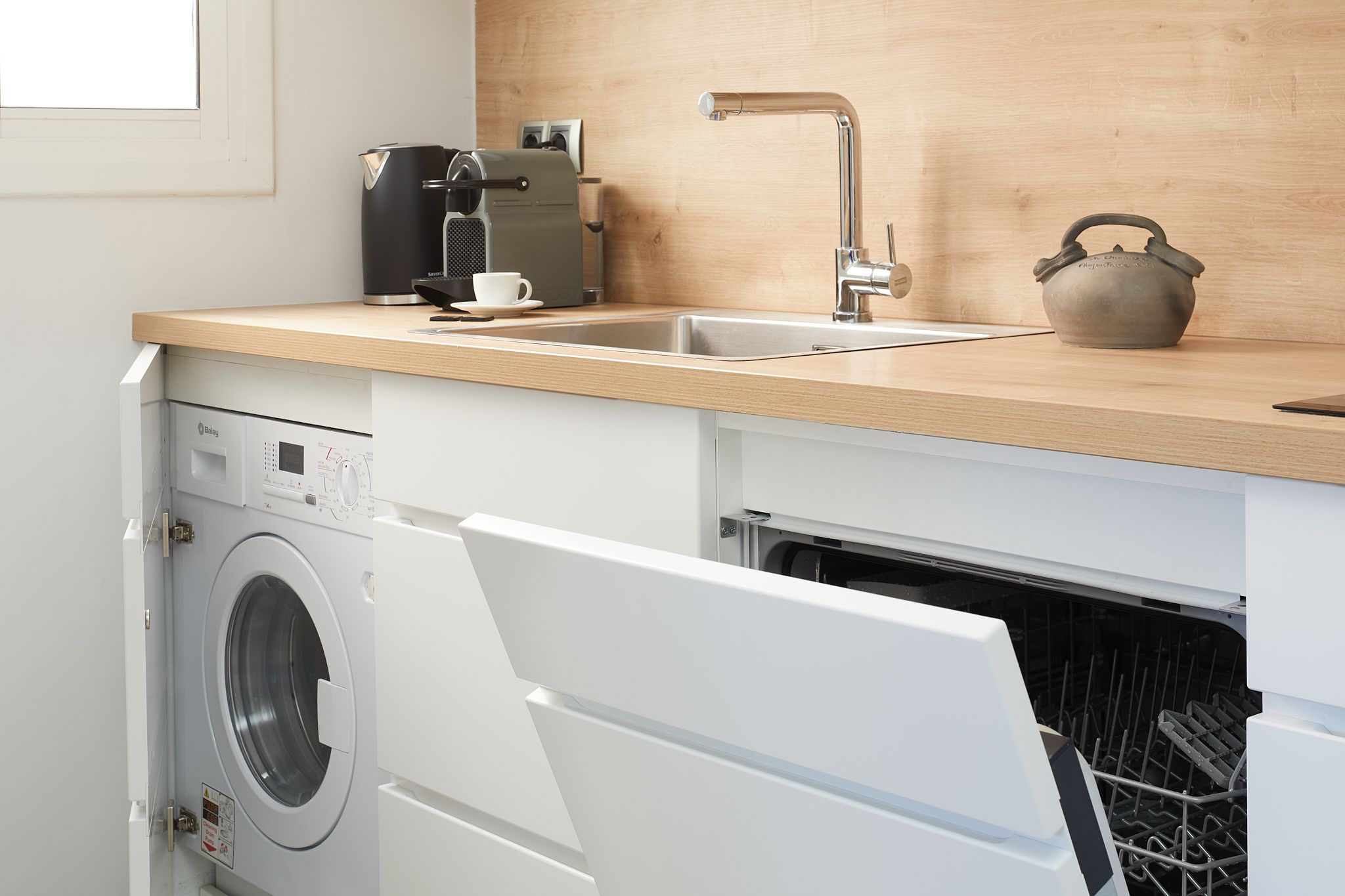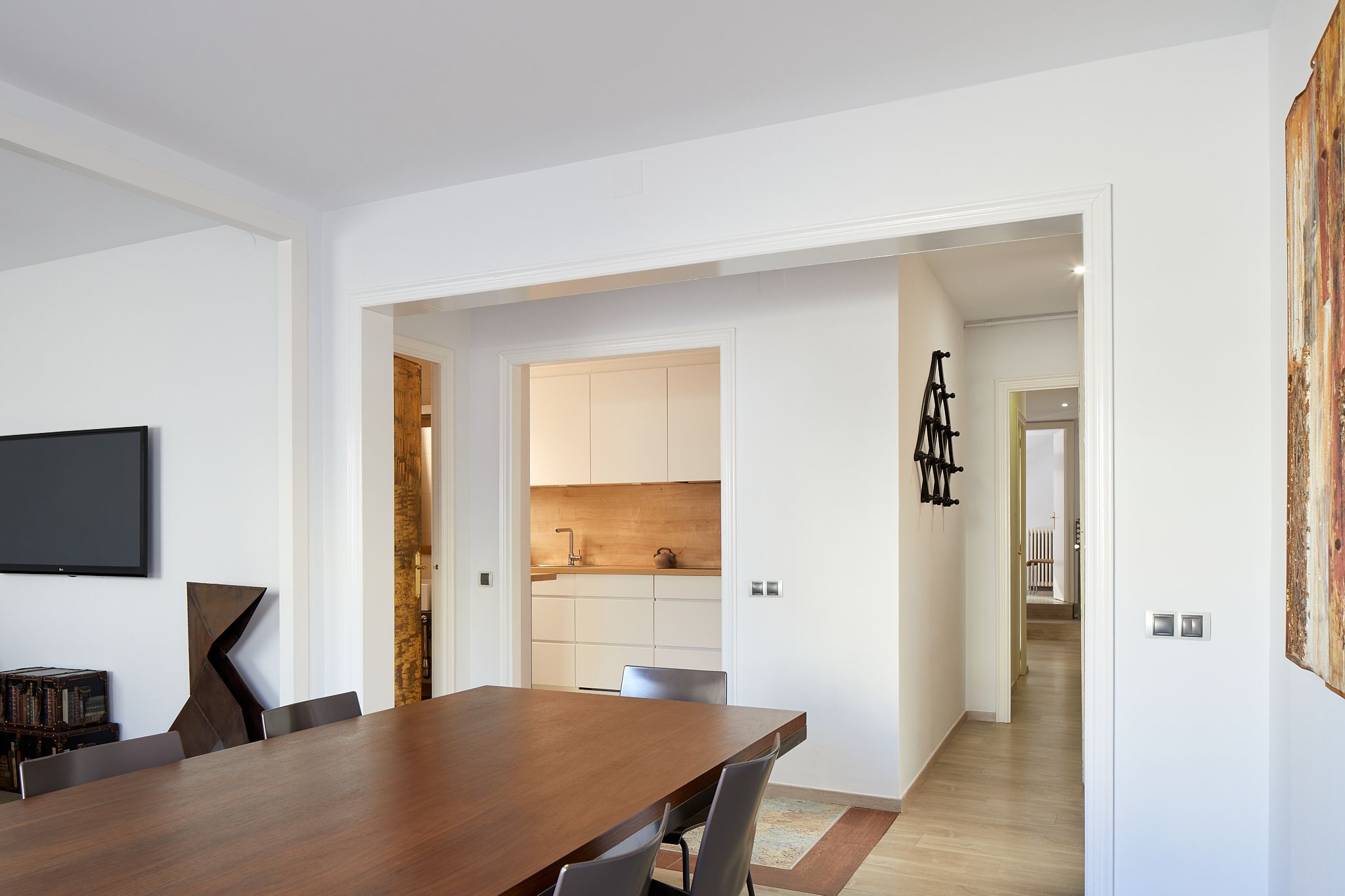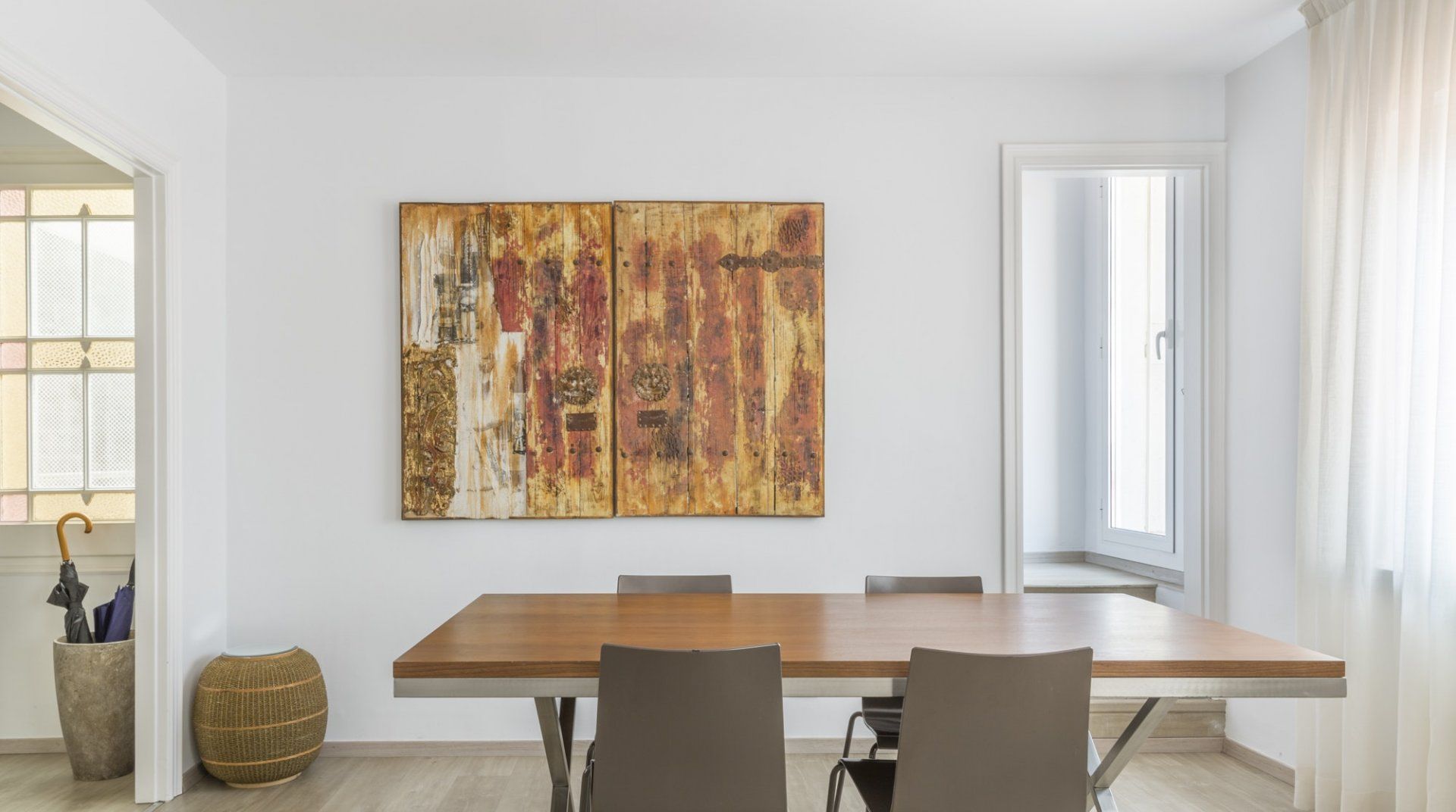 When home is only a three-minute walk from Casa Milà, you can be quite sure that you’re living in the heart of Barcelona’s buzzing Eixample district. But how about if you can see directly across to its ornate rooftops from your own private terrace? The exclusive location of this apartment is only made better by its magnificent design and decor. Upon arrival at the majestic wooden door, you can tell that this historical building is full of charm. With a vintage wooden lift taking you up to the attic – better known as a penthouse in the 21st century – we love its old-fashioned character. Inside, the wooden theme continues with a striking piece of art in the lounge, but this time surrounded by modern interiors. The furnishings are minimalist, with neutral tones and white walls bringing a fresh vibe. However, this is all to make way for the apartment’s most exciting features – two terracotta terraces for alfresco drinking, dining, and admiring jaw-dropping views. If you do manage to make it back down to street level, Diagonal metro is a two-minute walk. But when you can see Gaudí’s masterpieces from home, you might want to stay put.