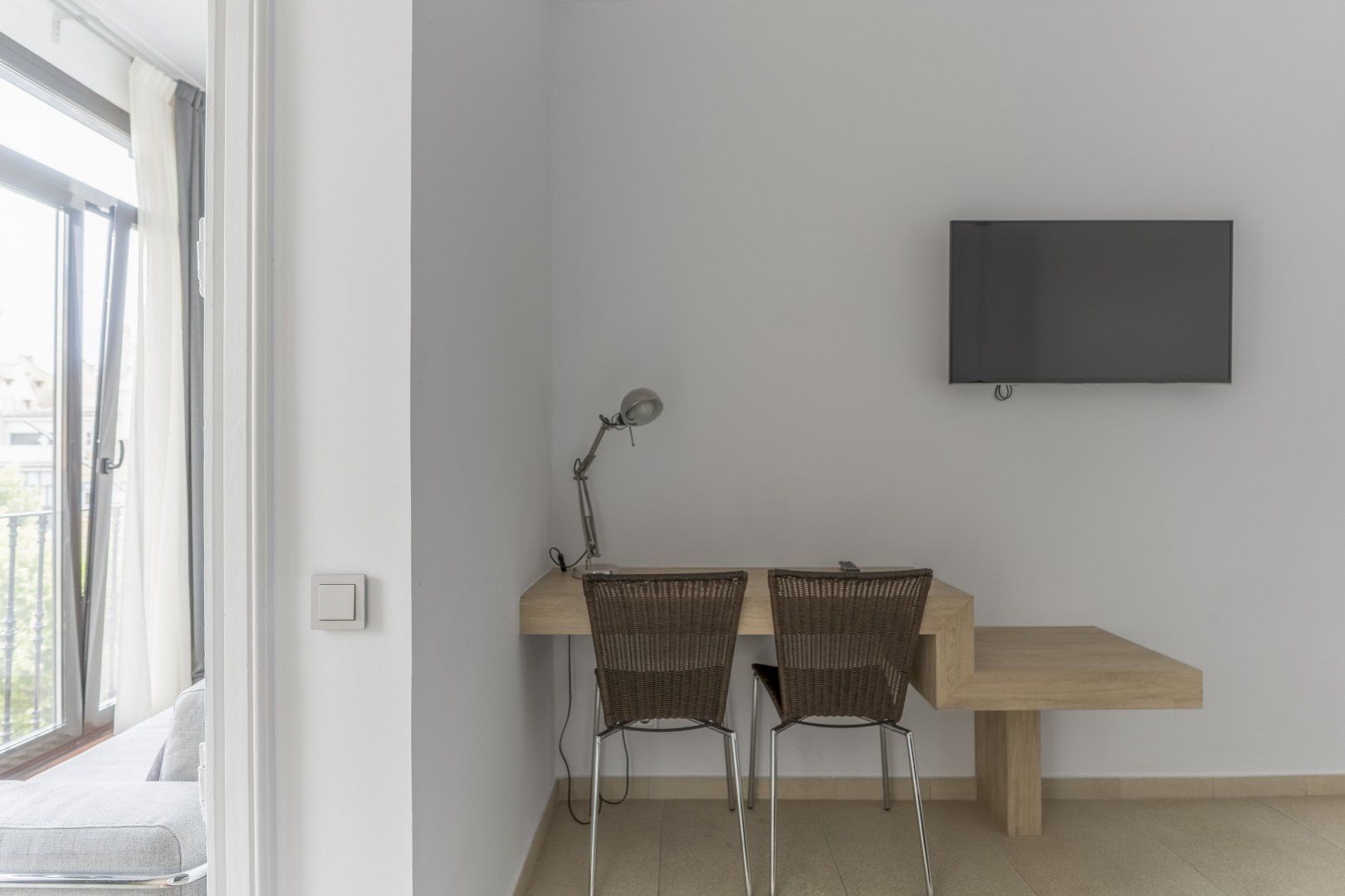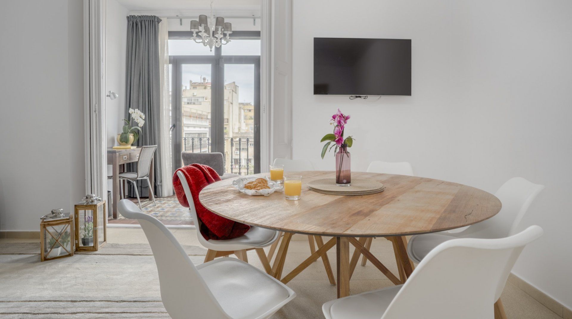 With floor-to-ceiling windows that offer views of Barcelona's most rebellious architecture, the best thing this home offers is sightseeing from the comfort of your sofa. Both the furniture and art are a pleasant unobtrusive mix of the old and new, showing that the host knows how to fill a space with meaningful pieces without making it look cluttered. But we have to admit – although it's well-designed, the layout of this home is a bit peculiar, with the kitchen fashioned inside a corridor and a tempered glass bathroom separating the second and third bedroom.