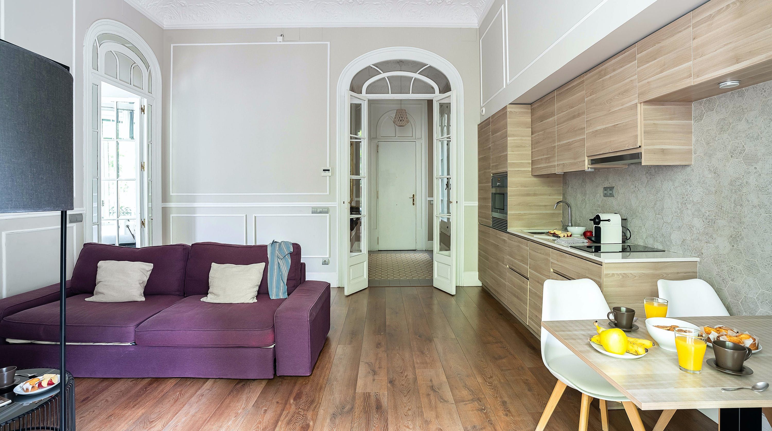 Located in the vibrant neighbourhood of Eixample, this stylish apartment provides an oasis of calm in the heart of the city.