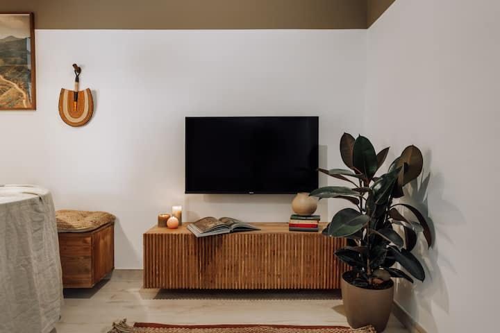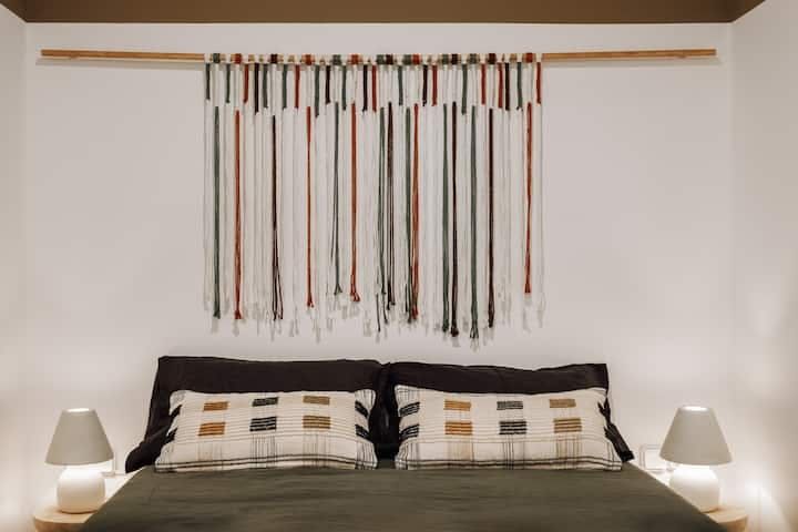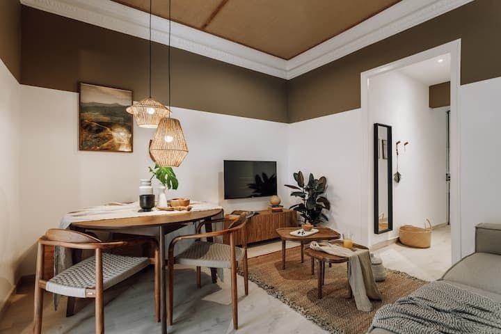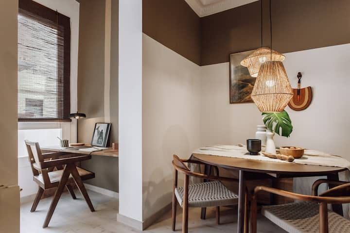 We love the lush, jungle-inspired aesthetic of this place, which deftly combines the traditional architectural elements with modern décor and unique pieces scattered throughout. Settle in for a cosy evening of Netflix and Spanish wine or gather around the dining table to enjoy a delicious supper you’ll be able to put together with ease in the well-equipped kitchen.