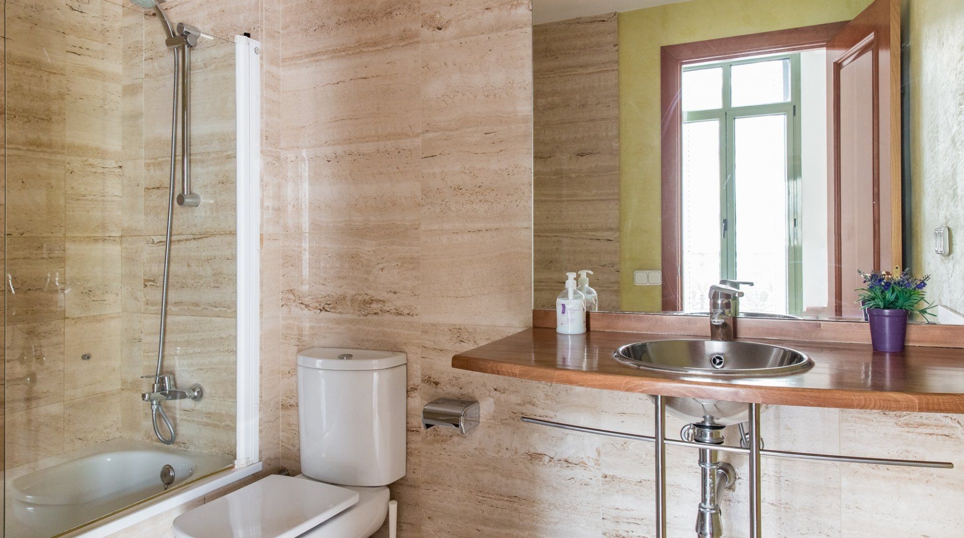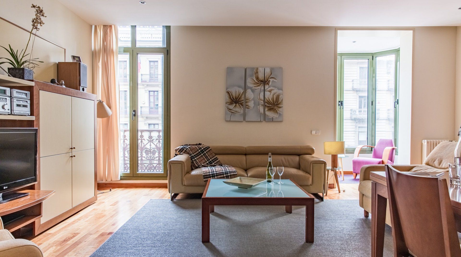 You’ll struggle to find an apartment more central than this, sitting just off the Plaça Catalunya and a three-minute mosey to the leafy Las Ramblas. Its homespun living area and inviting bedrooms make for relaxing spaces away from the hubbub. Open up the French doors to be enveloped by a warm Spanish breeze as you tuck into a tasty breakfast. Throw something together in the kitchen or pick up a bite to eat from the café around the corner. Put on your sandals, slap on your sun cream and take to Barcelona’s historic streets. You’re minutes from the modernist sights of Eixample and just under twenty from the Picasso Museum. When it’s gloriously sunny out – which is practically all year round – Barceloneta Beach is a ten-minute cab ride away.