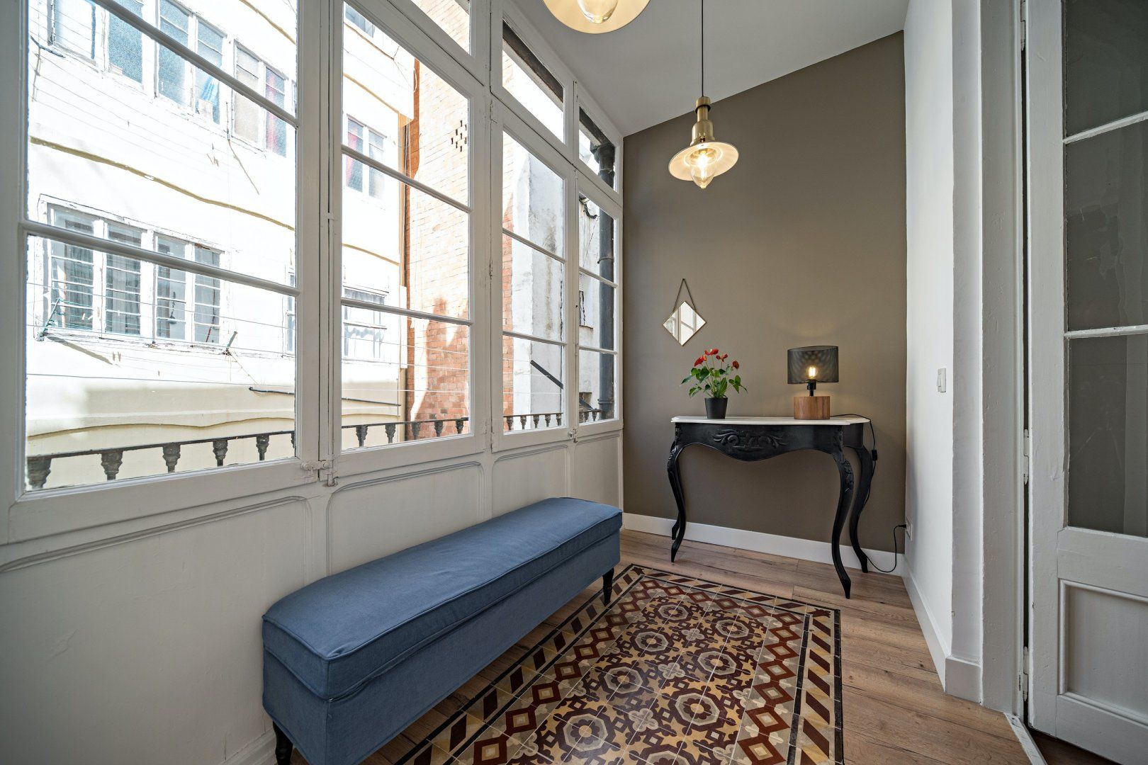 The apartment is super spacious, with room for up to eight guests to settle in and get comfortable. You'll love the traditional touches throughout the home, from the wooden ceiling beams and the patterned tiles to the huge windows with sage green shutters. The kitchen is equipped with everything you need to cook up a delicious feast using fresh local ingredients – don't forget a bottle of Rioja to accompany your meal. And there's no better place to relax at the end of a busy day than the large private balcony – get comfortable and watch the world go by below.