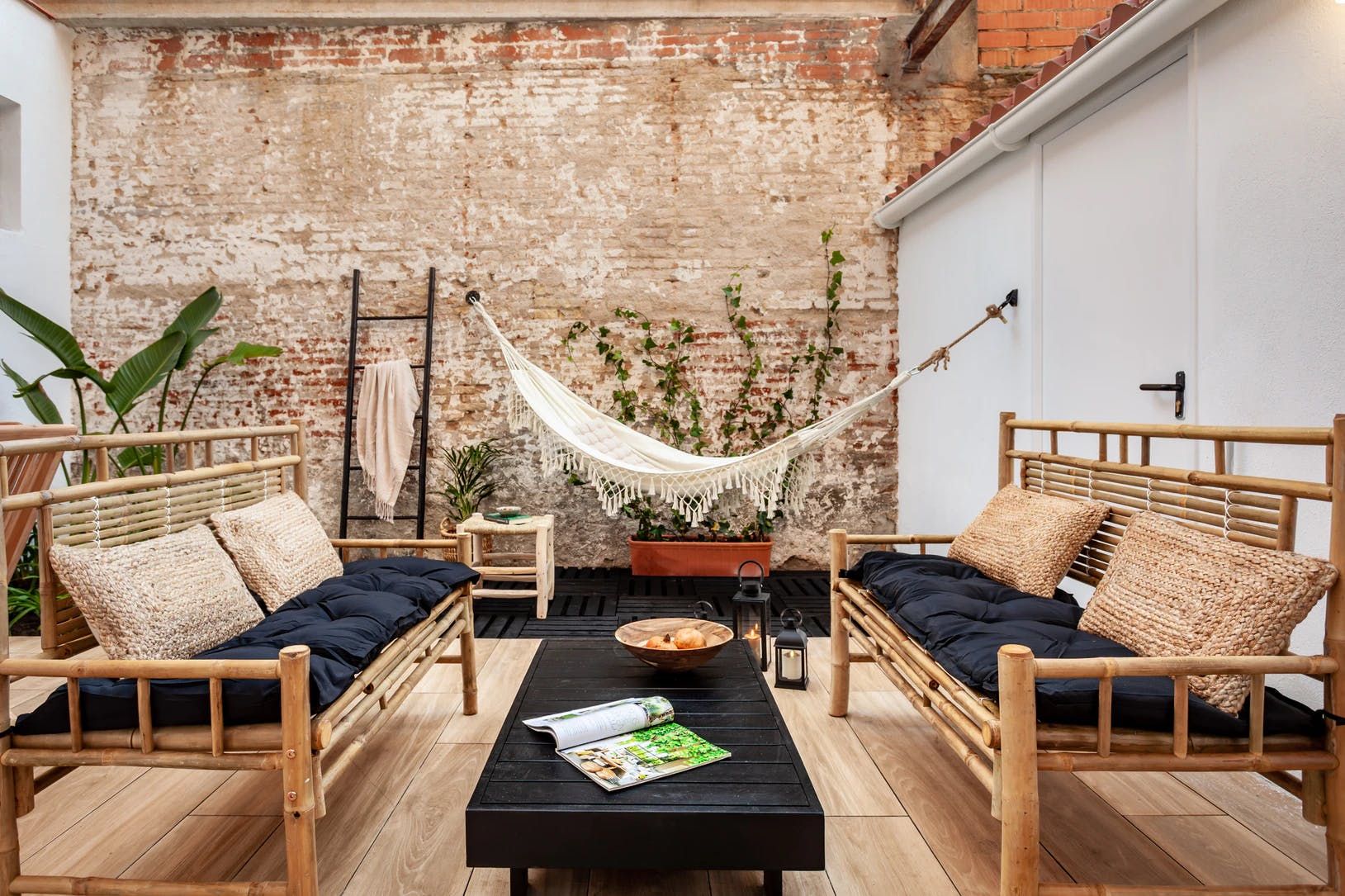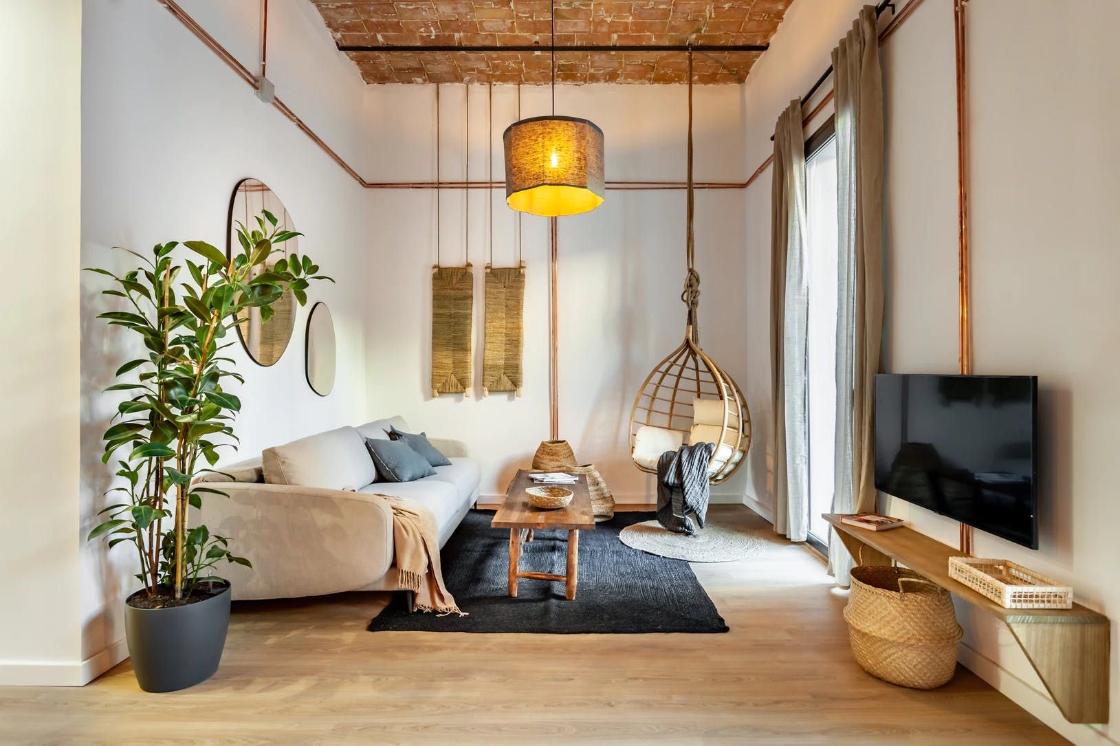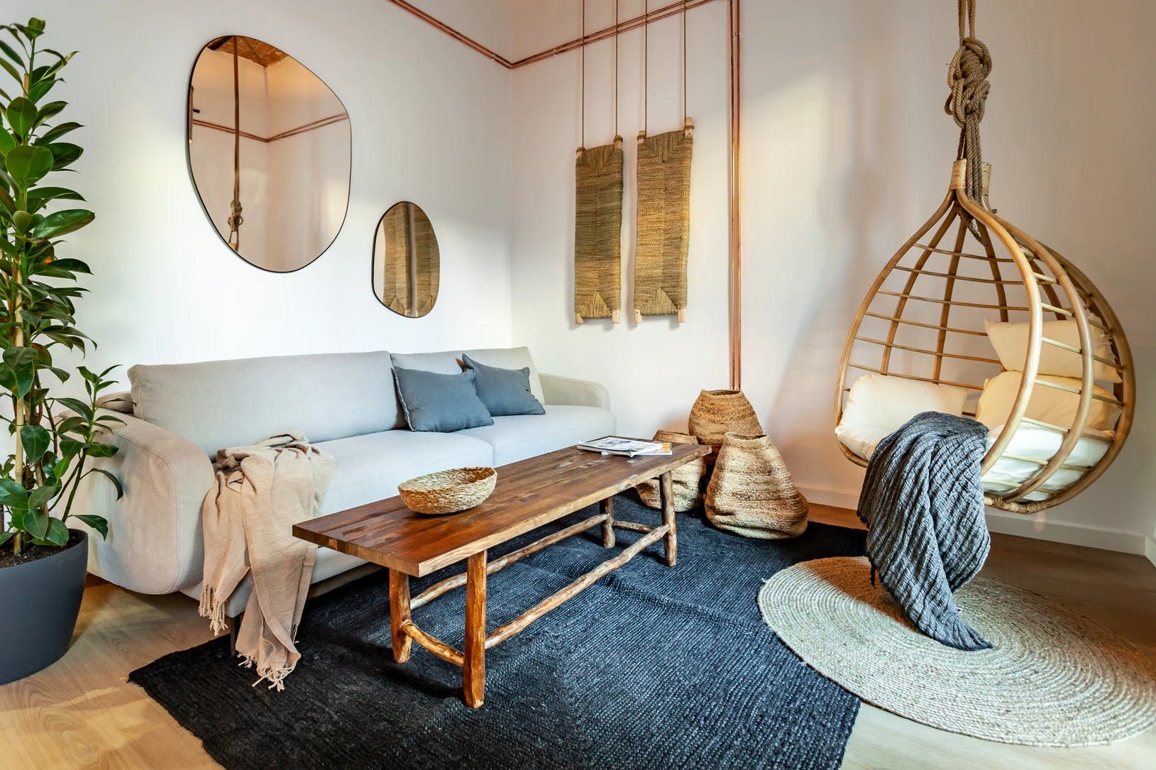 Located in Barcelona’s trendy Gràcia neighbourhood, this stylish beach-vibe home is an ideal retreat for those looking for total relaxation while staying in the heart of the city. With a sprawling 322 square foot private terrace to enjoy, there’s no end to the good times in store. Soak up the afternoon sun on the hammock, gather together for jugs of sangria on the outdoor sofas and sit down to starlit meals at the table. When you need to retreat from the Spanish heat, head inside to the boho-chic living room where a hanging chair waits to rock you into total serenity while the record player serenades your luxurious lounging. If business calls, there’s an office space ready to help you get to work, while the two beautiful bedrooms beckon a dreamy night’s sleep in their comfortable beds. You could spend all day inside your cool pad, but we suggest you go out and explore your surroundings too. You’re just a twenty-minute walk from both Casa Milà and the Sagrada Família and Gràcia’s 19th-century boulevards are teeming with indie boutiques, galleries, cool Catalan bistros and wine bars to sample at your leisure.