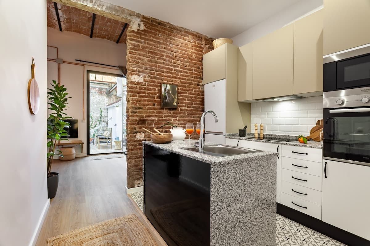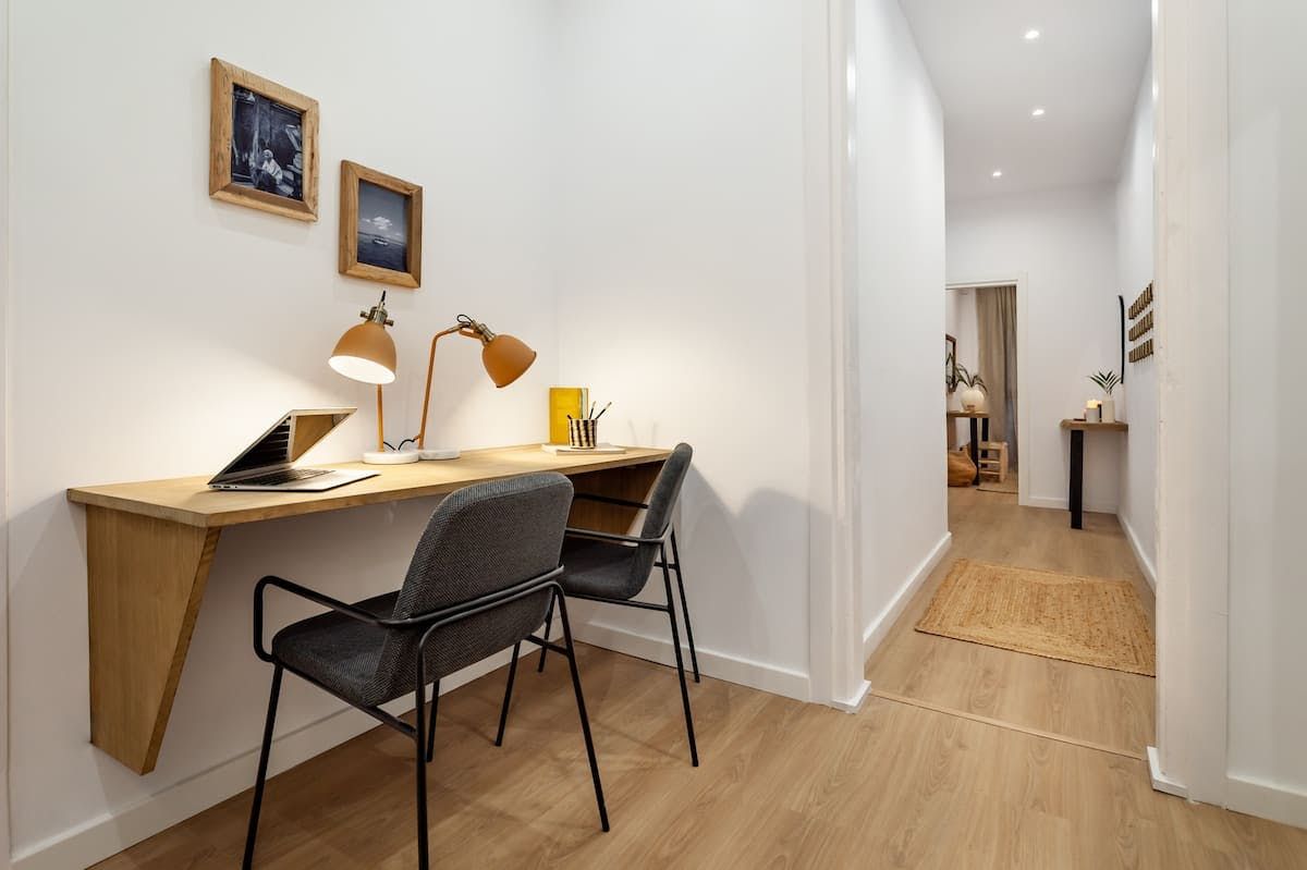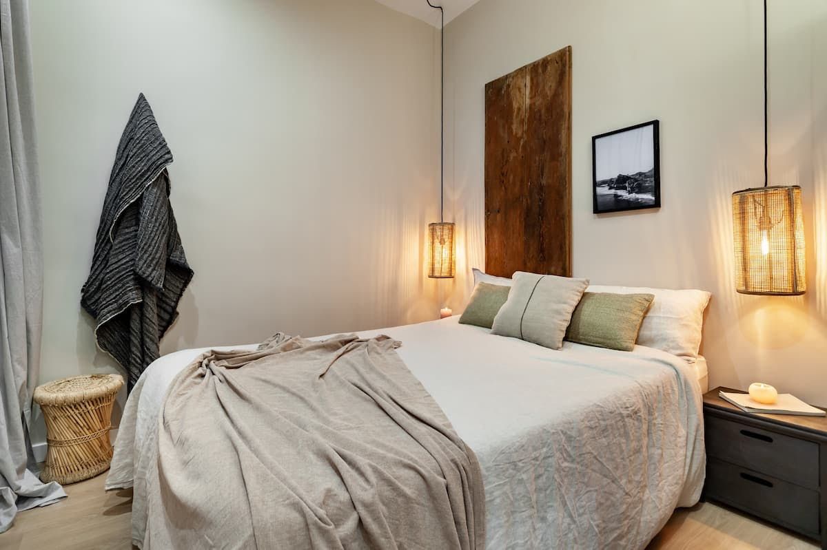 Located in Barcelona’s trendy Gràcia neighbourhood, this stylish beach-vibe home is an ideal retreat for those looking for total relaxation while staying in the heart of the city. With a sprawling 322 square foot private terrace to enjoy, there’s no end to the good times in store. Soak up the afternoon sun on the hammock, gather together for jugs of sangria on the outdoor sofas and sit down to starlit meals at the table. When you need to retreat from the Spanish heat, head inside to the boho-chic living room where a hanging chair waits to rock you into total serenity while the record player serenades your luxurious lounging. If business calls, there’s an office space ready to help you get to work, while the two beautiful bedrooms beckon a dreamy night’s sleep in their comfortable beds. You could spend all day inside your cool pad, but we suggest you go out and explore your surroundings too. You’re just a twenty-minute walk from both Casa Milà and the Sagrada Família and Gràcia’s 19th-century boulevards are teeming with indie boutiques, galleries, cool Catalan bistros and wine bars to sample at your leisure.
