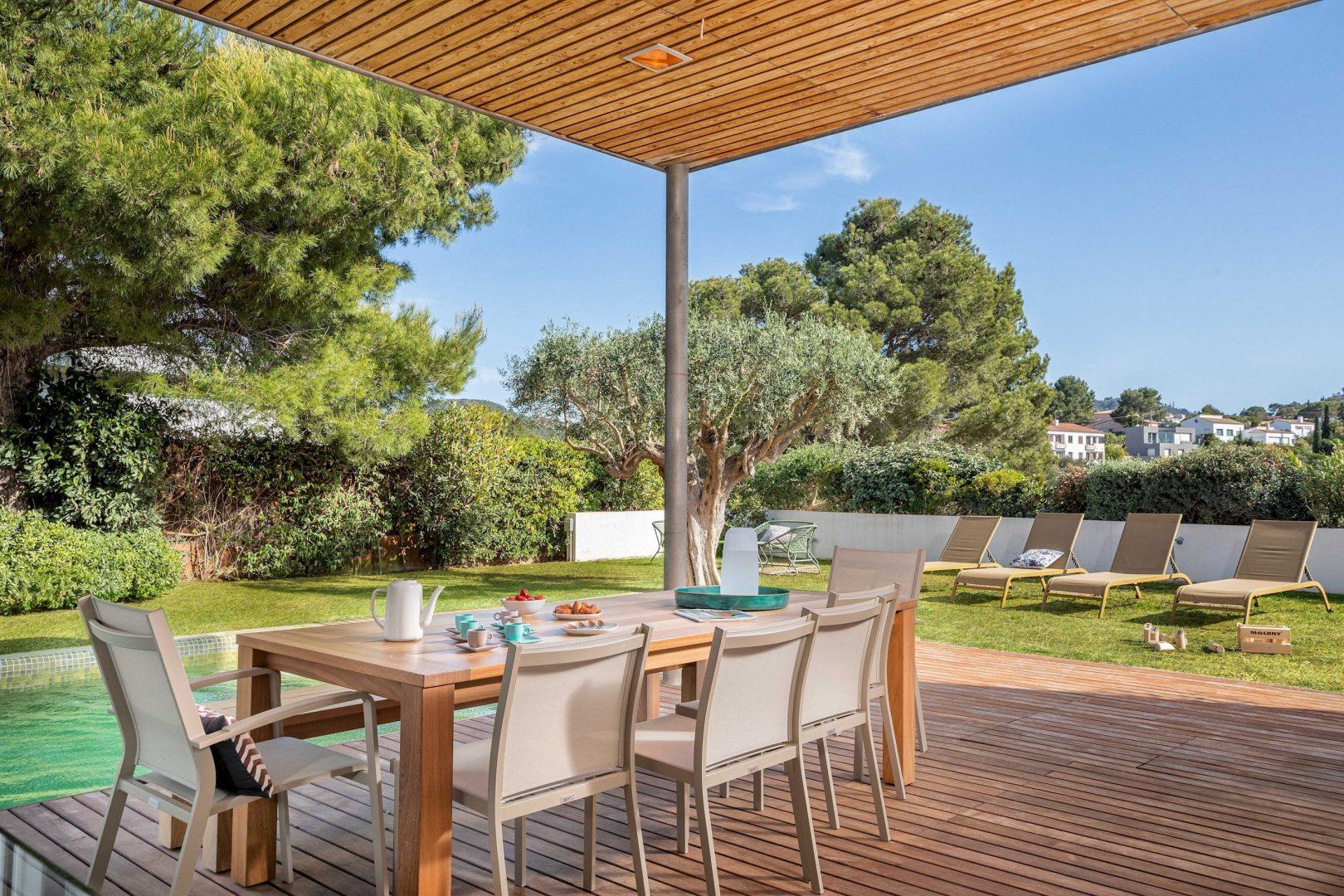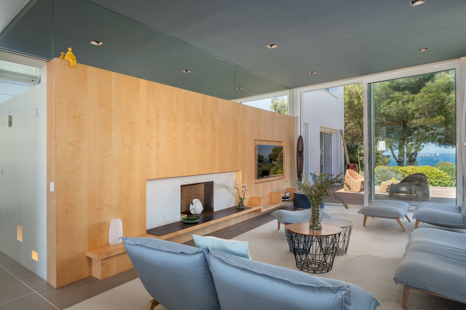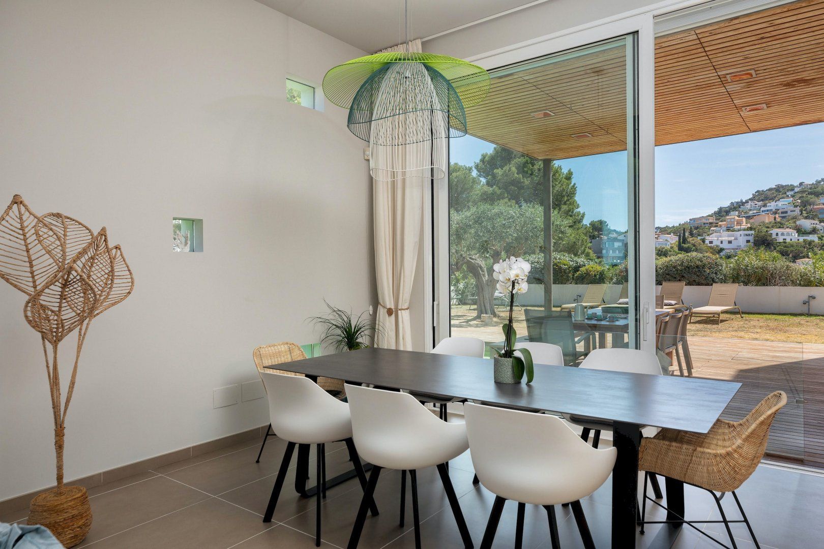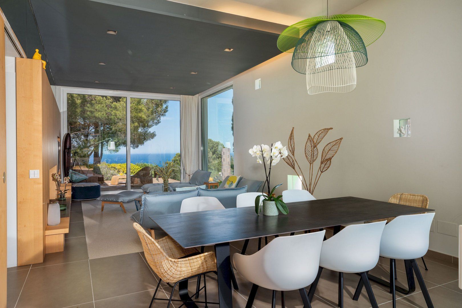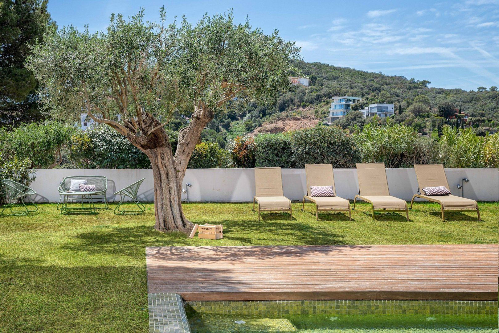 Stepping outside, a sparkling pool awaits you in the outdoor area. Surrounded by a beautifully landscaped garden, the pool offers a refreshing oasis for you and your guests to cool off on warm summer days. Additionally, you'll discover an amazing plancha grill, with its own lounge and dining area, perfect for savoring delicious meals while enjoying the breathtaking views of the Mediterranean Sea.