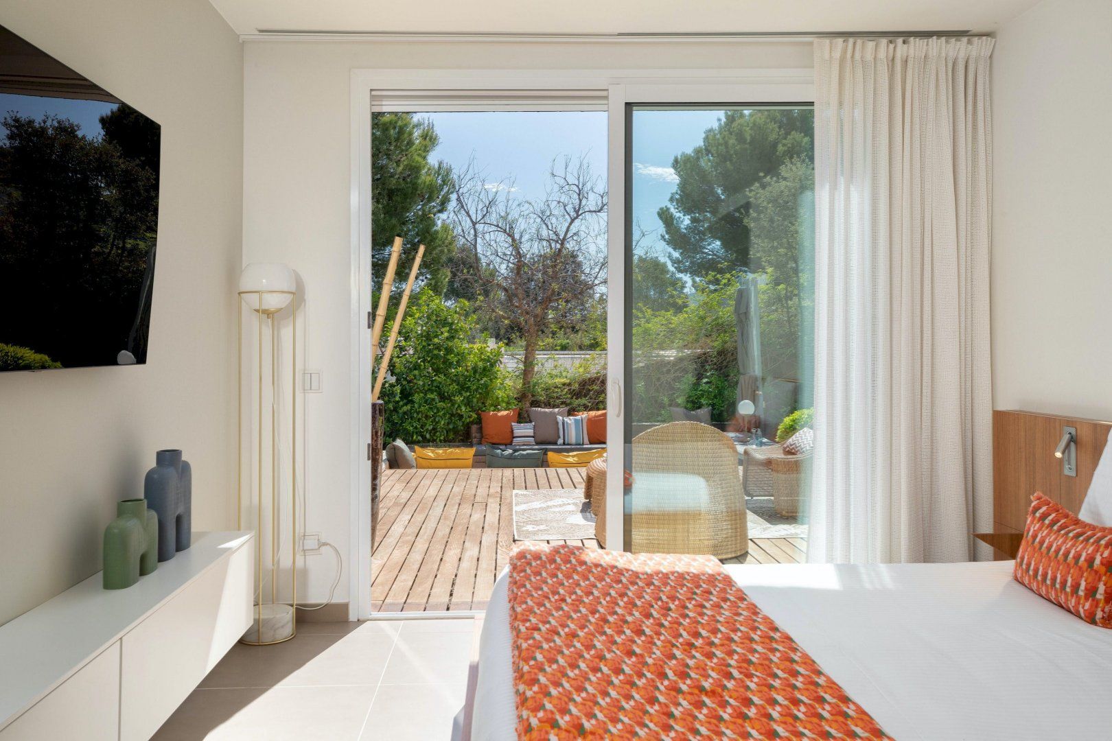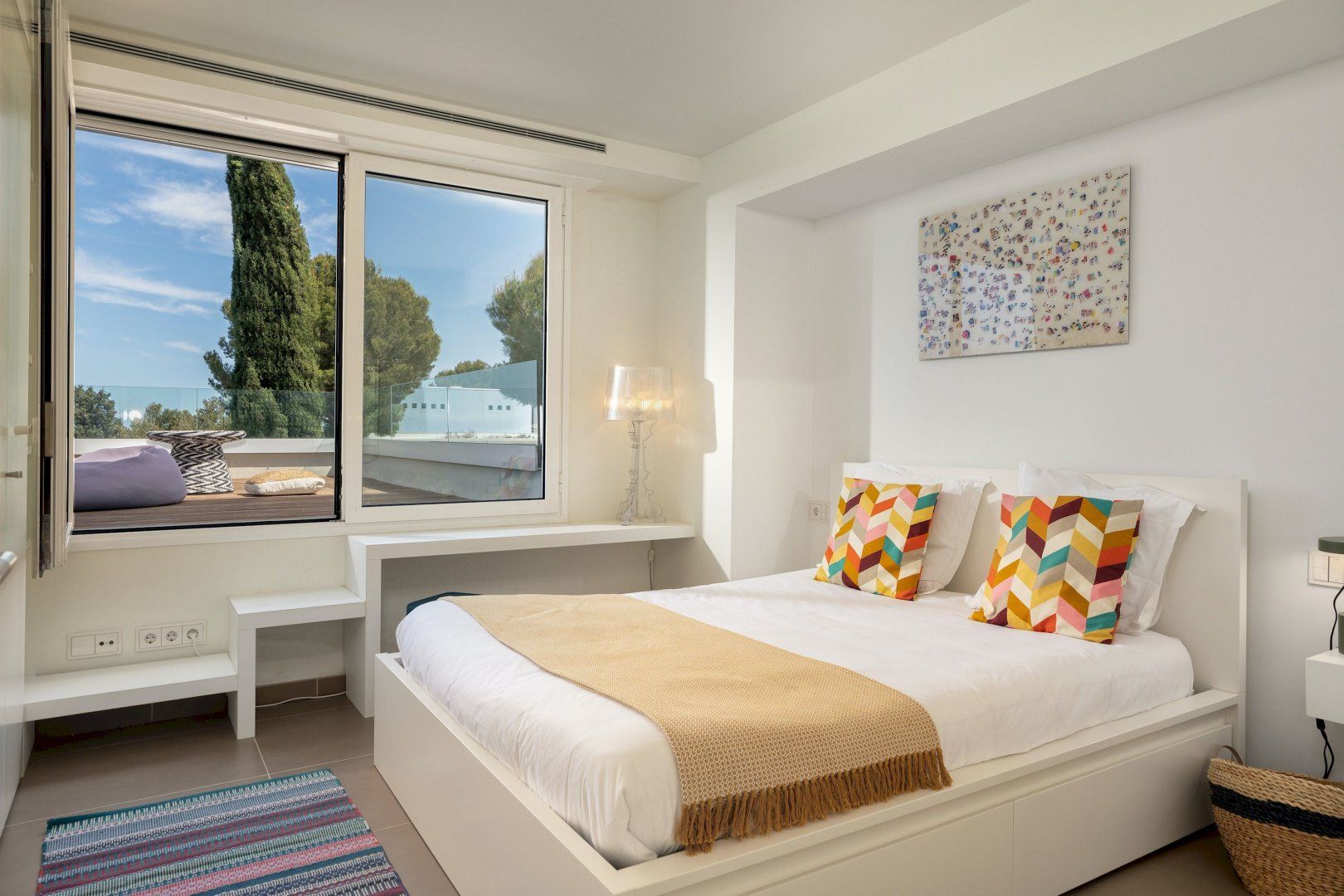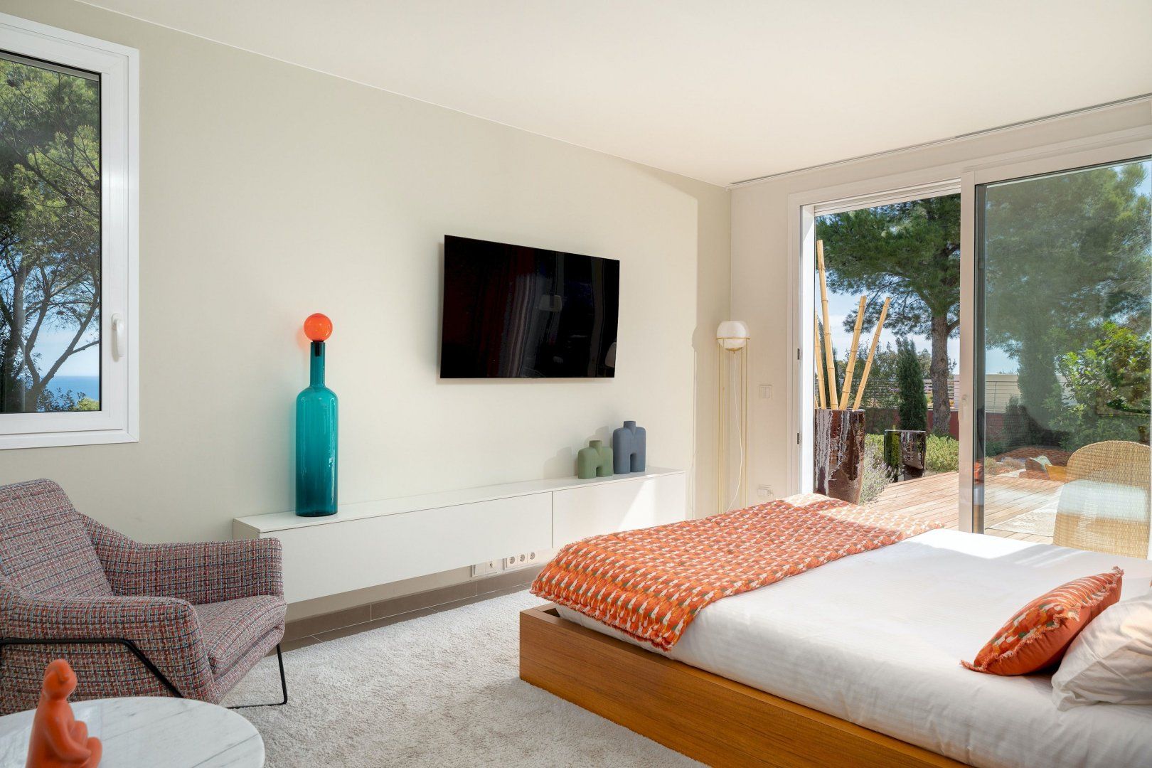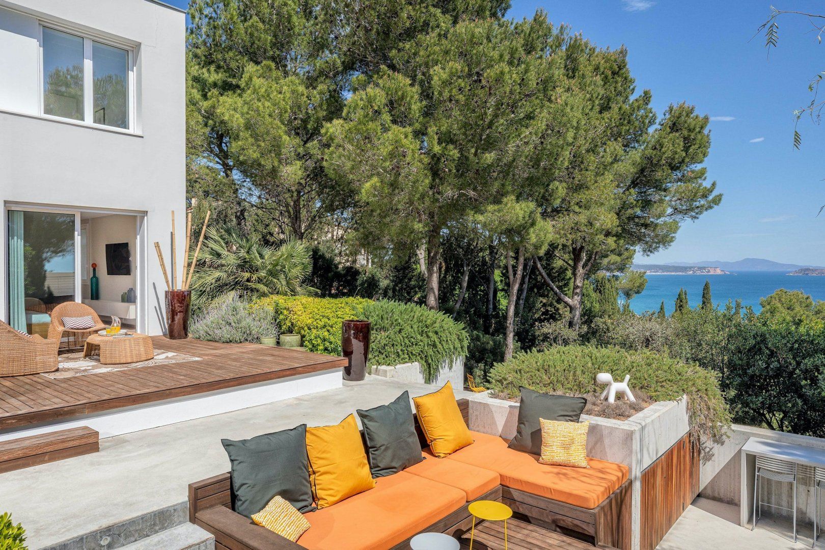 Stepping outside, a sparkling pool awaits you in the outdoor area. Surrounded by a beautifully landscaped garden, the pool offers a refreshing oasis for you and your guests to cool off on warm summer days. Additionally, you'll discover an amazing plancha grill, with its own lounge and dining area, perfect for savoring delicious meals while enjoying the breathtaking views of the Mediterranean Sea.