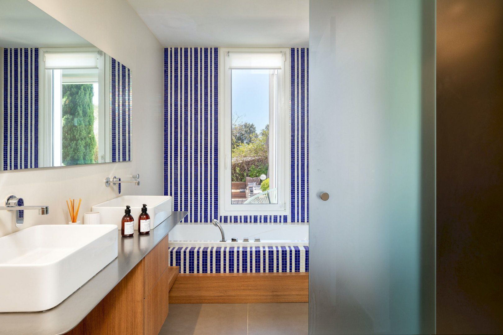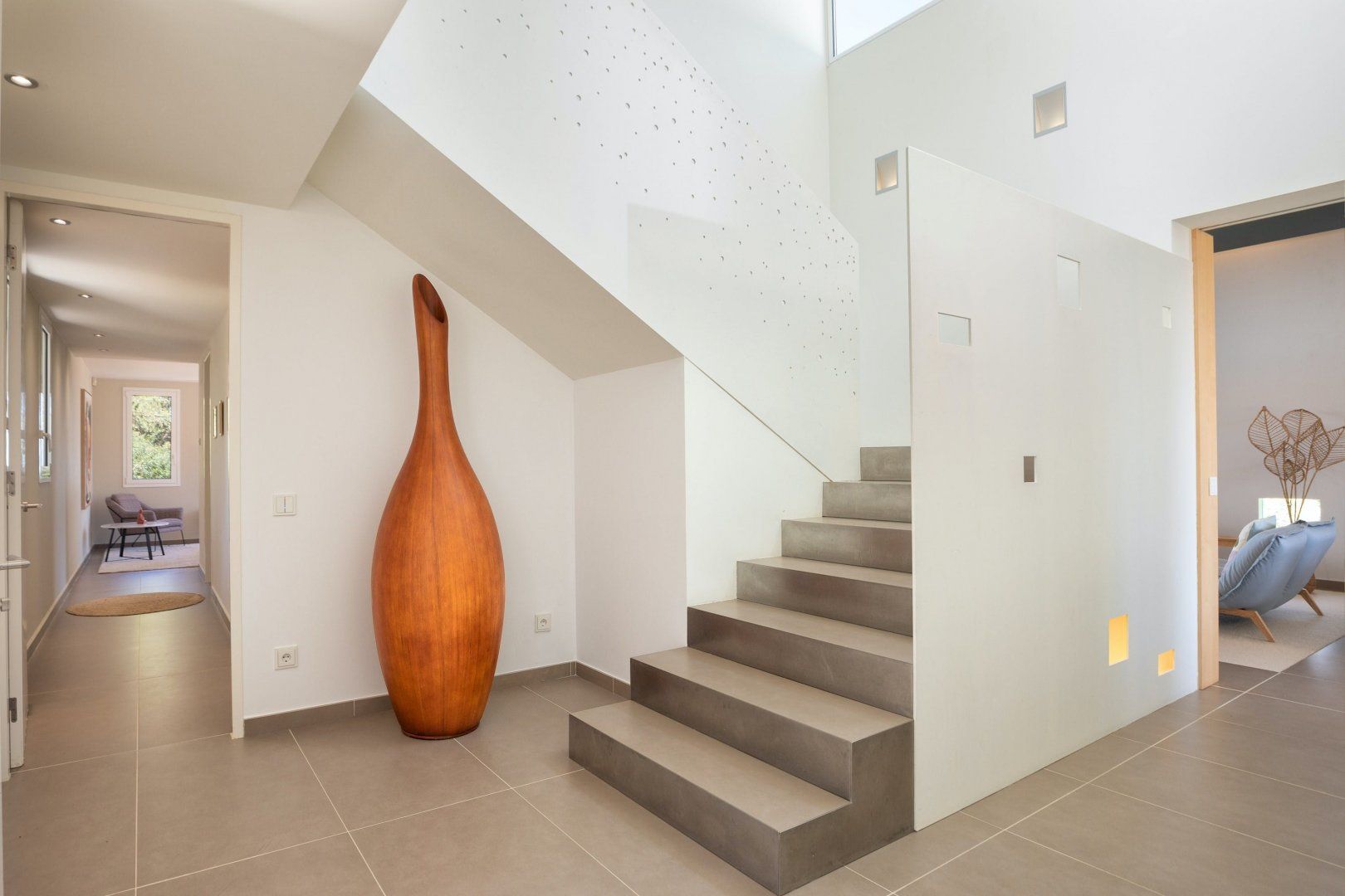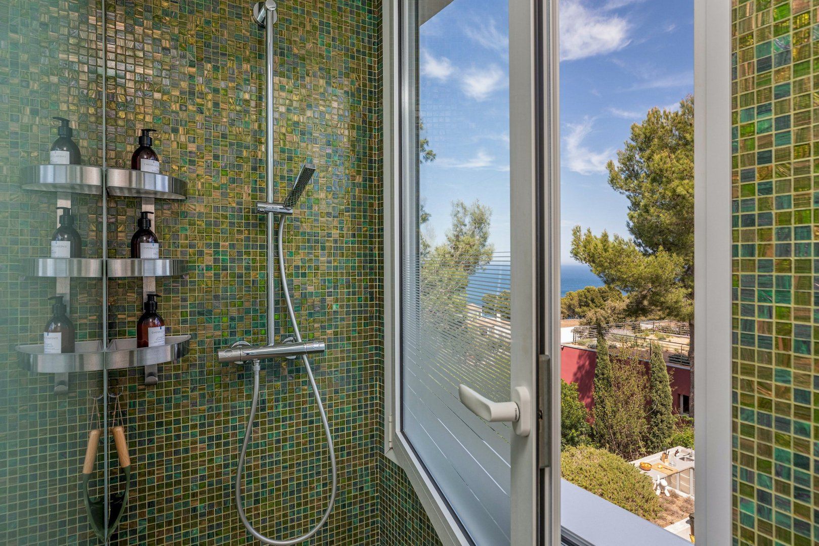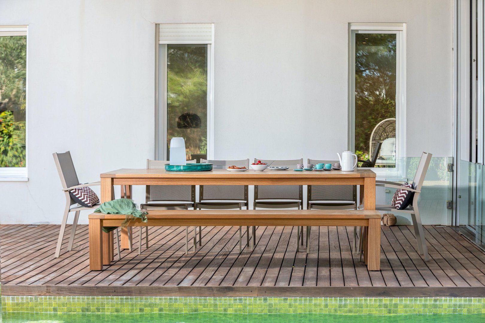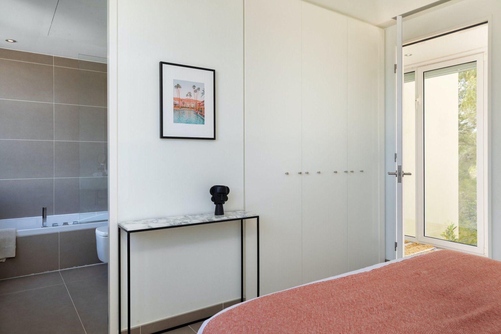 Stepping outside, a sparkling pool awaits you in the outdoor area. Surrounded by a beautifully landscaped garden, the pool offers a refreshing oasis for you and your guests to cool off on warm summer days. Additionally, you'll discover an amazing plancha grill, with its own lounge and dining area, perfect for savoring delicious meals while enjoying the breathtaking views of the Mediterranean Sea.