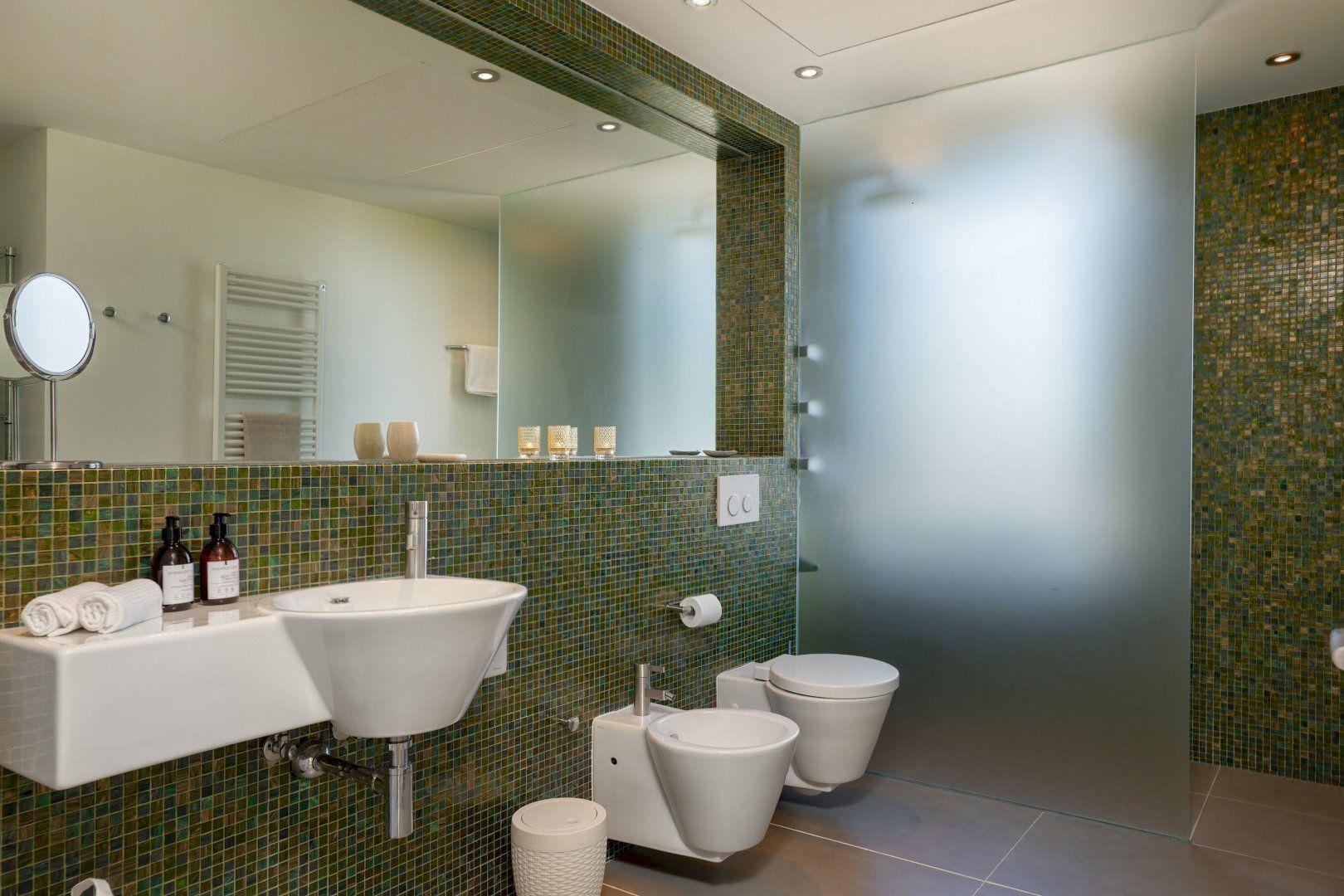 Each of the five bedrooms in this villa exudes sophistication and comfort. The master suite is a true haven, offering a spacious retreat with its own private en-suite bathroom and a walk-in wardrobe. The remaining four bedrooms are equally inviting, with carefully curated furnishings, abundant natural light, and ample storage space ensuring a luxurious experience for all.