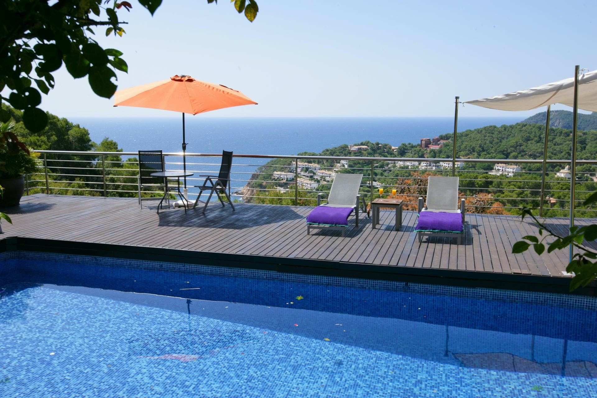 This eye-catching villa has bagged a great spot on a stretch of coastline designated an area of outstanding natural beauty, overlooking the Mediterranean Sea. Cleverly designed over three floors to merge into the hillside, the home boasts sea views from inside and out. Lazy days can be spent admiring the vistas from the private pool and terraces and when you’re ready to head out, you’ll find a sandy beach and choice of restaurants in Tamariu, just a five-minute drive away.