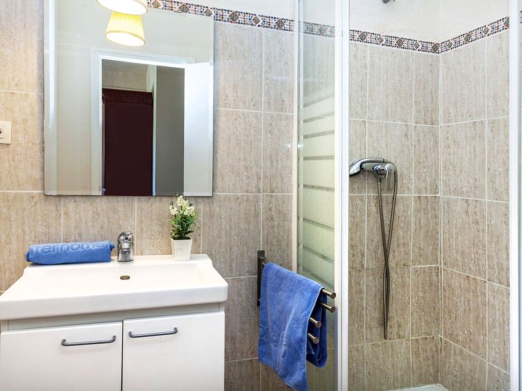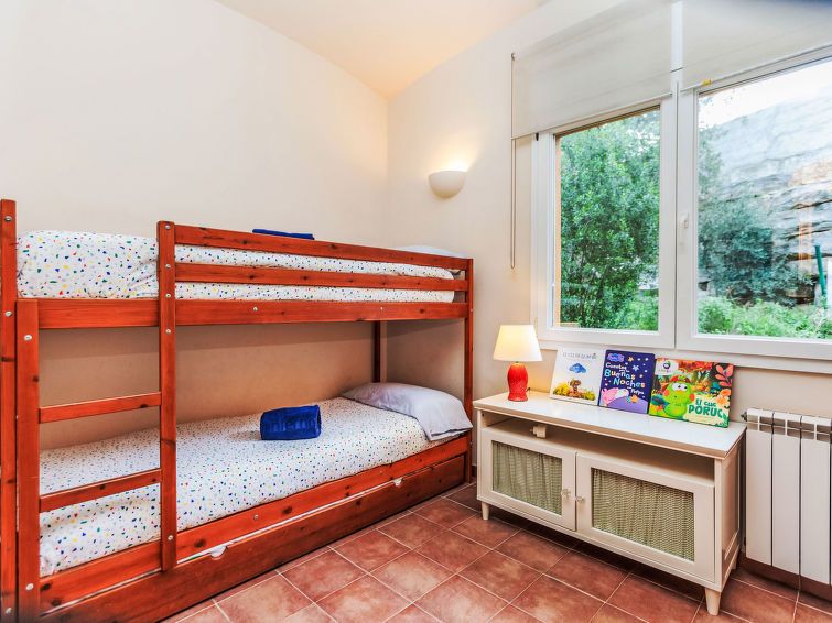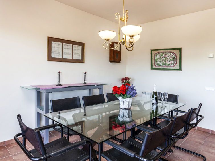 "Xarmada Cecilia", 4-room terraced house 110 m2 on 3 levels. Practical and comfortable furnishings: entrance hall with separate WC. Upper floor: living/dining room with open-hearth fireplace (only for decoration), dining table and digital TV. Exit to the terrace. Kitchen (4 hot plates, oven, dishwasher, microwave, electric coffee machine).