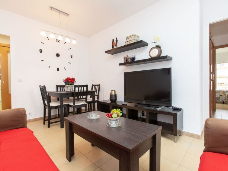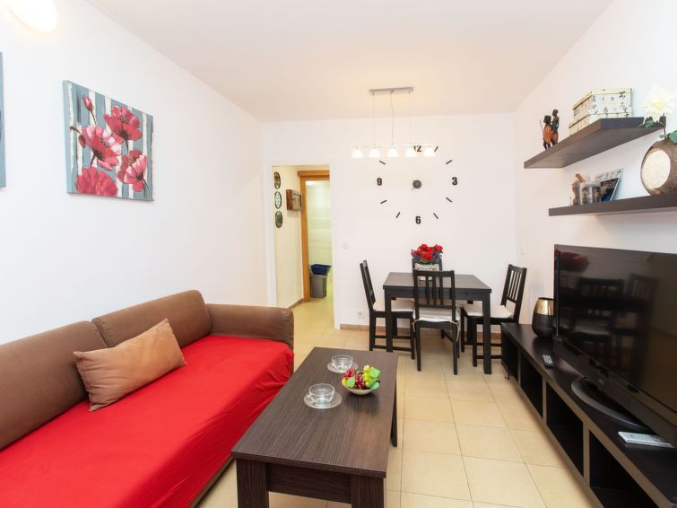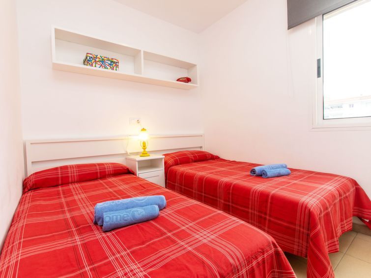 "Eivissa", 3-room apartment 45 m2 on 3rd floor. Comfortable and beautiful furnishings: living/dining room with dining table and digital TV. Exit to the terrace. 1 room with 1 french bed (135 cm, length 190 cm). Exit to the terrace. 1 room with 2 beds (90 cm, length 190 cm). Small kitchen (2 ceramic glass hob hotplates, toaster, kettle, microwave, freezer, electric coffee machine).