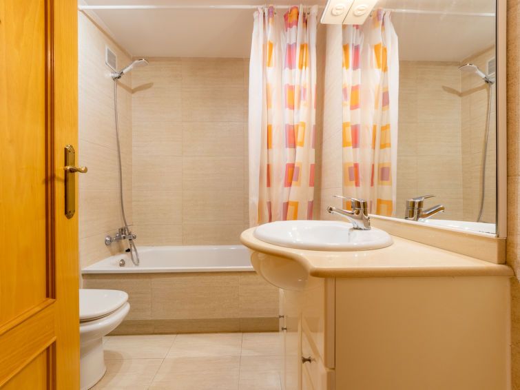 "Carner", 4-room apartment 130 m2 on 1st floor. Object suitable for 4 adults + 2 children. Bright, comfortable furnishings: living/dining room with digital TV. Exit to the terrace. 1 room with 1 french bed (150 cm, length 200 cm). 1 room with 2 beds (90 cm, length 190 cm). 1 room with 1 french bed (1 x 135 cm, length 190 cm).