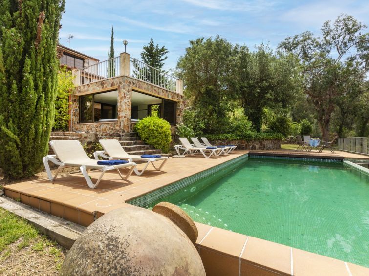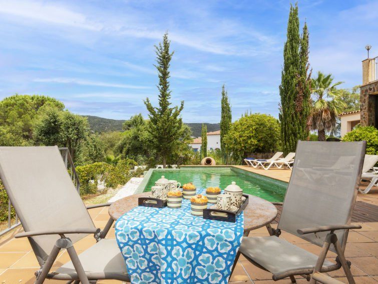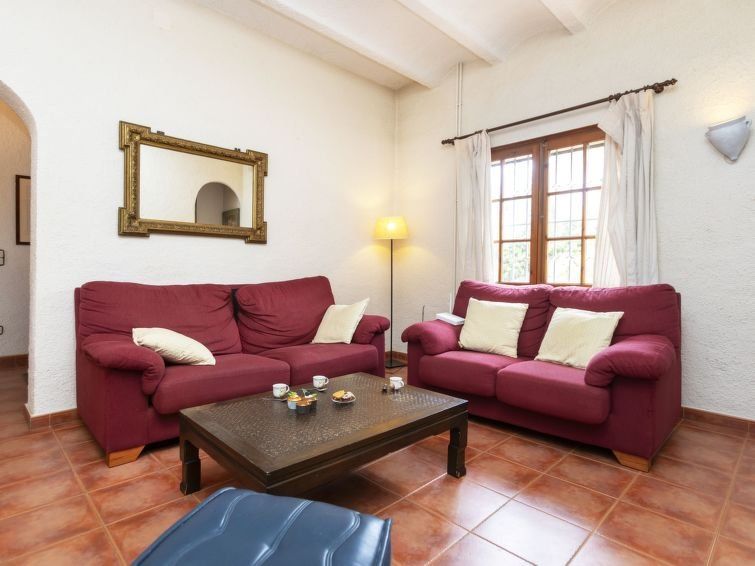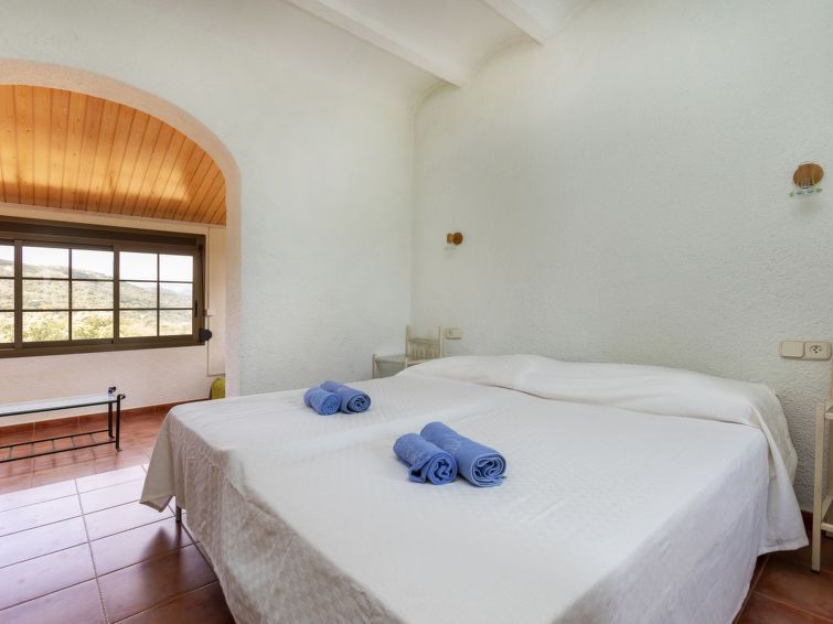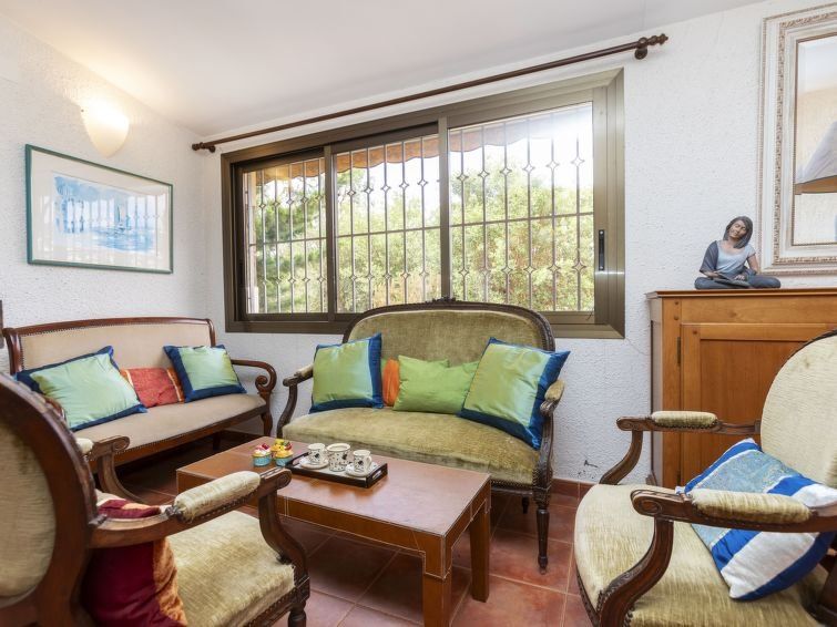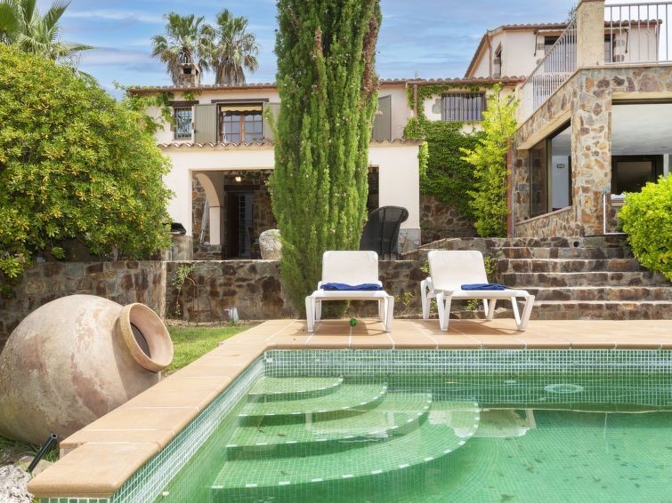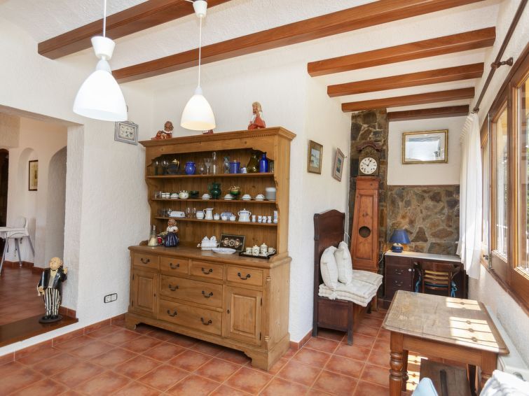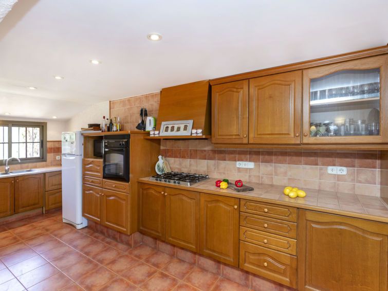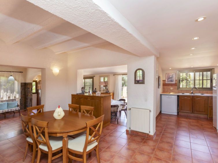 "Can Maggi", 4-room villa 167 m2. Practical furnishings: living/dining room with digital TV. Exit to the garden, to the terrace, to the swimming pool. 1 room with 1 french bed (150 cm, length 190 cm), bath/WC. 1 room with 1 french bed (135 cm, length 190 cm). Open kitchen (dishwasher, 4 ceramic glass hob hotplates, toaster, kettle, microwave, freezer, electric coffee machine).