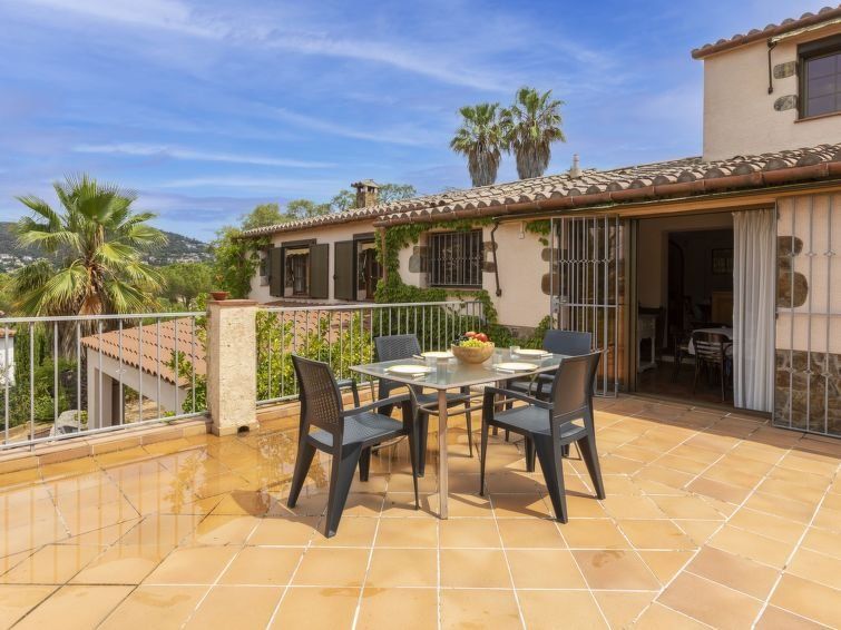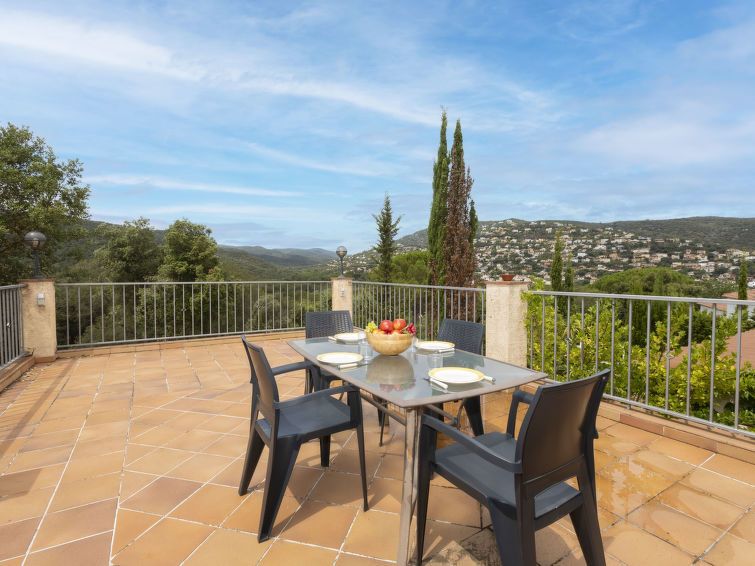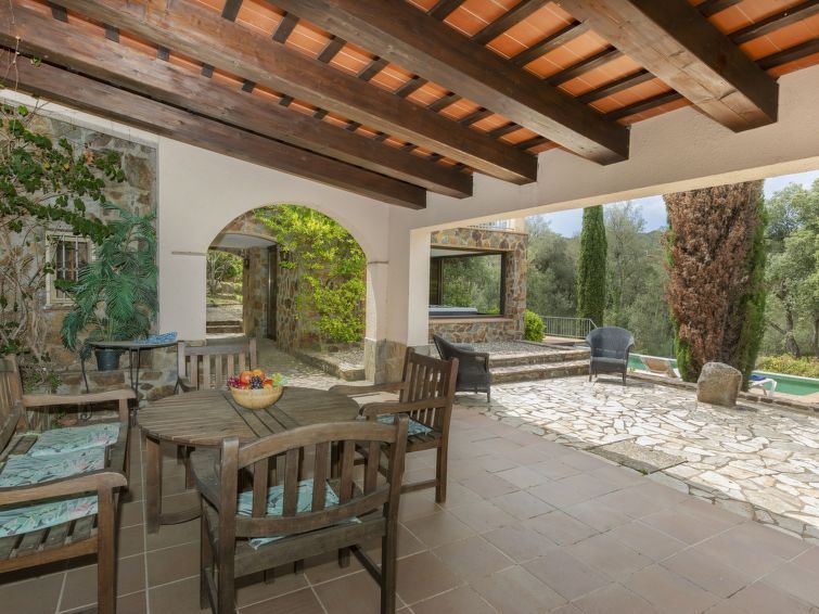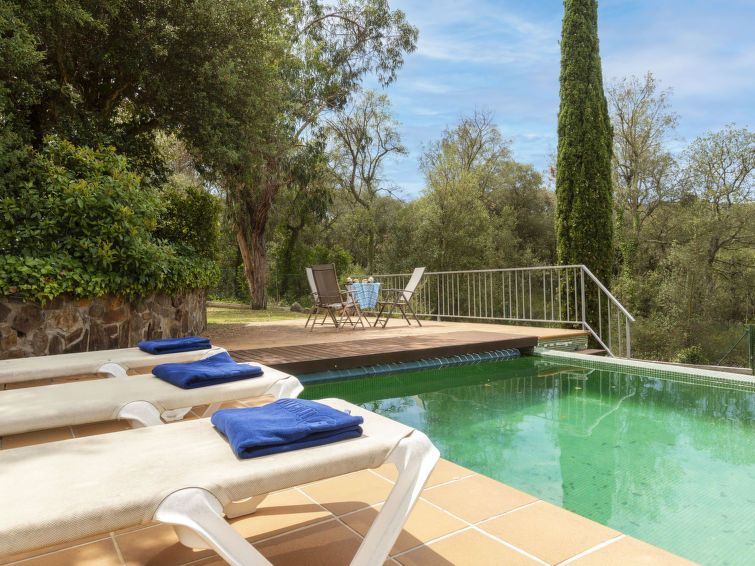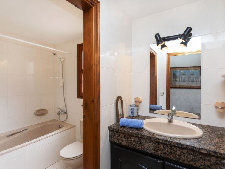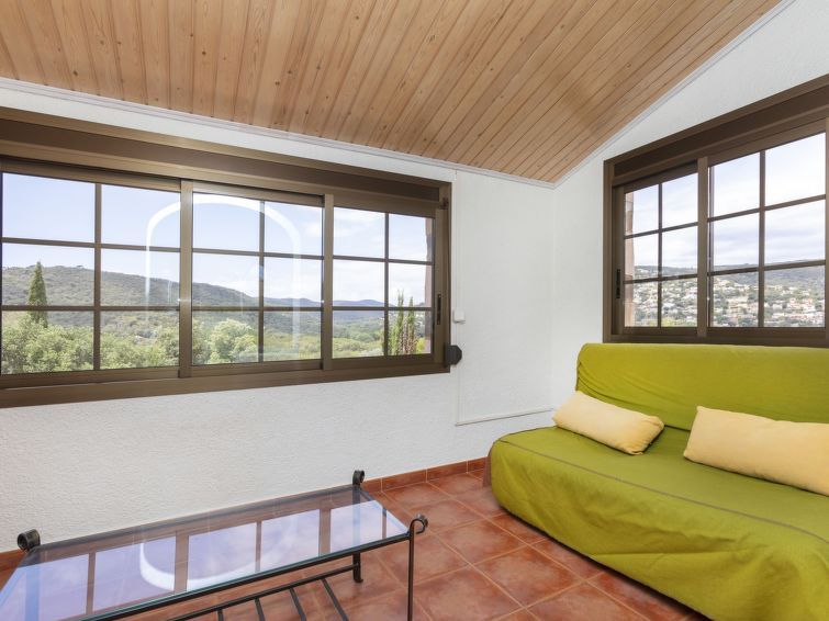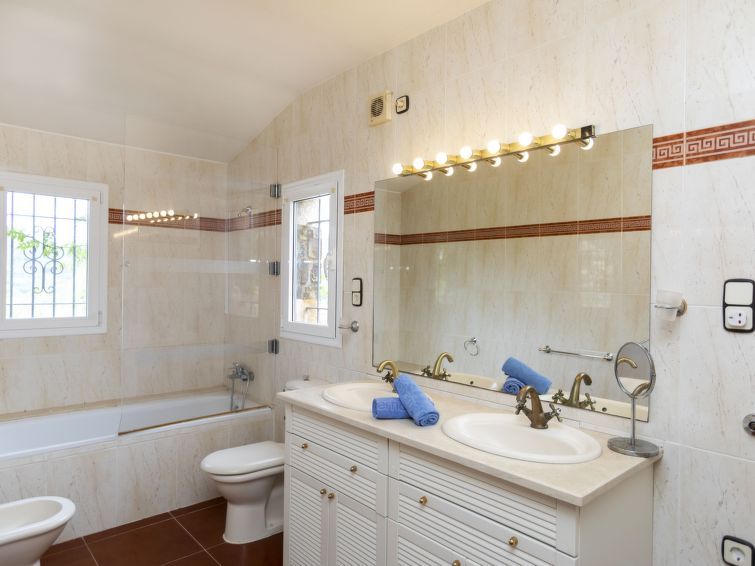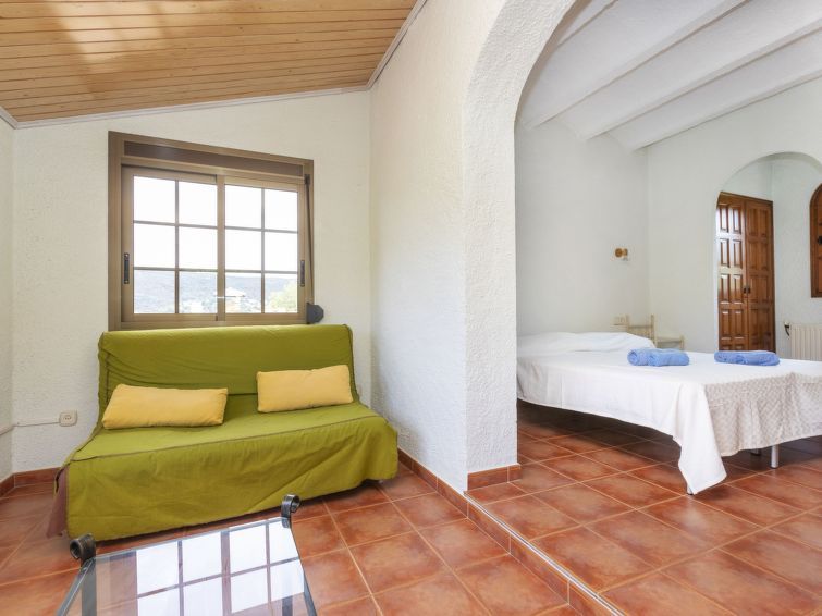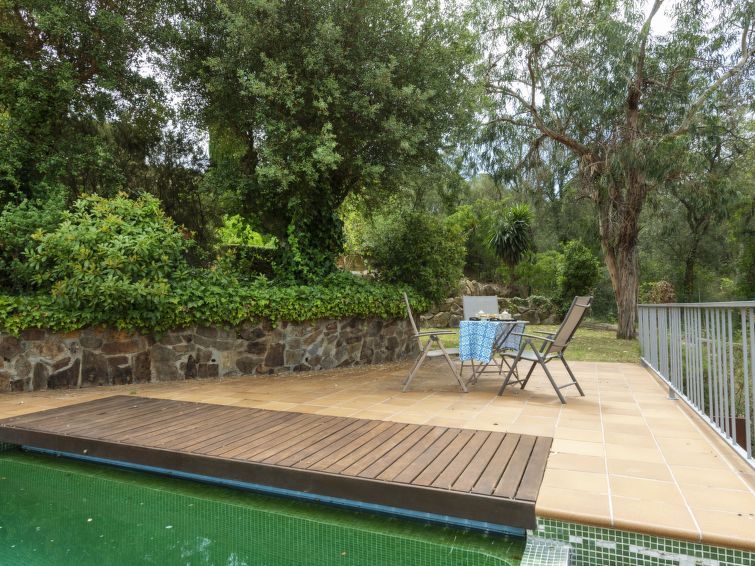 "Can Maggi", 4-room villa 167 m2. Practical furnishings: living/dining room with digital TV. Exit to the garden, to the terrace, to the swimming pool. 1 room with 1 french bed (150 cm, length 190 cm), bath/WC. 1 room with 1 french bed (135 cm, length 190 cm). Open kitchen (dishwasher, 4 ceramic glass hob hotplates, toaster, kettle, microwave, freezer, electric coffee machine).