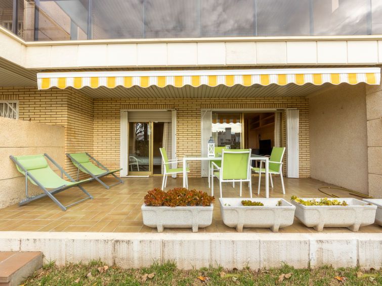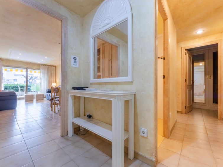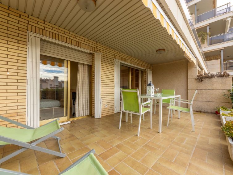 "Bahia Dorada", 4-room apartment 90 m2, on the ground floor. Practical and comfortable furnishings: living/dining room with fan. Exit to the terrace. 1 room with 1 french bed (135 cm, length 190 cm), fan. 1 room with 1 x 4 bunk beds (90 cm, length 190 cm). 1 room with 2 beds (90 cm, length 190 cm).