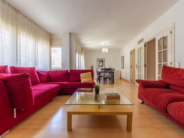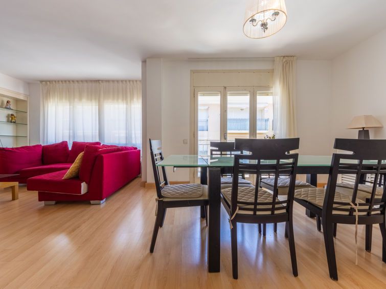 "Cambrils Drassanes", 5-room apartment 110 m2 on 2nd floor. Spacious, practical and comfortable furnishings: living/dining room with dining table and digital TV. Exit to the balcony. 1 room with 1 french bed (150 cm, length 190 cm). 1 room with 1 french bed (135 cm, length 190 cm).