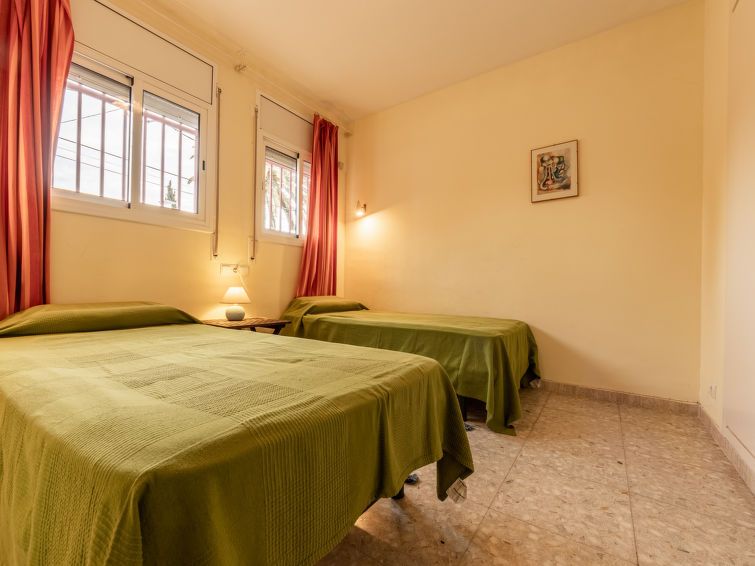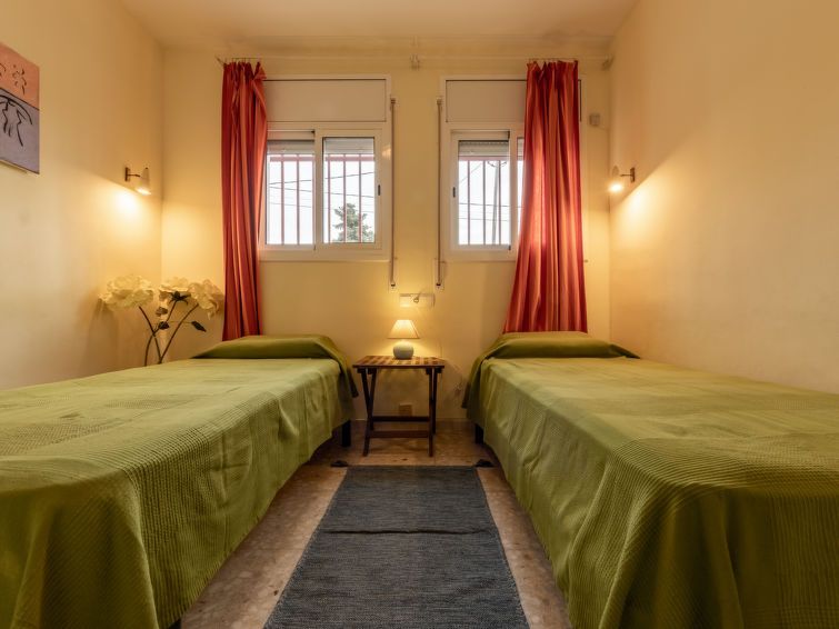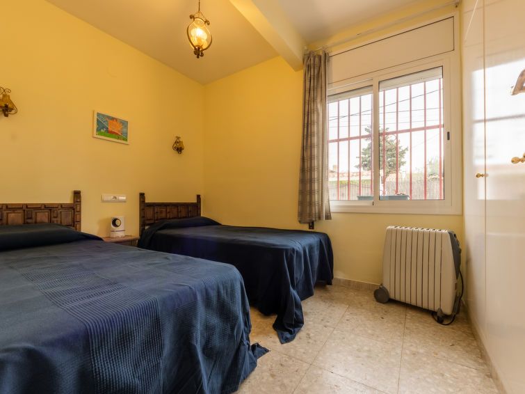 "Los Abuelos", 4-room house 110 m2. Practical and beautiful furnishings: living/dining room with satellite TV (flat screen). Exit to the terrace. 2 rooms, each room with 2 beds (90 cm, length 190 cm). Exit to the garden. 1 room with 1 french bed (135 cm, length 190 cm). Kitchen (dishwasher, 4 ceramic glass hob hotplates, toaster, kettle, microwave, electric coffee machine).